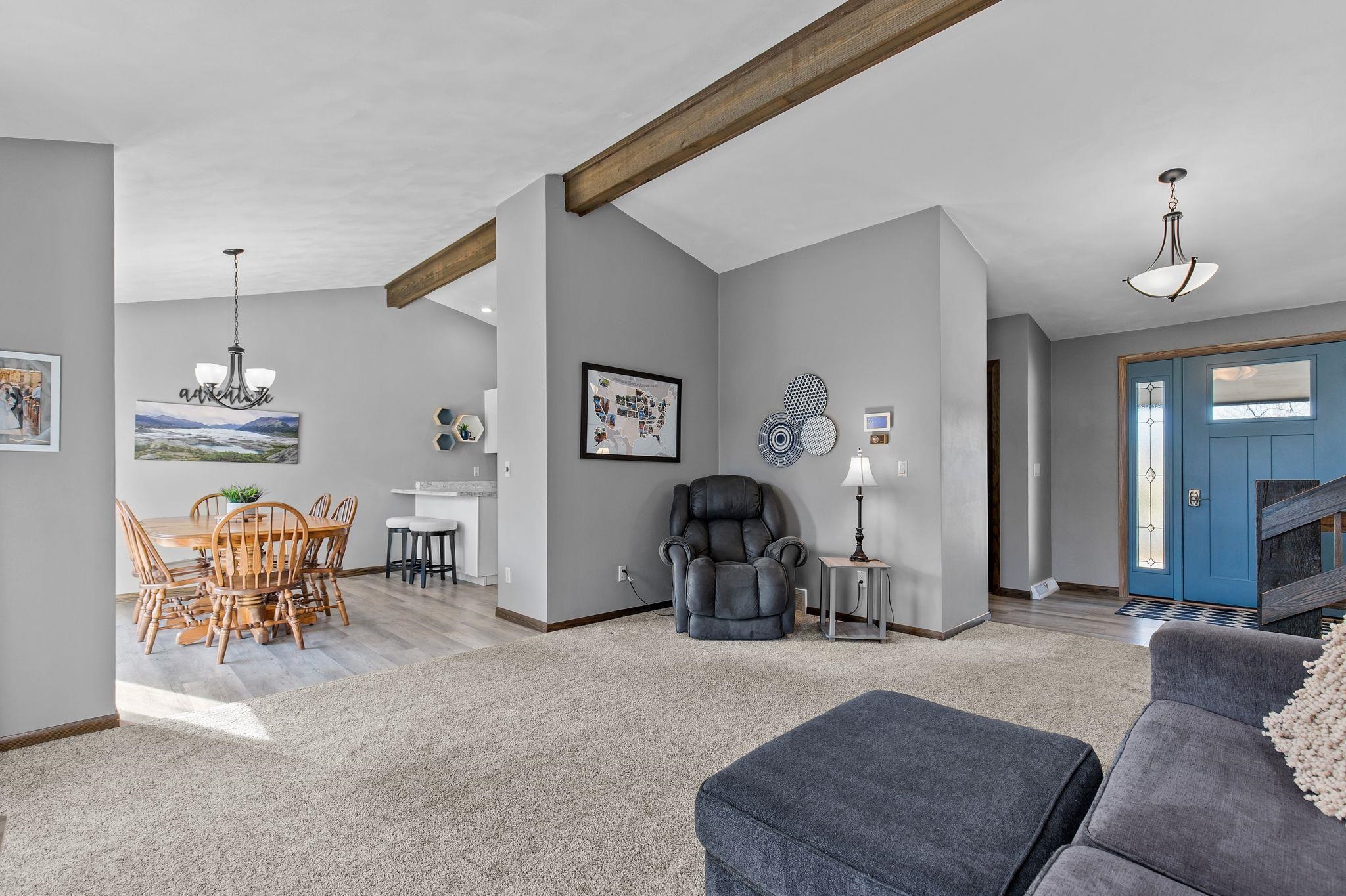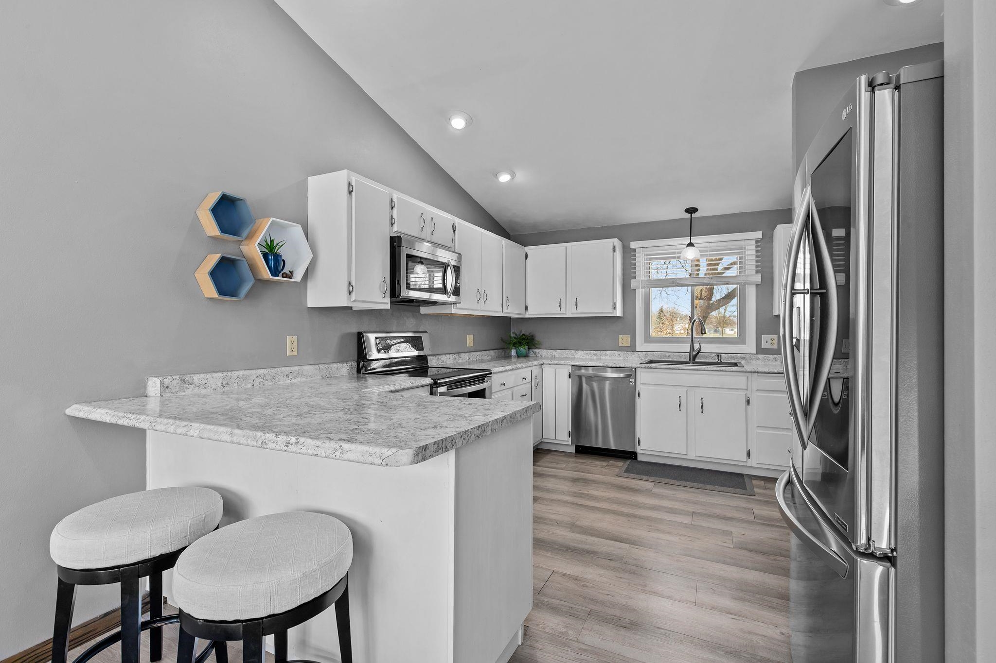Welcome to this beautifully updated 3 bedroom, 2 bathroom home, perfectly situated directly across from Clovis Park in Menasha. Inside you will discover a bright, fresh interior, boasting new carpeting and fresh paint. This home offers an updated kitchen, featuring stainless steel appliances and ample counter space. Some new windows and a new front door enhance curb appeal and efficiency. Spend time in the main floor living room or the lower level gathering space with wood burning fireplace. Well cared for yard with patio and fruit trees! Convenience is key with an attached 2-car garage for easy parking and storage. This move-in-ready home offers modern updates and an unbeatable location!