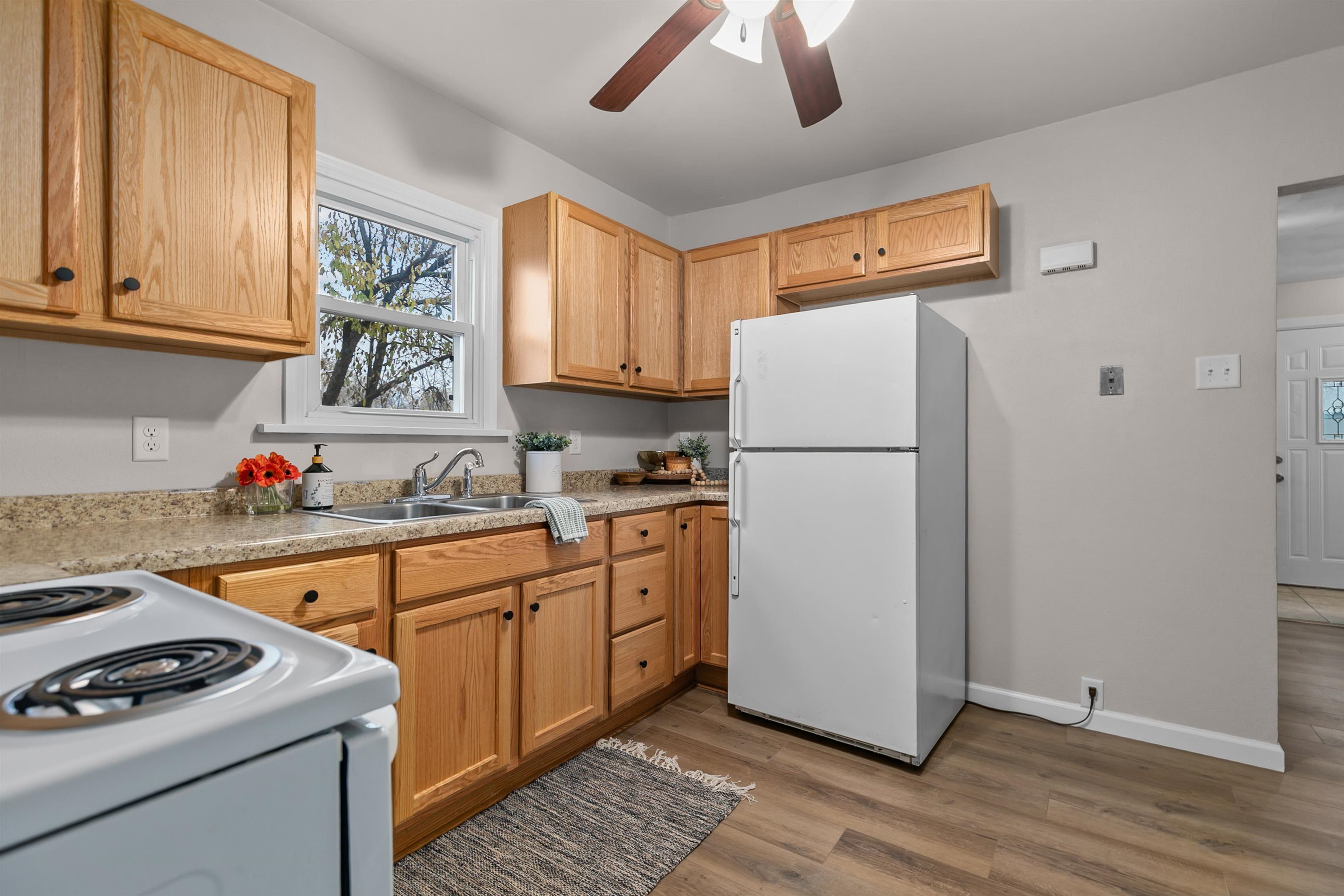 Move-in ready and fully remodeled, this charming 3 bed, 1 bath Menasha home features fresh paint, new carpet, updated light fixtures, and an updated bathroom with a new vanity. Stylish LVP flooring and new trim run throughout for a clean, modern feel. The upstairs offers a cozy bedroom plus an office/den, and the large basement provides excellent potential for future expansion. A 2.5-stall garage with lofted storage and a fenced-in yard add convenience and functionality. Fresh, updated, and welcoming—this home is ready for its next owner. Schedule your showing today!