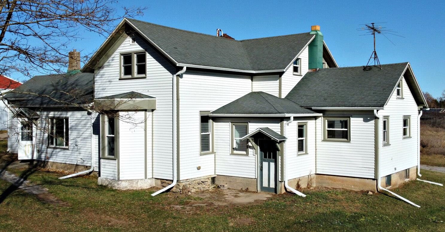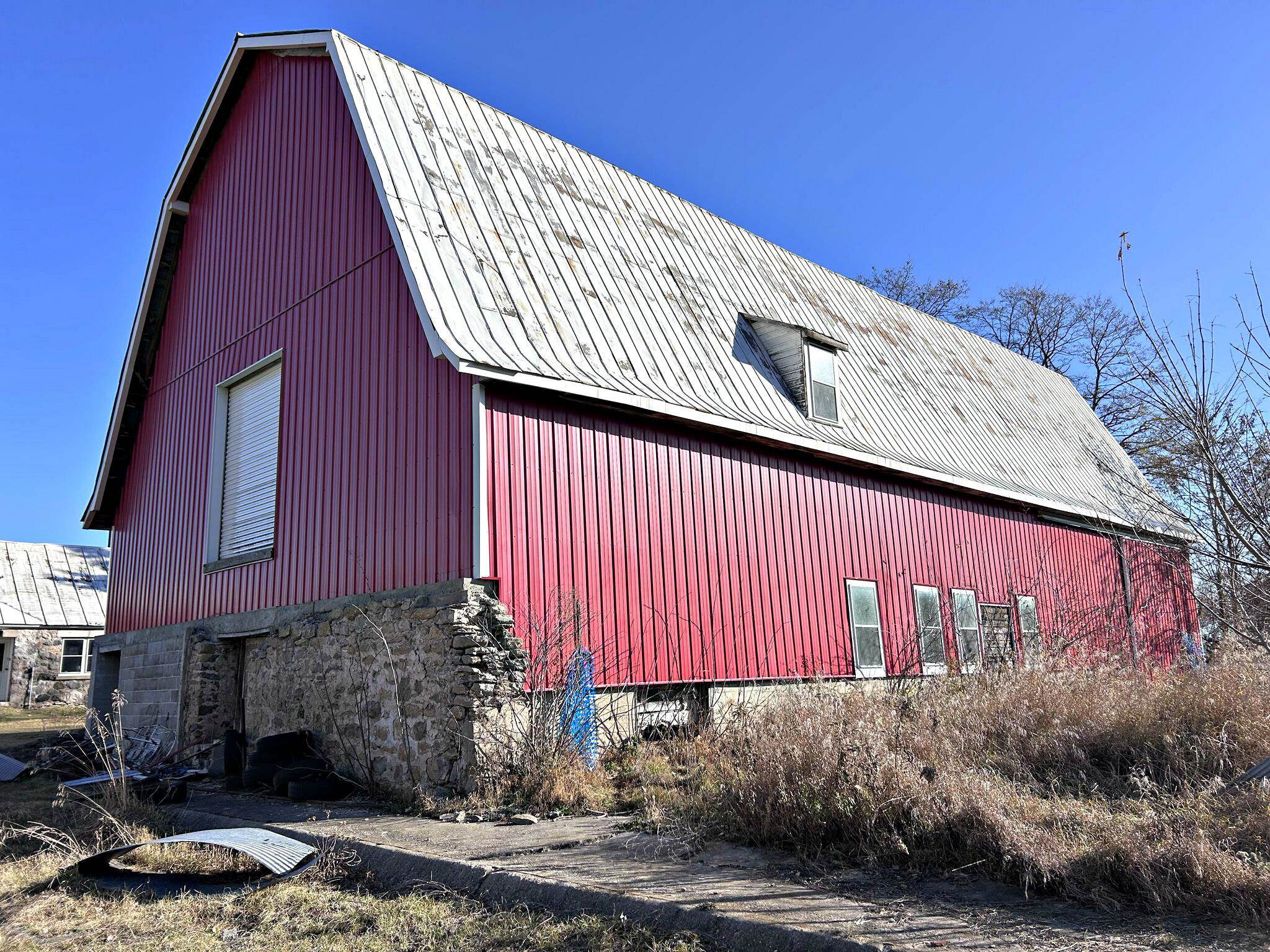 Discover this unique hobby farm. The property features a 4-bedroom, 2-bath farmhouse that can be configured as a one or two-family residence. A standout feature of this property is the 36x40 two-story indoor growing/cultivation building, constructed of block and fully insulated. It comes complete with grow lights, ballasts, timers, automatic exhaust system, heat and air conditioning, reverse osmosis water system, and 3-phase power—providing over 2,800 square feet of dedicated workspace. Additional outbuildings include a 72x36 steel pole building with a concrete floor, water, and 3-phase power, designed with drive-through doors on each end. There's also a an 85x40 steel sided/roof barn and a 24x30 stone garage with loft. 2 drilled wells. Adjoining 32 acres to west also for sale