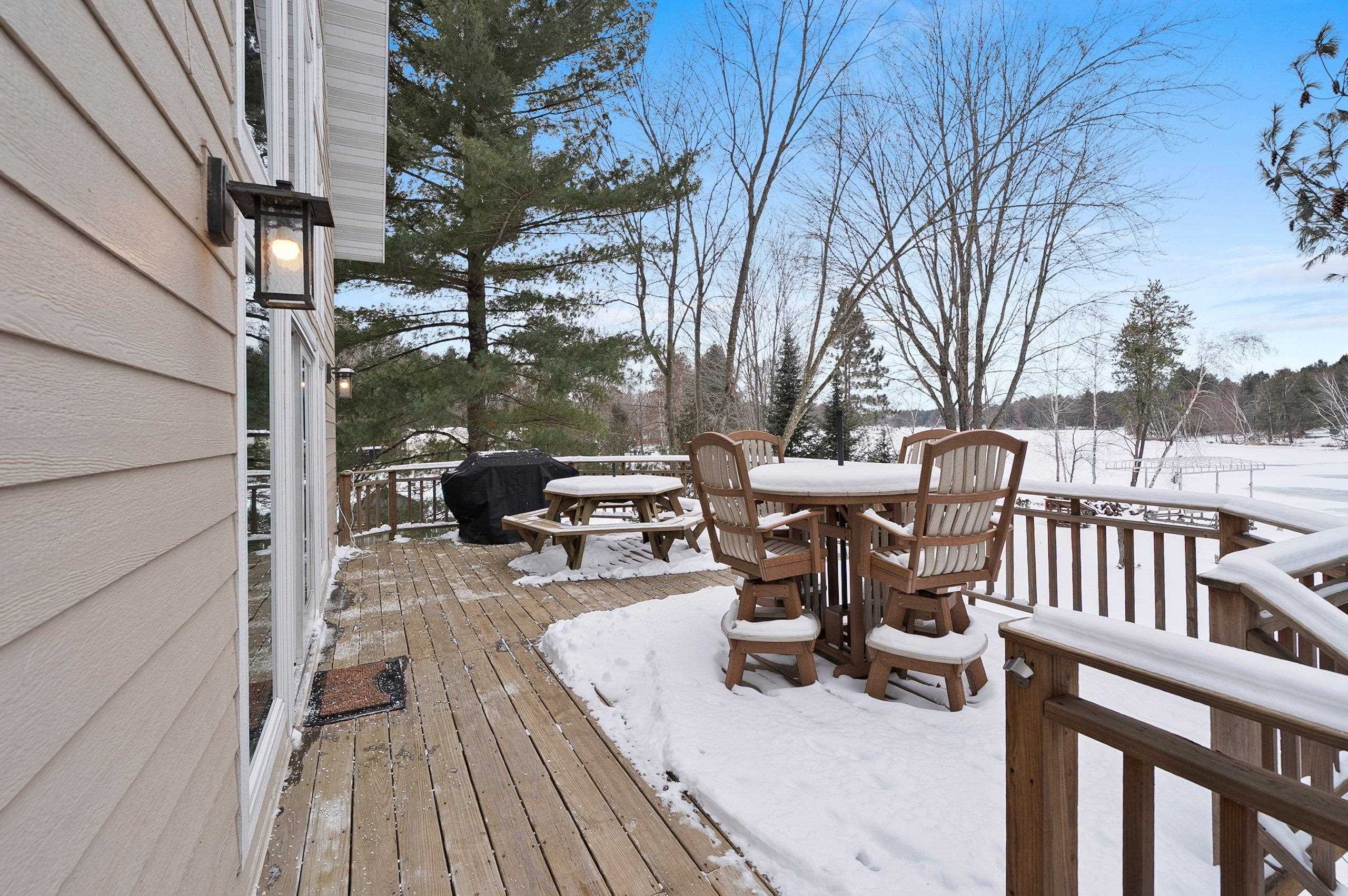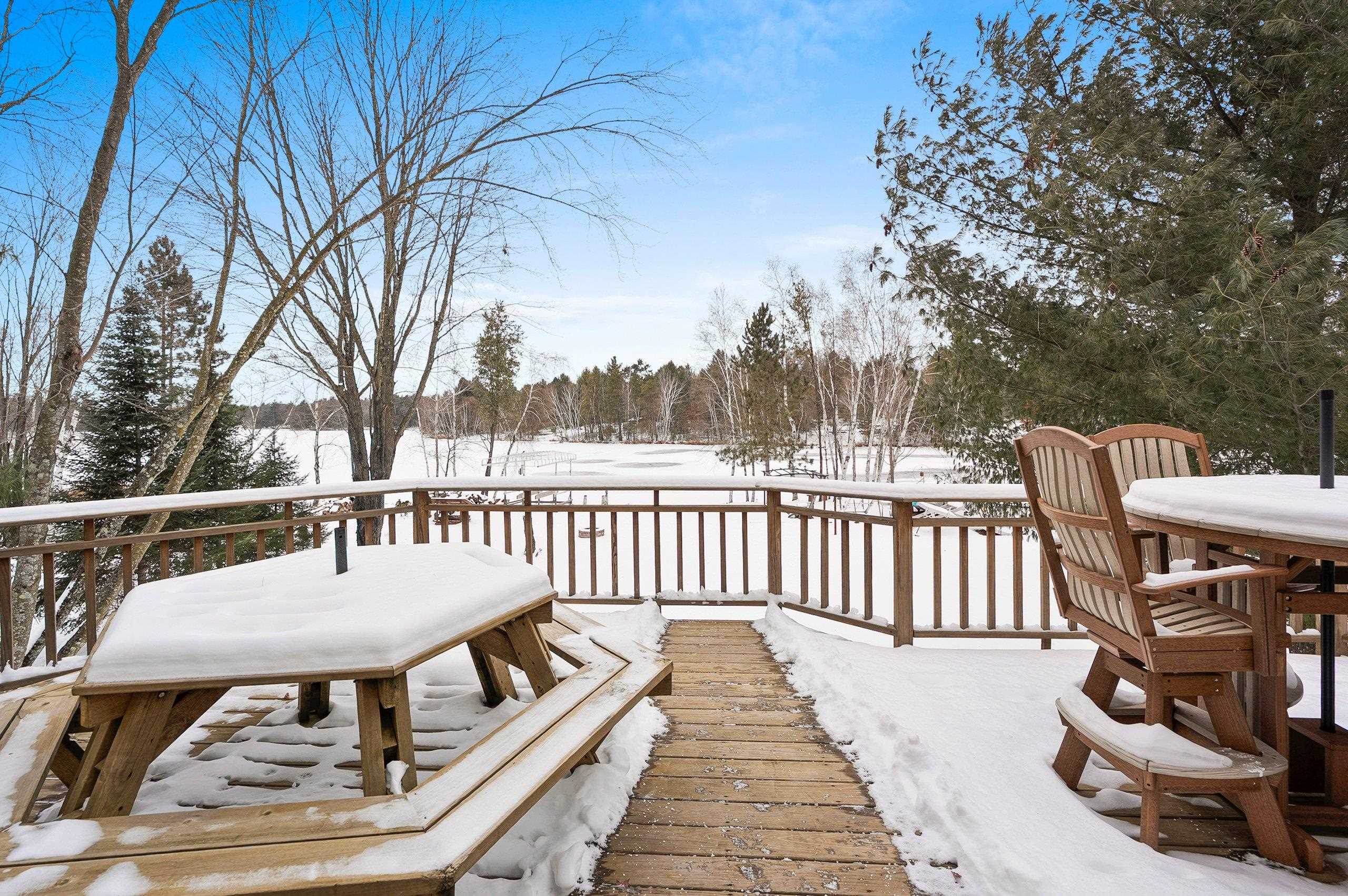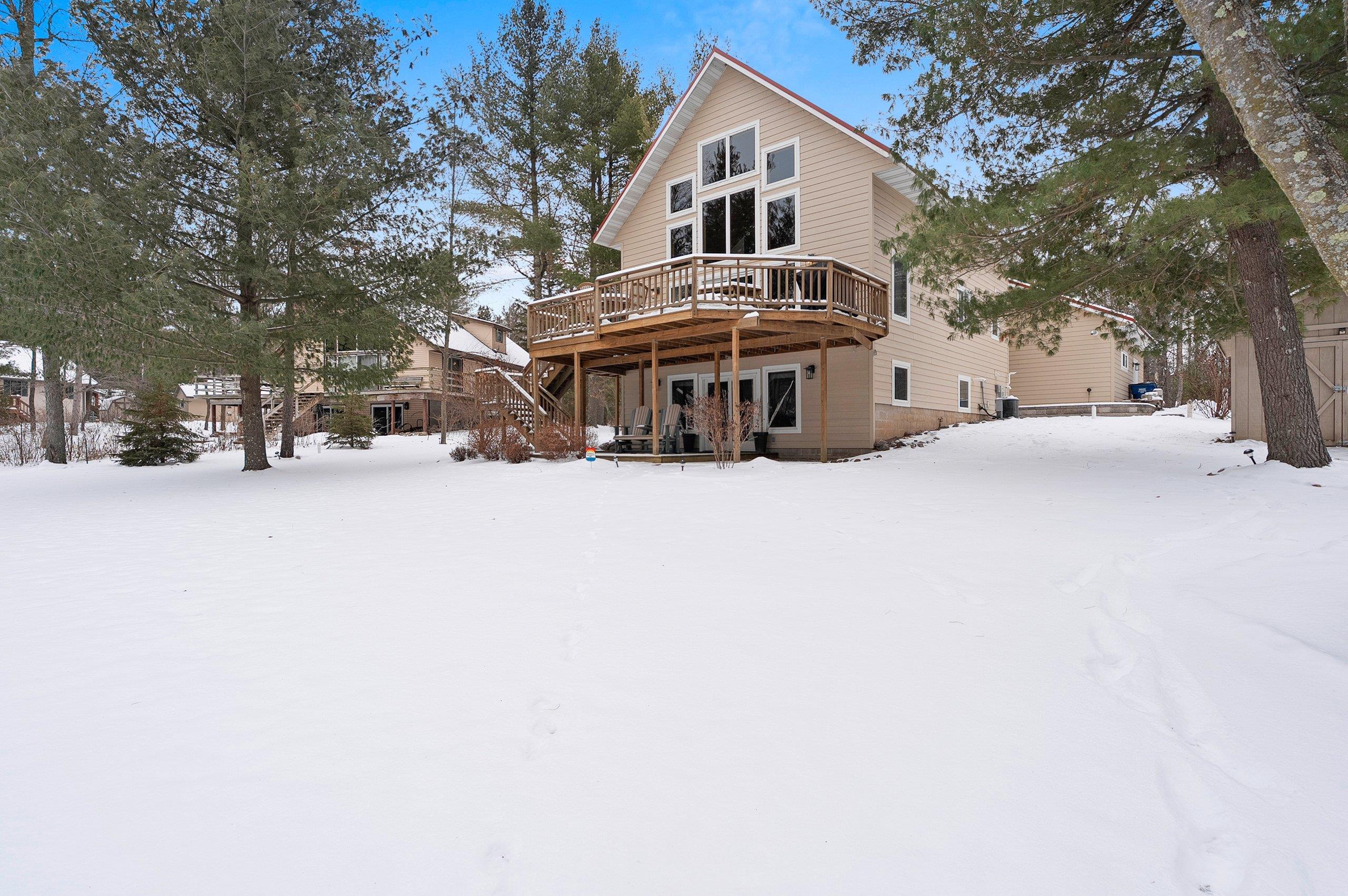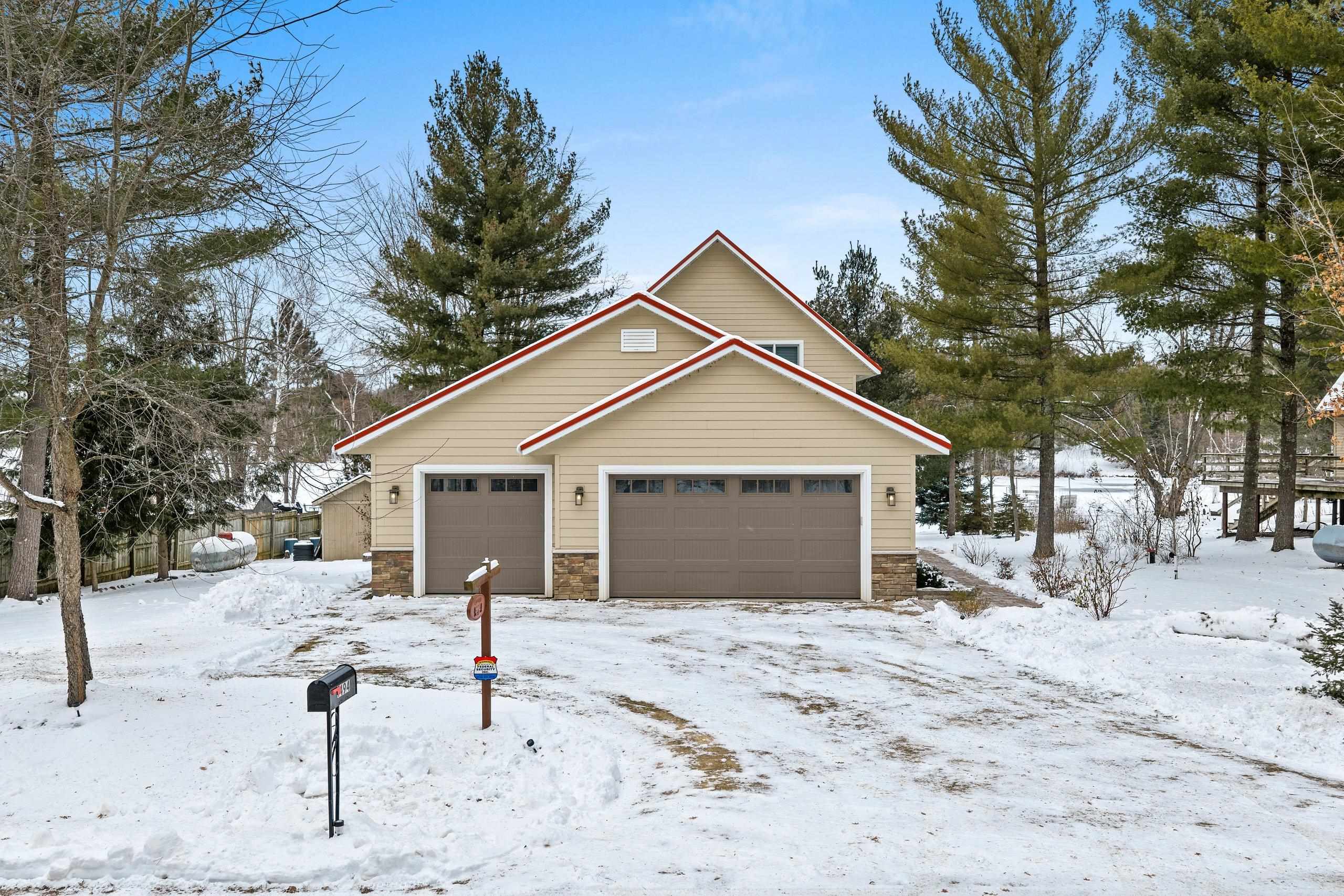 Enjoy this inviting 4-bedroom, 2.5-bath waterfront home just steps from the sandy beach. The open-concept living area features cathedral ceiling, a cozy fireplace, and hickory kitchen cabinetry. Relax or entertain on the wraparound deck while taking in stunning westerly sunsets. The walk-out lower-level family room provides flexible living space, with convenient laundry located in the lower-level bath. A drilled well installed in 2017 offers added peace of mind. A 34'×30' heated and finished garage with walk-up storage, built in 2020, provides ample room for vehicles, storage, or hobbies. A perfect waterfront getaway!