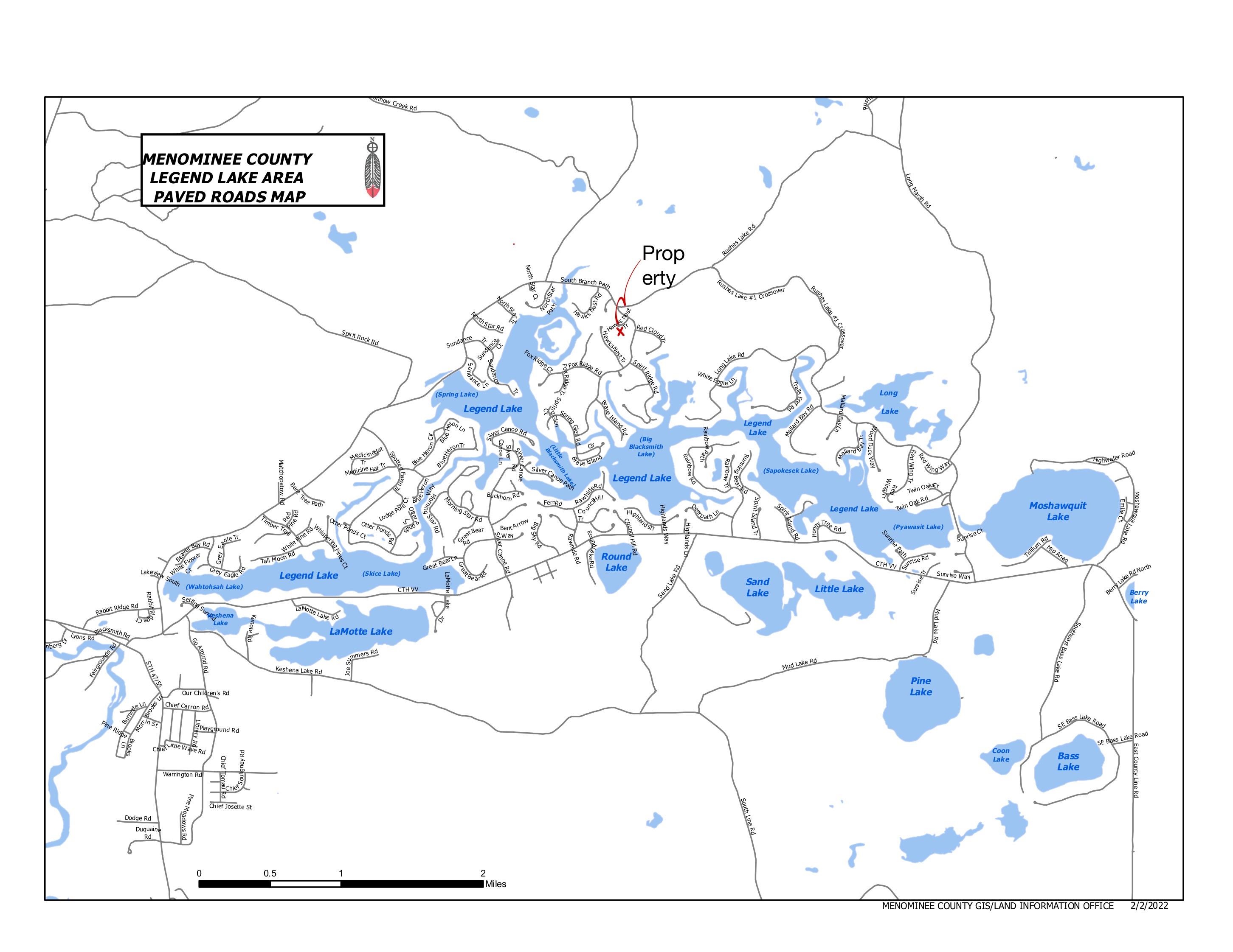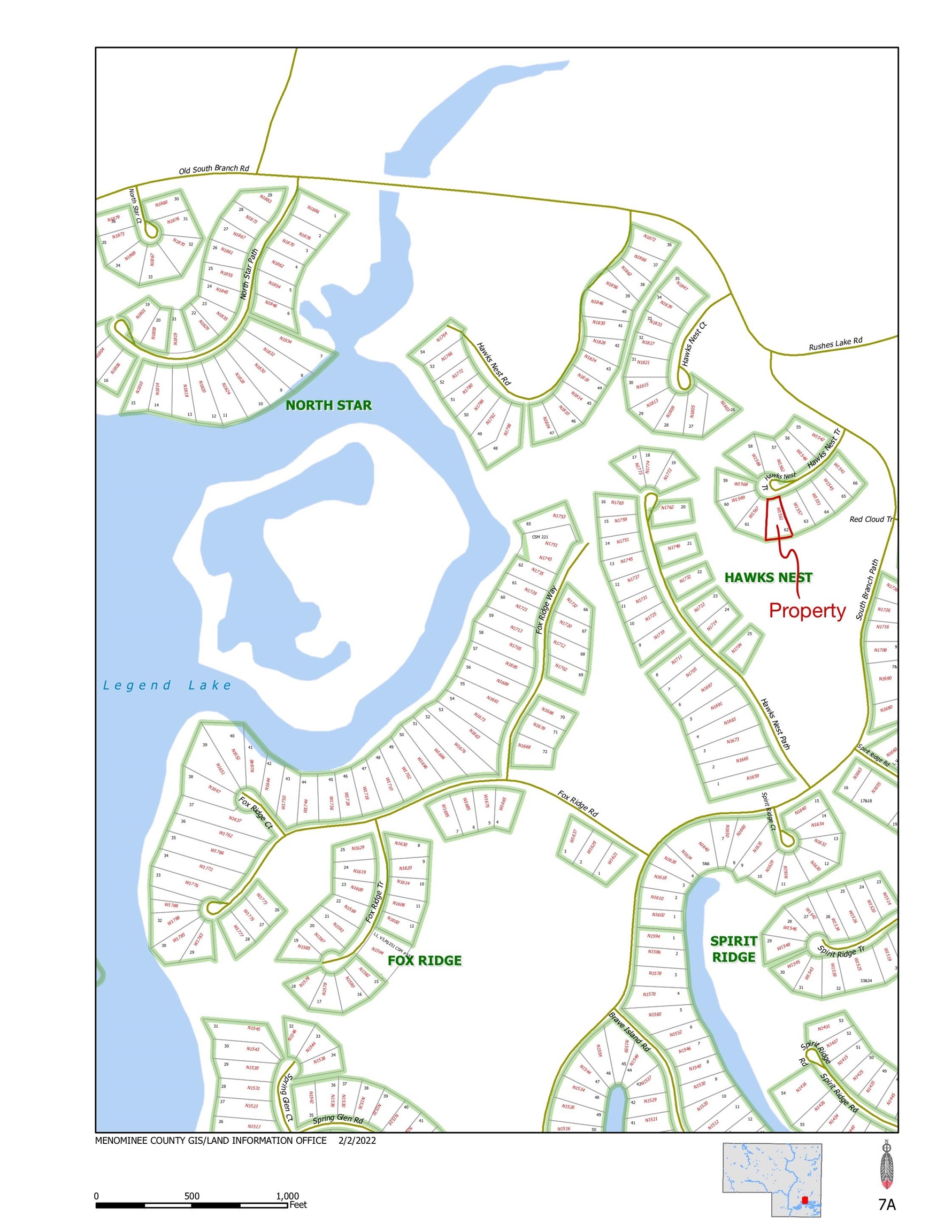 47/55 into Keshena, Right on CTH VV, Left on Old South Branch Rd, slight right on South Branch Path, Right on Hawks Nest Trl.