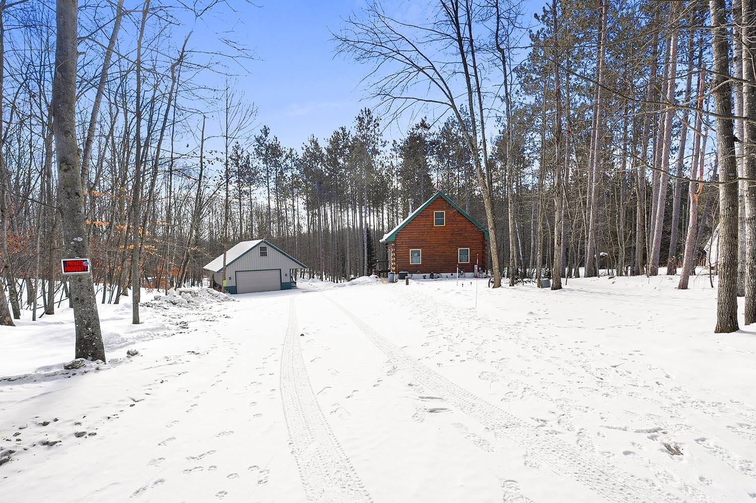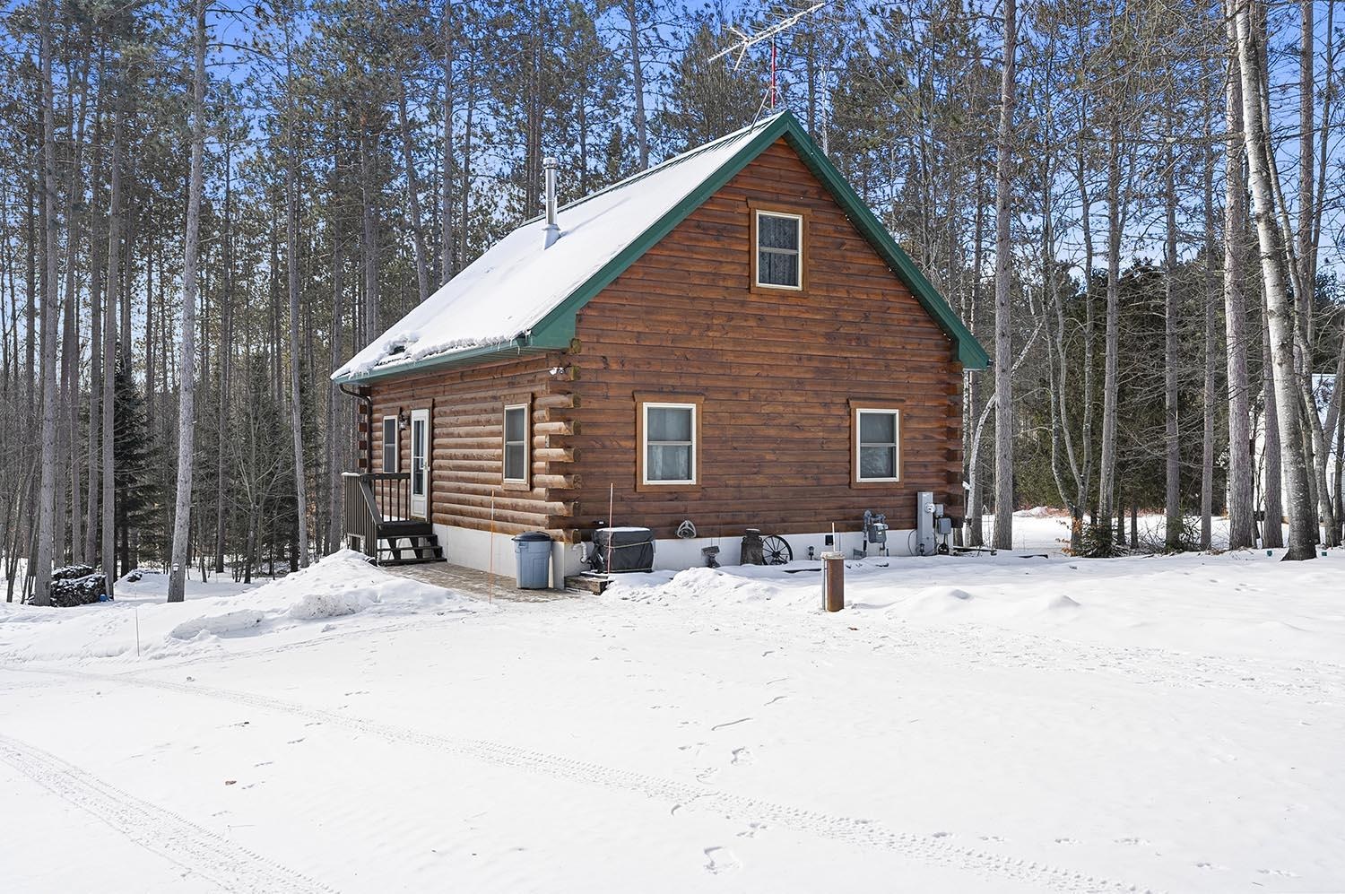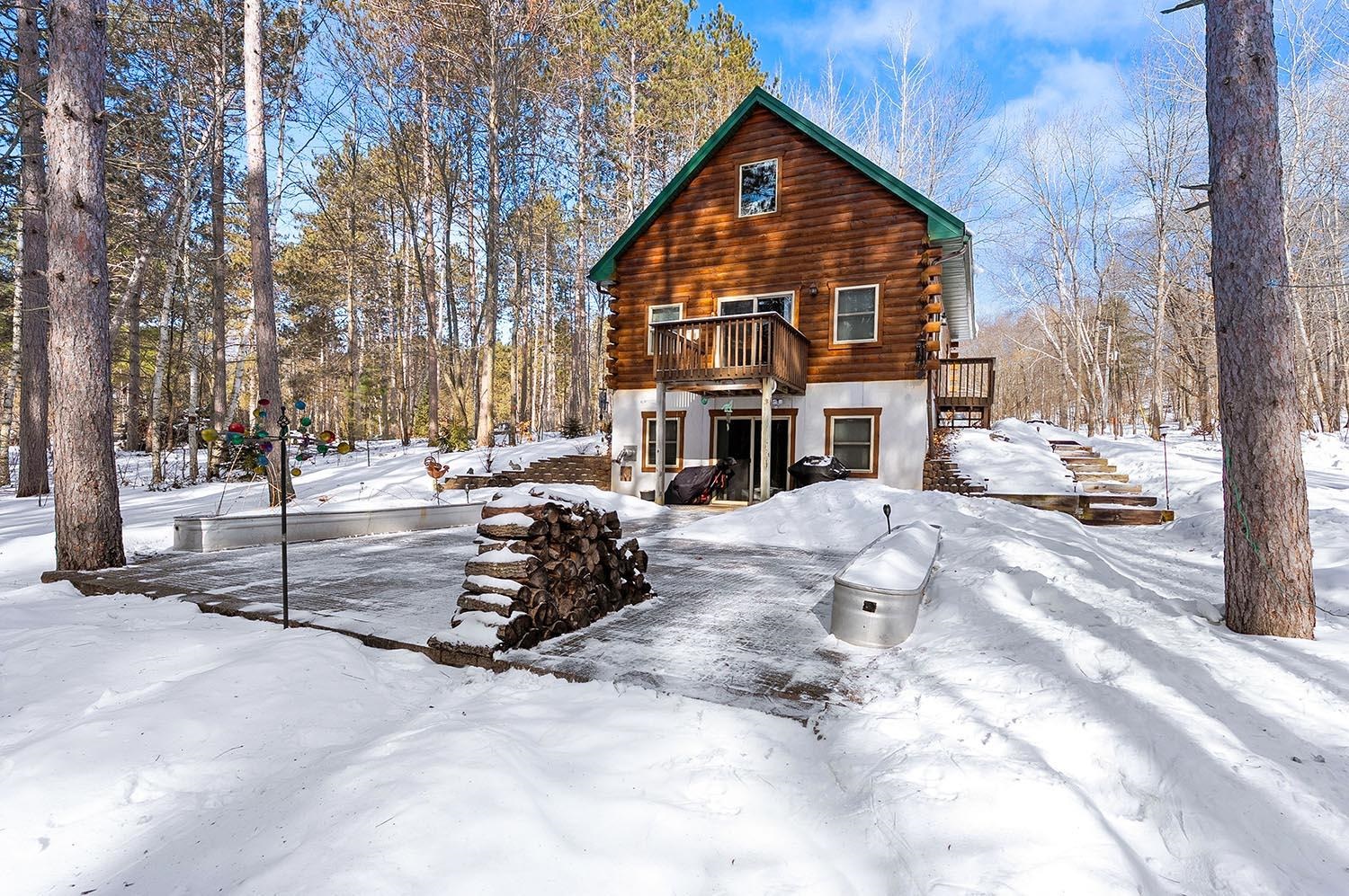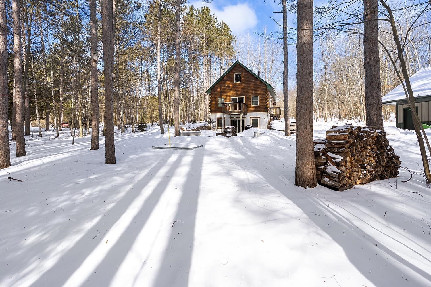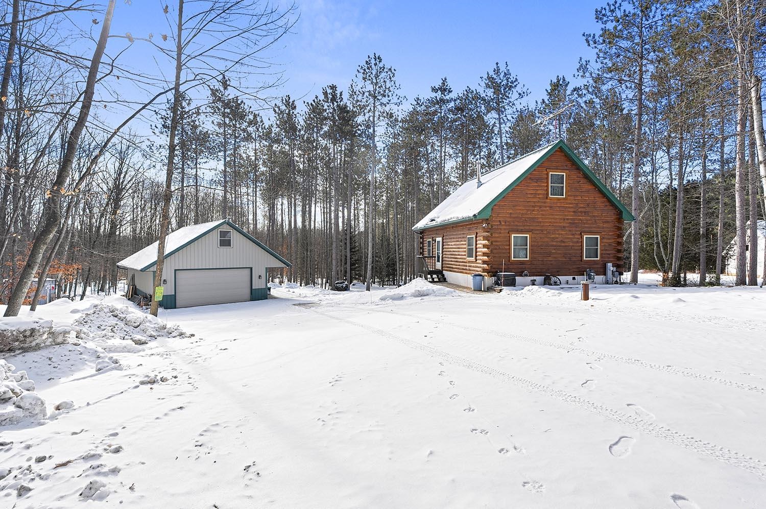 Desired Crivitz location on over 3 acres, that includes a separate lot with its own well and septic. Enjoy quick access to town, extensive ATV & Snowmobile trail systems, and many nearby lakes, including Lake Noquebay. This beautiful walk-out log home features open-concept, vaulted ceilings & a cozy fireplace. Kitchen is fully applianced and features glass doors to a deck overlooking the peaceful wooded setting. There are 2 main level bedrooms and loft bedroom upstairs. Downstairs boasts family room with glass doors to patio and firepit area, another bathroom and separate laundry space. Plenty of room for your toys in the 24 x 36 insulated garage with overhang for extra storage and an interior staircase to bonus room above that could easily be finished for additional space if needed.