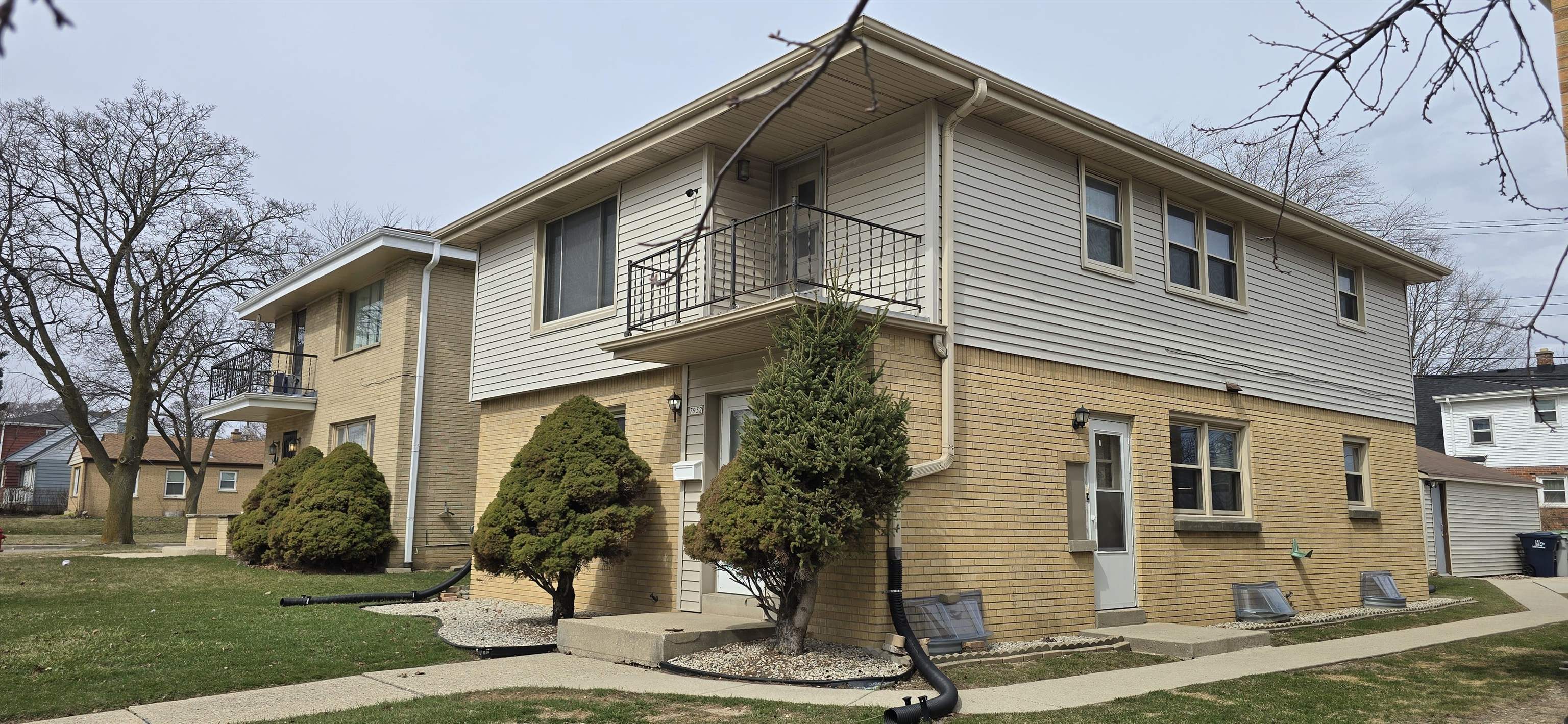 Very clean and well-maintained 2-bedroom, 1-bath duplex with strong investment potential. Features a half brick, half vinyl exterior with newer vinyl siding on both the house and garage. Recent updates include fresh paint, new flooring, updated wood finishes on cabinets and trims, new kitchen sinks, and newer windows for improved efficiency and natural light. Spacious room sizes throughout make this property move-in ready. Extra-deep 2-car garage plus a 2+ car parking slab for added convenience. Great opportunity for owner-occupants or savvy investors!