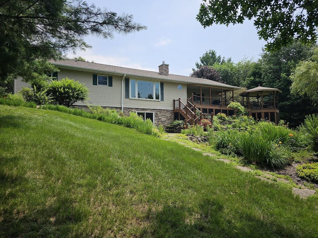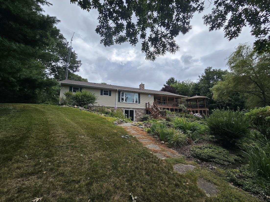 Breathtaking sunsets await you at this beautiful 4-bedroom, 3 bath, year-round Porters Lake home. Enjoy fishing, kayaking, and swimming, or just a cruise around the lake on the pontoon. Porters Lake is a pristine 77-acre spring fed no- wake lake nestled in the heart of central Wisconsin's Waushara County. This tastefully landscaped property features a wraparound deck, quaint gazebo overlooking the lake and waterfall flowing into a pond of flowering Lilly pads. This open concept home has been well maintained, has finished walkout lower level, and attached 2 car garage and a detached 3 car garage, full house generator. Relax by the gas FP or take in a quiet evening on the deck.