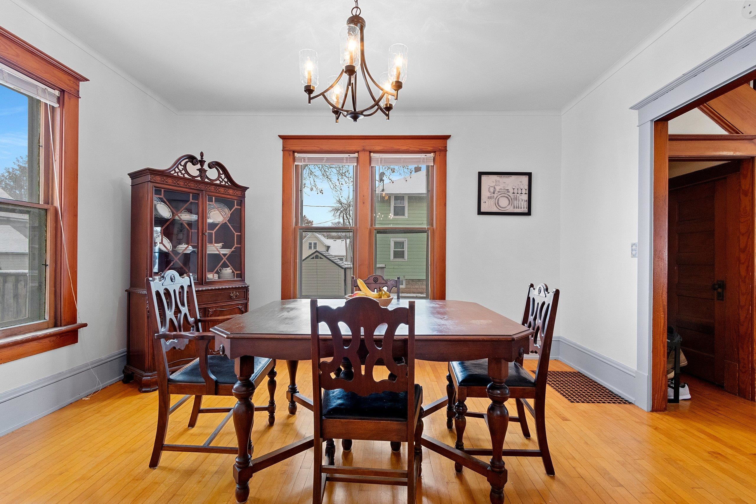 Charming 3-bedroom, 1.5-bath home filled with character and timeless details. Enjoy stunning original woodwork and beautifully refinished hardwood floors throughout. The spacious layout offers warm, inviting living spaces providing everyday comfort. Outside, you’ll love the large yard—for gardening, play, or outdoor entertaining—and a 2.5-car garage providing ample storage and parking. Home has newer vinyl siding and many new windows. A truly special home with classic charm and modern appeal. Per sellers request, no offers will be reviewed prior to 11/24/25. Open house Sunday 11/23/25 10 to 11:;30