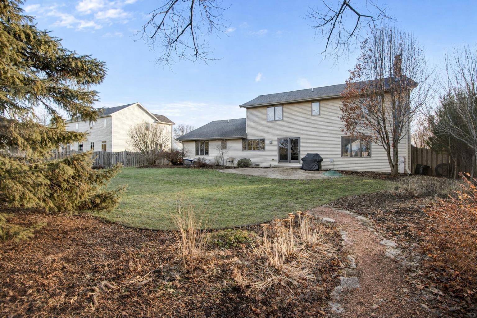 Meticulously maintained & move-in ready, this thoughtfully updated home blends timeless design with everyday comfort. The main level features a custom kitchen with a large center island, open to the FR with a cozy gas FP. Warm wood floors run throughout much of the main level, complemented by a recently added office/flex room & convenient main-floor laundry. Upstairs offers 4 generously sized BDRM's with maple hardwood floors, including a spacious primary suite, plus two full baths. The finished LL includes a rec room, full bath, & garage access. Enjoy a private backyard with mature landscaping & a spacious patio. An updated garage with 3rd car parking pad completes the home. A truly exceptional opportunity where quality, care, & comfort shine. Great Southeast Neenah location!
