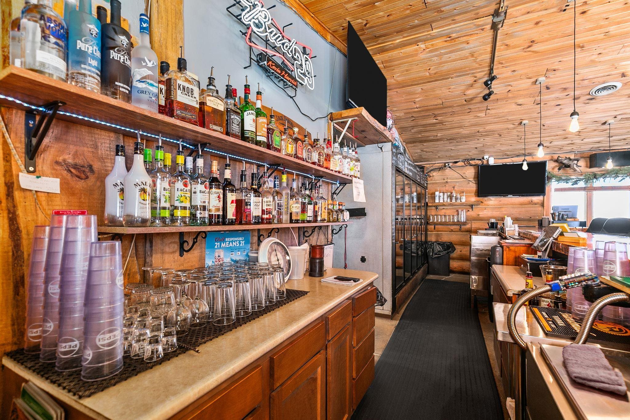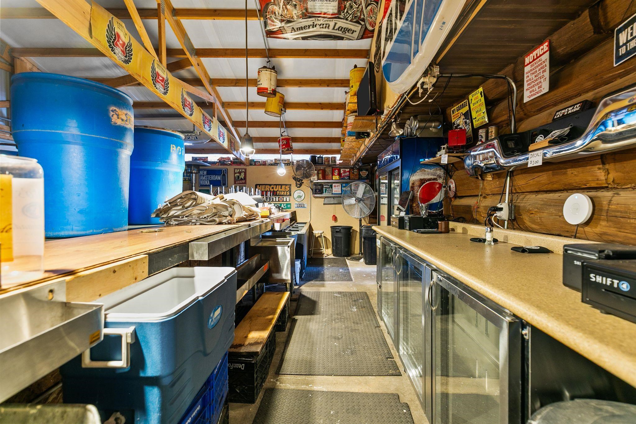 Discover this hidden gem just minutes from the highway! This unique property offers multiple income streams, featuring the year-round Log Cabin Bar & Grill along with the popular seasonal Gear Head Garage outdoor bar, complete with a permanent stage for live entertainment. Perfectly equipped for events, the property includes two large party tents ideal for weddings, private parties, corporate gatherings and more. An outdoor chuckwagon provides additional food service capacity for large events, enhancing revenue potential. This well-established operation comes fully staffed and bookings have already begun for 2026. Ample on-site parking accommodates large crowds with ease. The building is well-maintained and in excellent condition, making this a true turnkey investment.