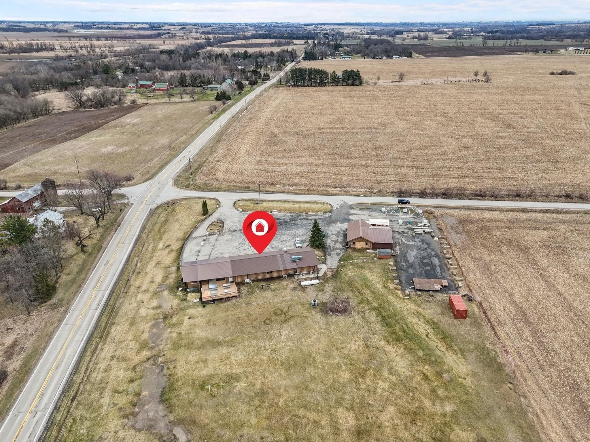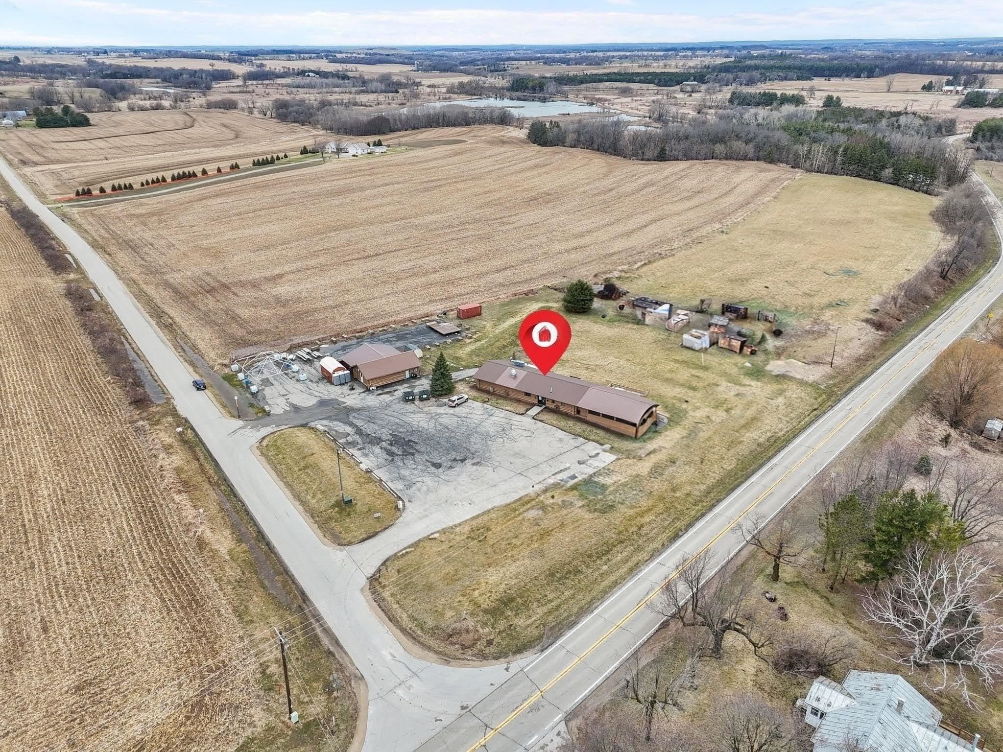 Hwy 44 south from Oshkosh, west on Hwy 91, south on Hwy E, property on corner of E and Grams Rd.