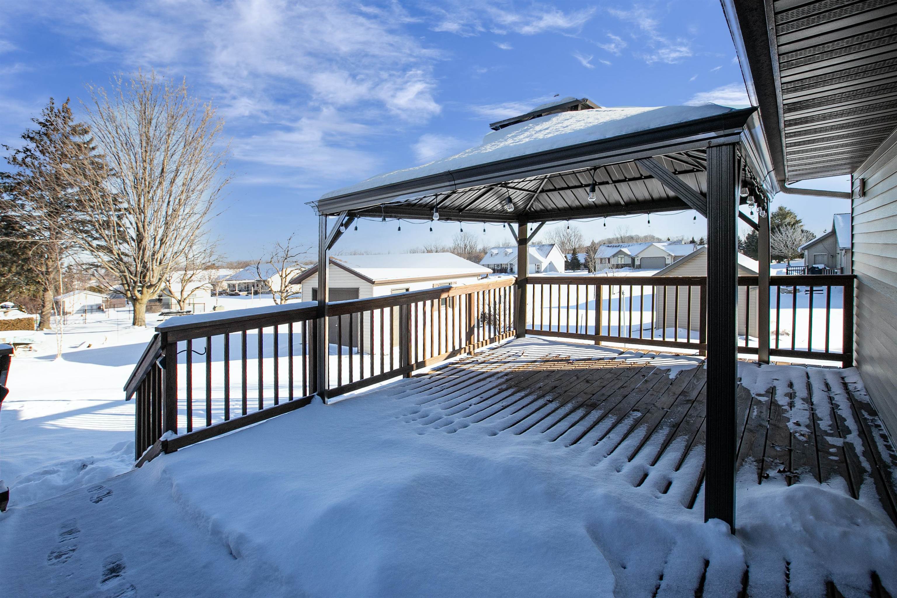 This updated and expanded ranch blends comfort and functionality. The heart of the home is a spacious living room complete with entertainment area. Just off the main living space is a deck with canopy offering shade and relaxation. First floor laundry located off the garage entry is an added bonus. The additional detached garage and multiple workspaces downstairs provide ample storage. A dedicated workshop space provides a setup for projects, crafts, or extra storage. This property has had the same owners for 35 years and has been visibly cared for and maintained. Preferred closing date of March 6, seller prefers occupancy until March 9. Please include in additional provisions: Offer to be contingent upon successful close of seller's new home. 48 Hours Binding Acceptance.