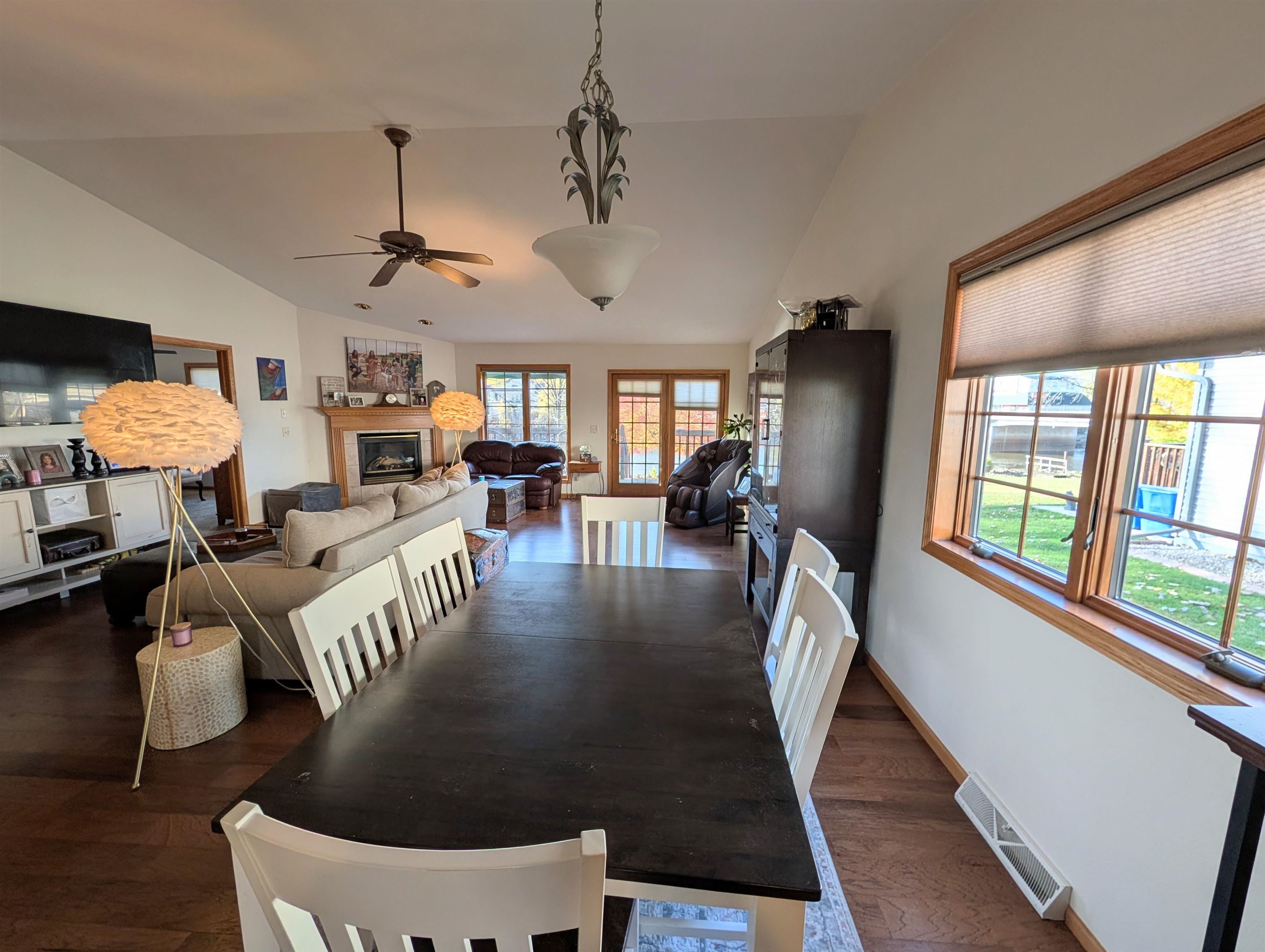 Enjoy river living in this beautiful open concept condo...2 Bedrooms 2 full bathrooms... Large living room and dining area. First Floor Laundry, Gas Fireplace. Large closets. Patio has view of the Wolf River...Attached 2 car garage. Close to downtown... Condo has water frontage and a shared dock (raft style)...Park your boat at your own dock and enjoy the scenic Wolf River from your doorstep...Condo fees $225/mo...Come and take a look!