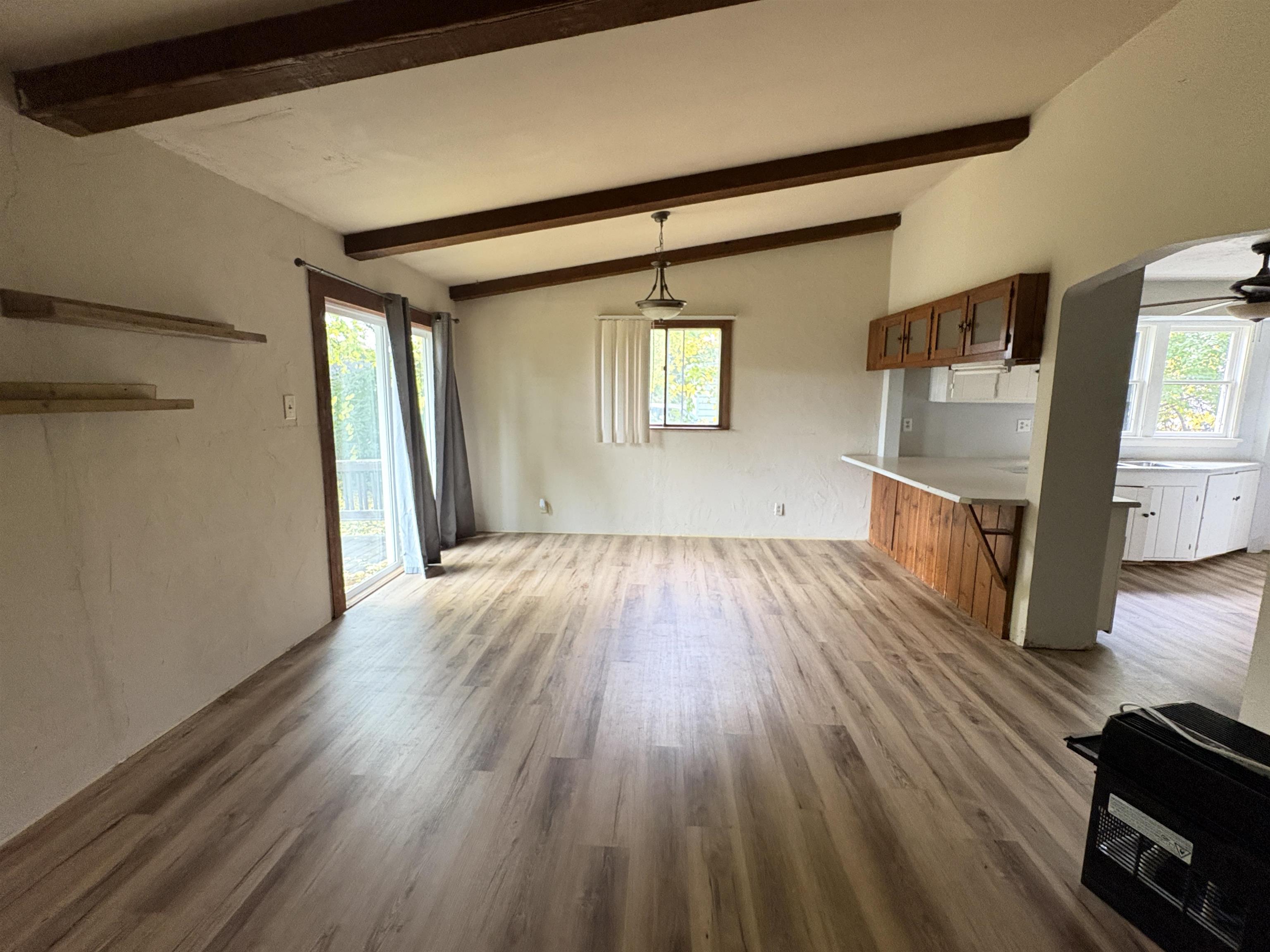 Discover this move-in-ready gem offered at an unbeatable price under $200k! Perfectly situated for convenience, this home offers easy highway access and is just moments away from the local hospital. The main level is designed for comfortable living, featuring both a spacious living room and a separate family room—ideal for hosting gatherings or creating a dedicated home office space. Upstairs, you’ll find the warmth of original hardwood floors throughout two bright bedrooms. One of the bedrooms includes unique adjoining "bonus" rooms. Whether you envision a dream nursery, a quiet library, a cozy reading nook, or expansive walk-in storage, the possibilities are limited only by your imagination. Enjoy summer nights on the large deck overlooking a partially fenced yard, complete with firepit.