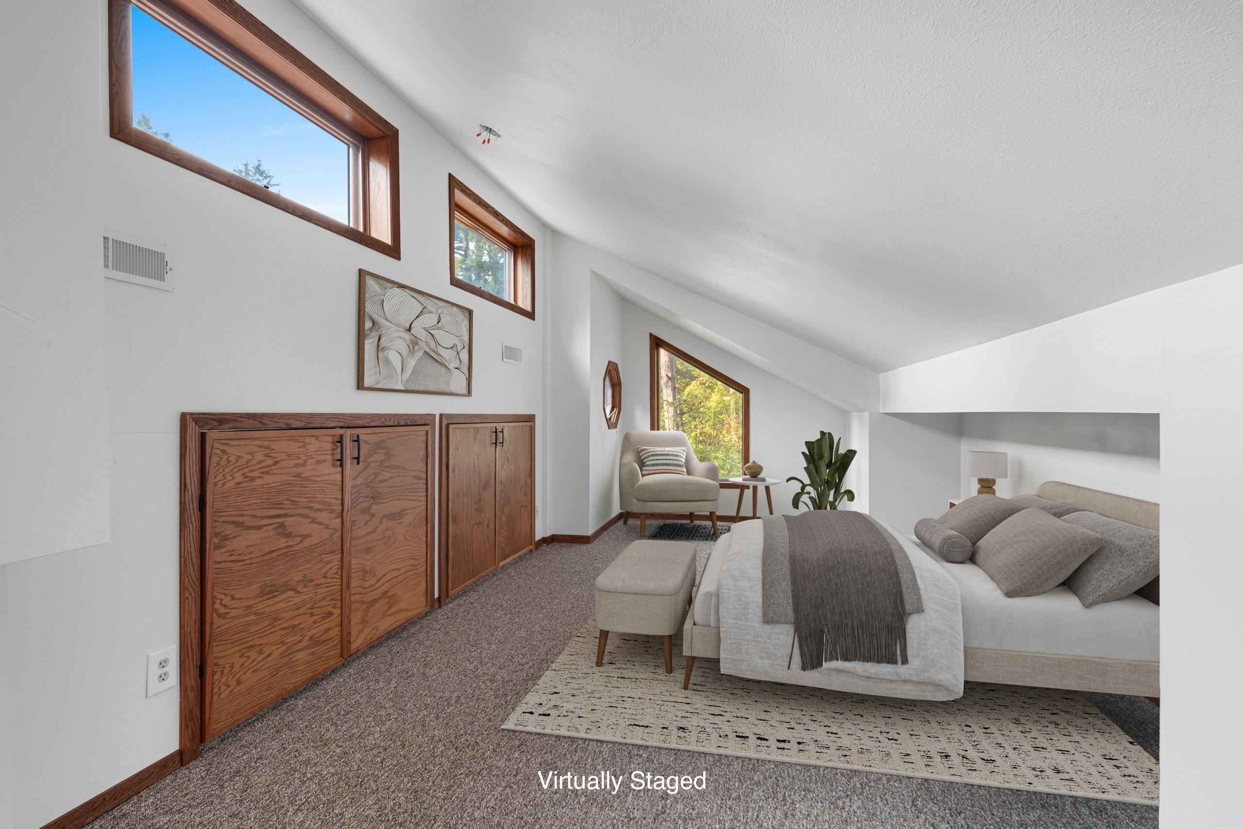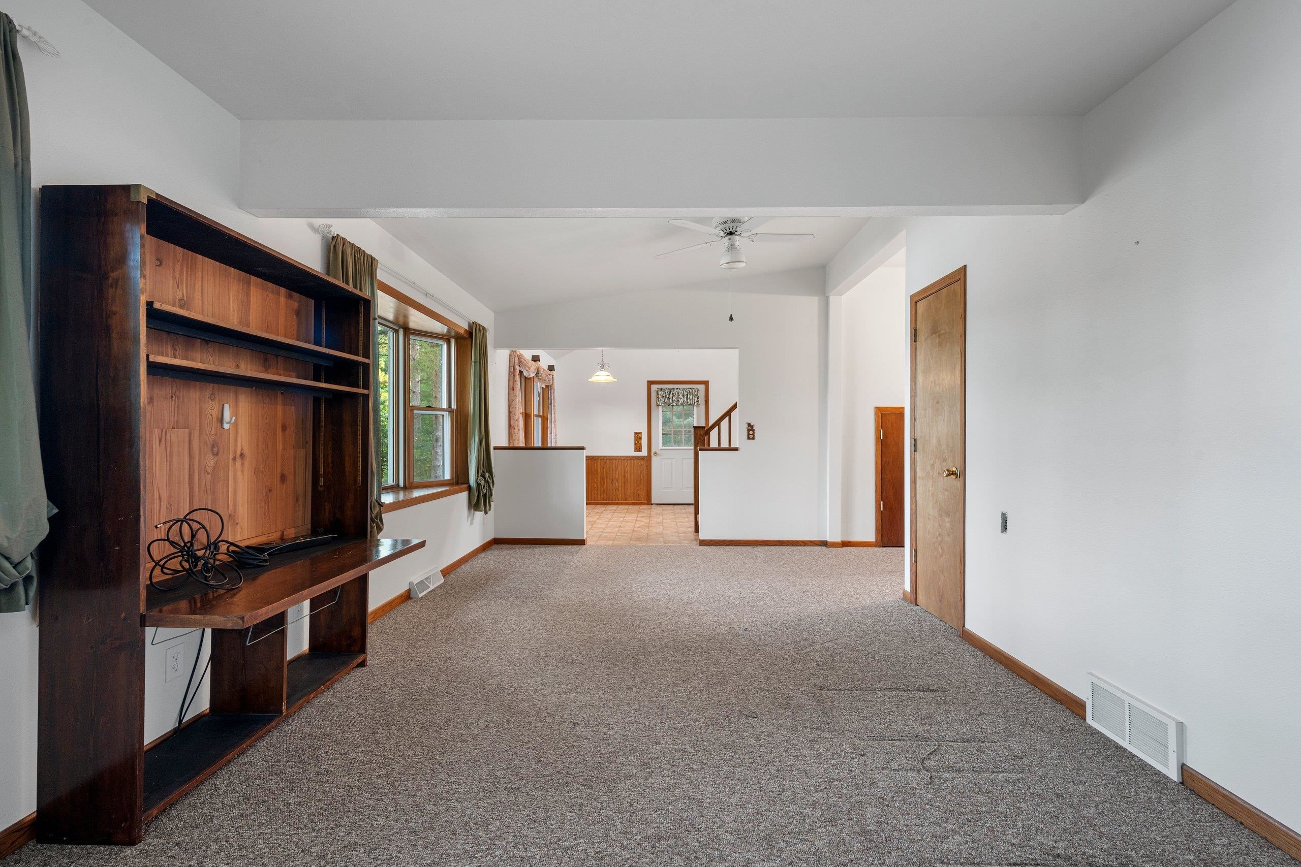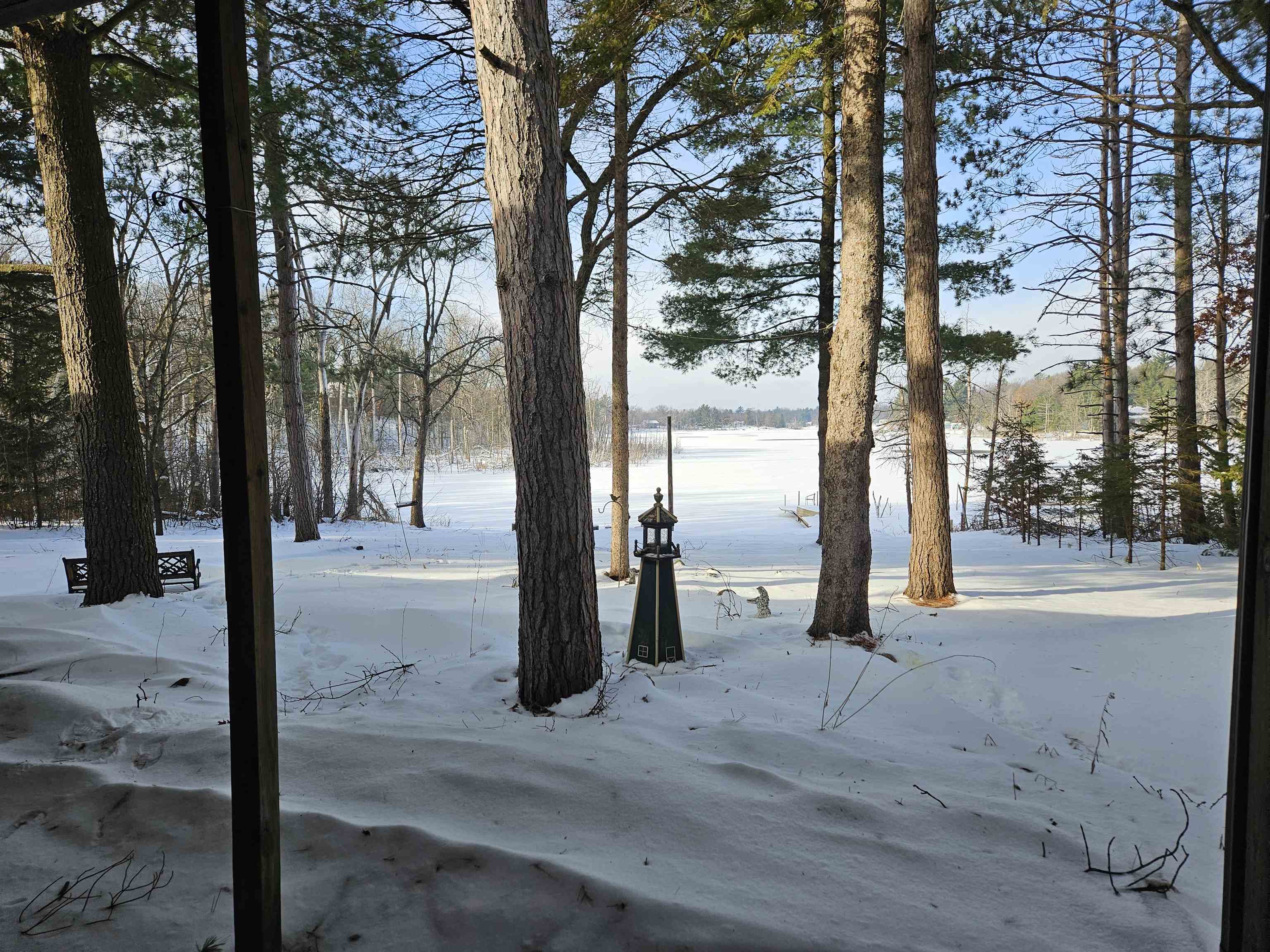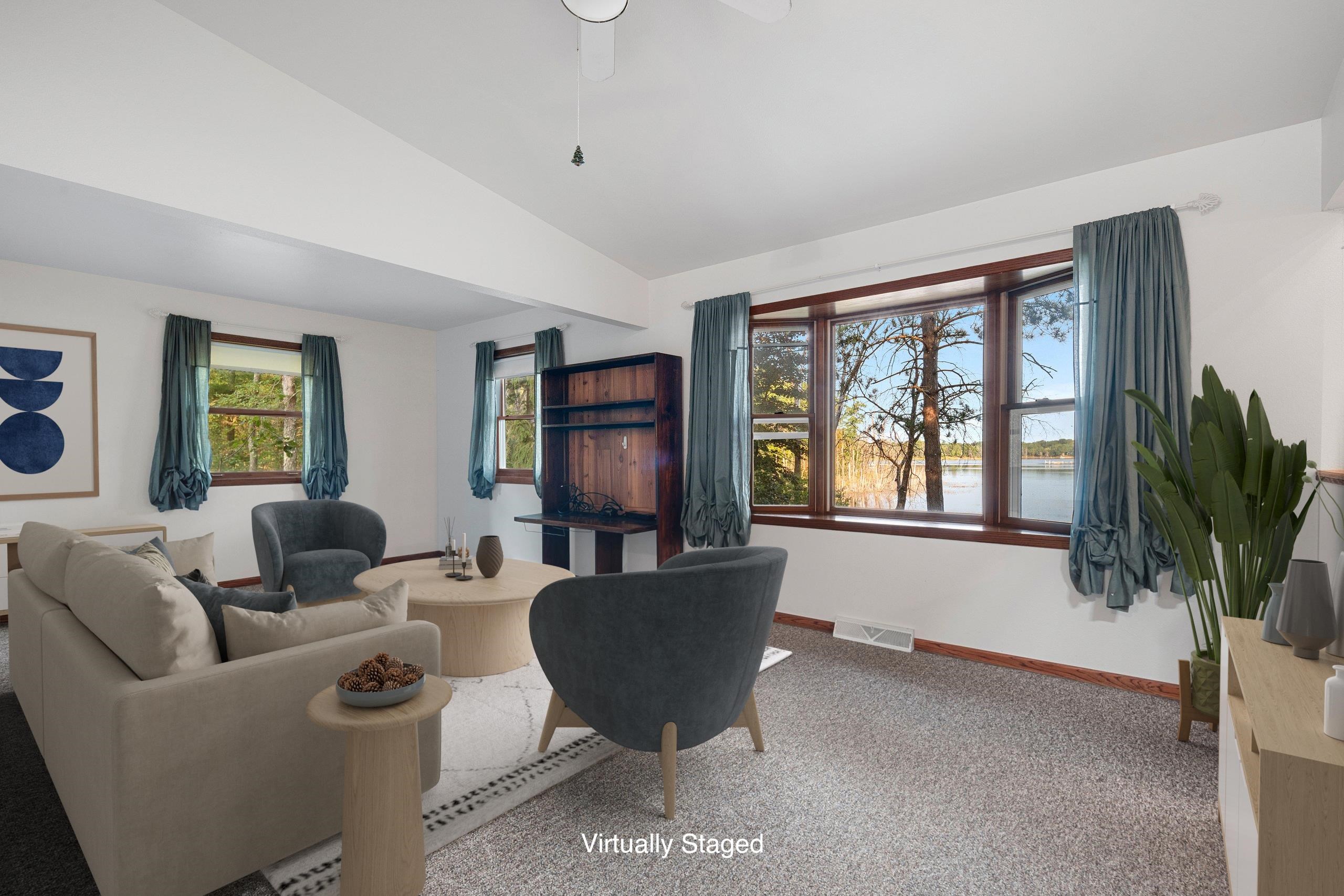 Head into spring with year-round lake living on 5.8 private acres with approximately 236 feet of Long Lake frontage, including a sandy beach area. Enjoy mornings on the covered porch, afternoons on the patio, and sunsets over the water. The upper-level loft serves as a bunkhouse or bedroom, while the walkout lower level offers a bedroom or office with walk-in closet, full bath, and rec room for guests. The kitchen features hickory cabinetry and opens to dining and living areas with lake views. Secondary access off Aniwa Lane offers future building flexibility. Includes attached garage with 220-volt outlet, 26x26 shed/garage, and 50-amp RV hookup. Some images virtually staged.