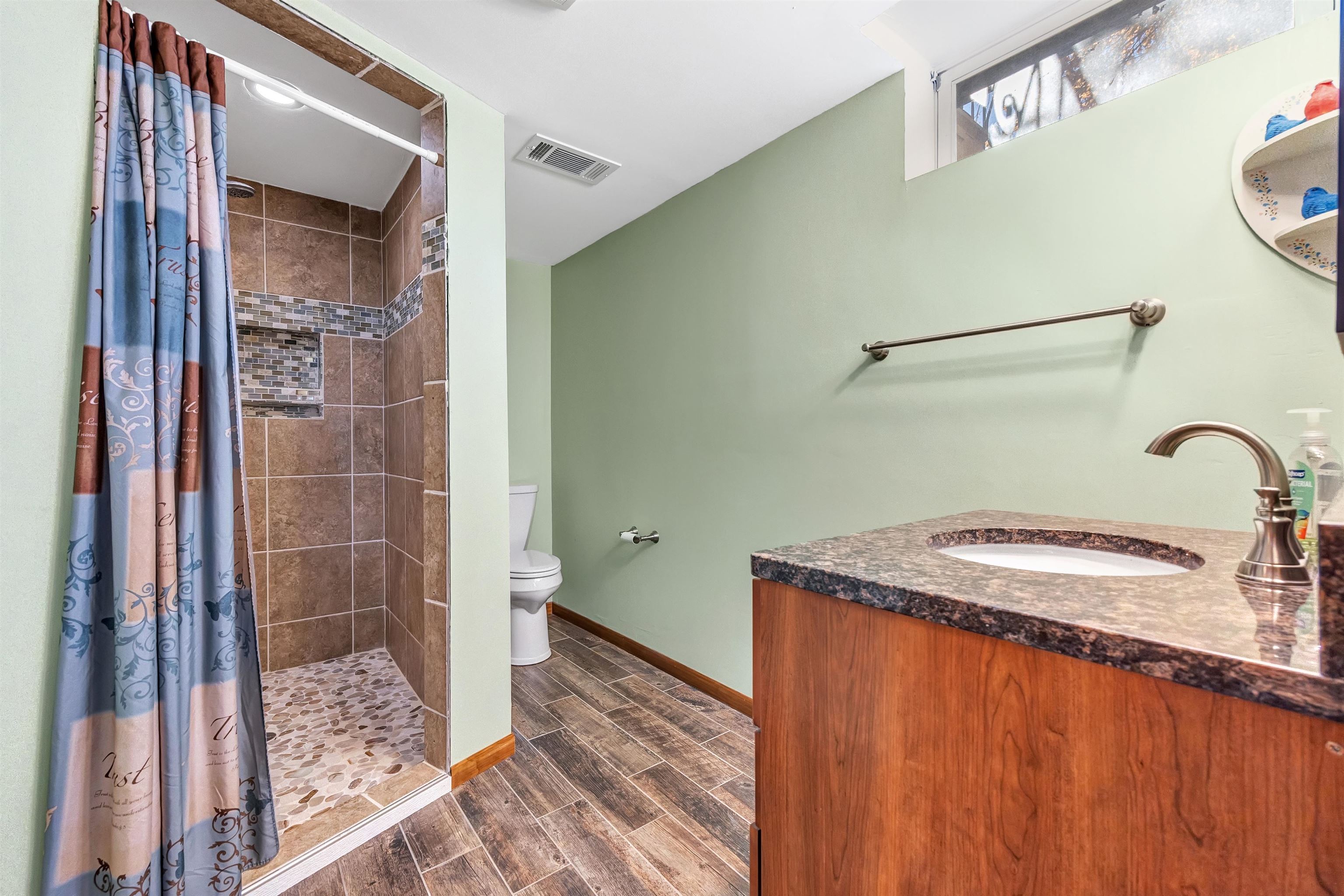 Welcome to this well-kept, quality stick-built ranch offering comfort, functionality, and extra finished space for the way you live. This 3-bedroom, 2-bath home features a fully finished lower level complete with two bonus rooms—endless possibilities for guests, office space, hobbies, or workouts, etc. The spacious rec area is currently utilized for entertaining, with plenty of room for a pool table and plumbing already in place for a future wet bar. Again, endless possibilities. Enjoy outdoor living on the concrete patio overlooking the fenced-in backyard, providing privacy and a great space for pets or gatherings. Thoughtfully maintained and move-in ready, this home combines practical layout features with inviting spaces throughout.