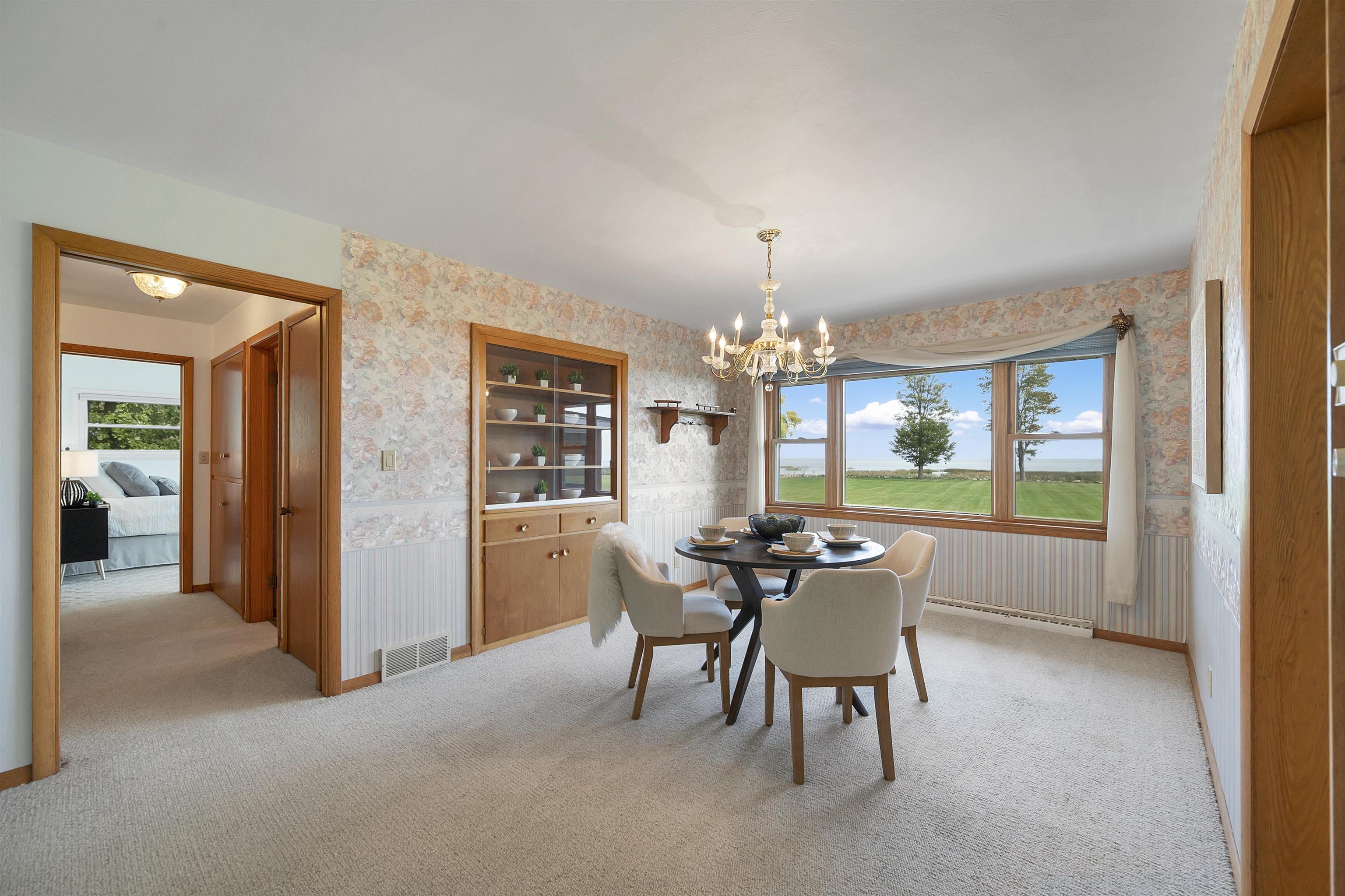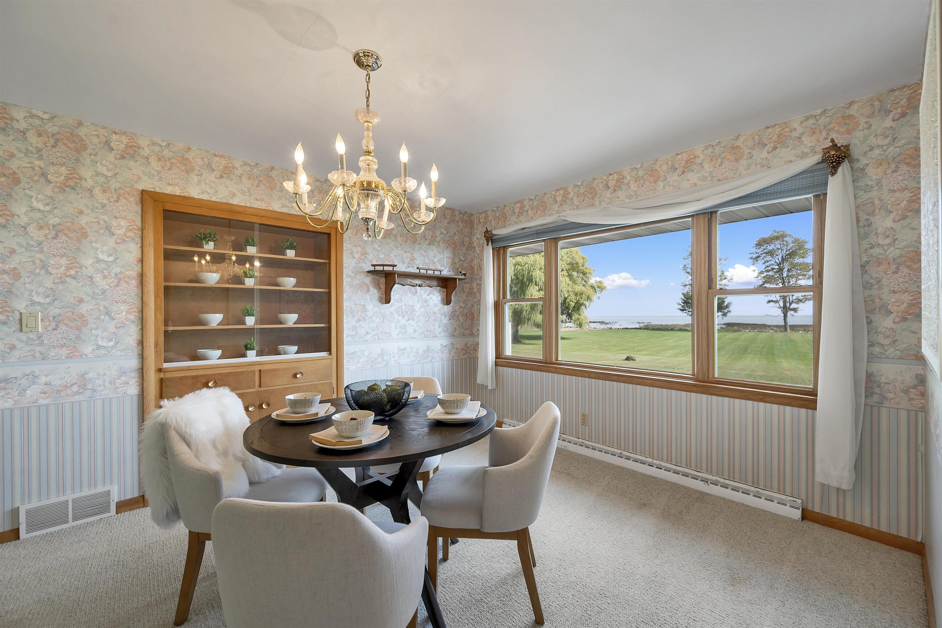 Sprawling brick ranch sits on over 2 acre along the Bay of Green Bay in Oconto, just 25 minutes north of Green Bay. This 3-bedroom, 2-bath home offers a bright, open layout with an area perfect for home office or guest suite all overlooking the bay. Set on a park-like yard nearly the size of a football field, it blends comfort, space, and the peaceful rhythm of life Up North. A 2,000 sq. ft. basement provides endless potential for added living space, a rec room, or guest suite. Step outside to your private 225'+ of Bay front for sunsets, boating, and relaxation. Properties priced like this along the bay rarely come available. Don’t miss the chance to make this one yours.
