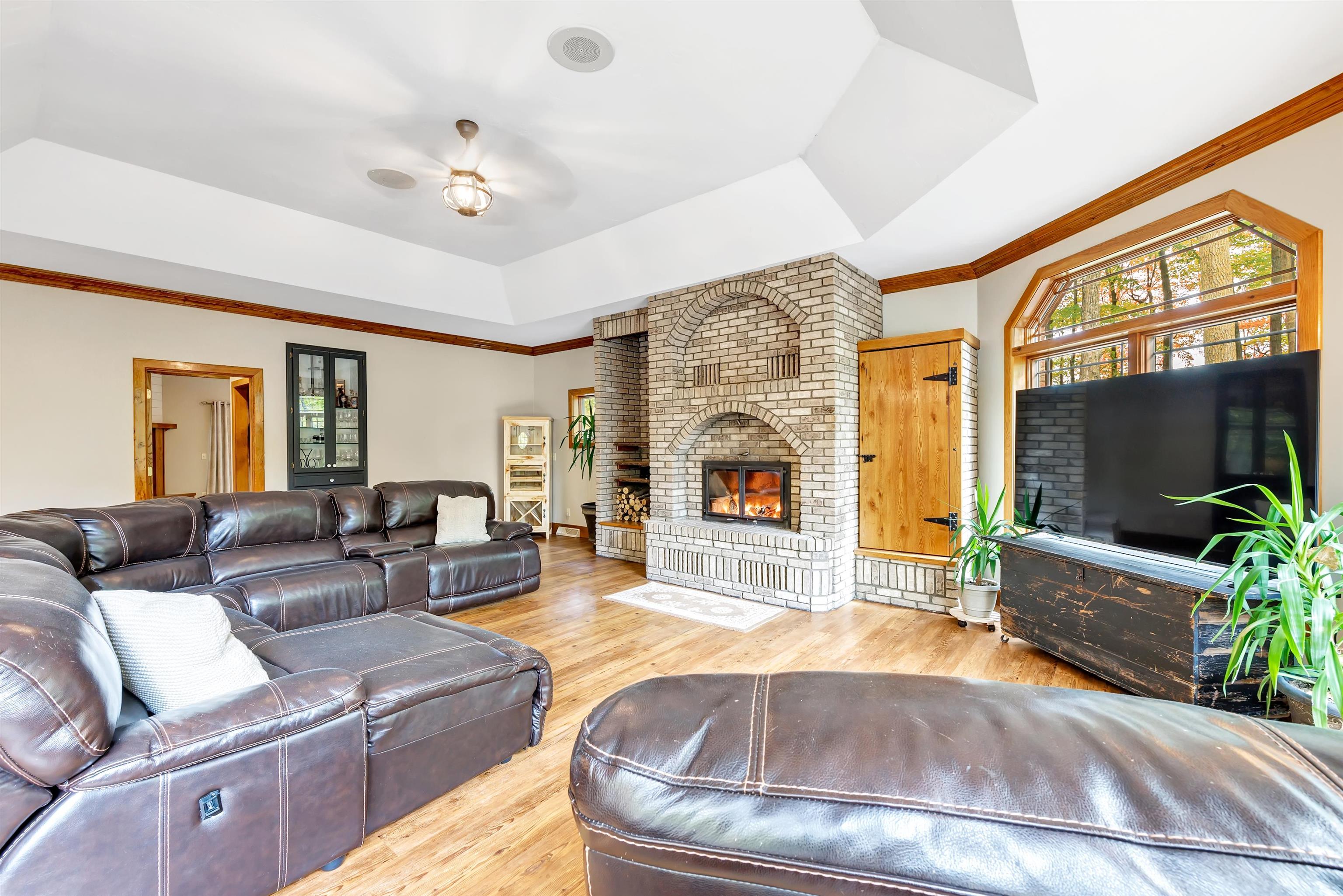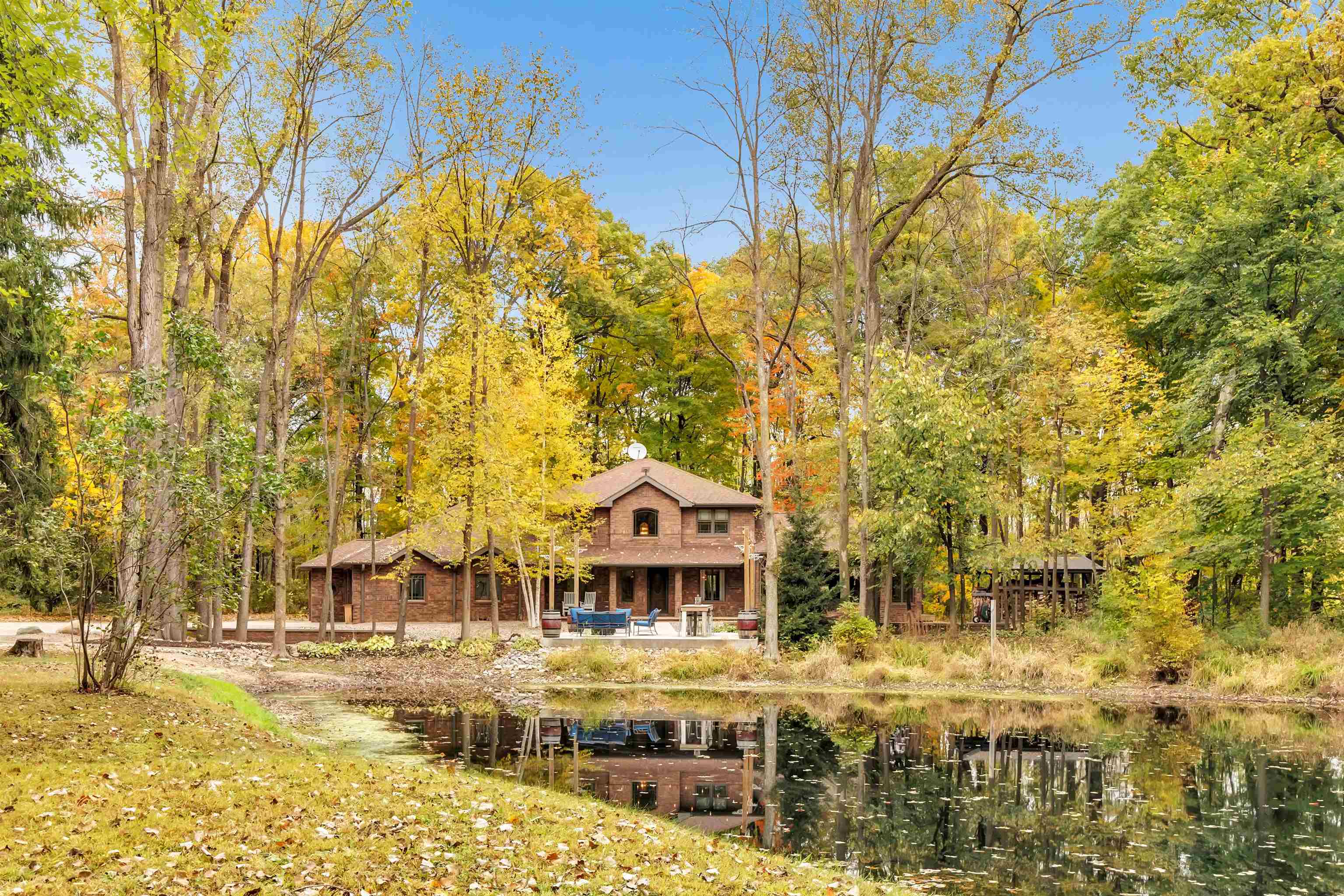 Gorgeous wooded setting for this quality built 2-story home in the Seymour School District. The home sits on 3.27 acres with a private pond. Features include: 3 bedrooms (potential for a 4th in the loft area), 2 full & 2 half baths, 1st floor primary suite with a fireplace, large great room with a floor to ceiling wood burning fireplace and large windows with amazing views. 1st floor office & laundry, spacious kitchen with a large granite island open to the dining/living room. Formal dining area. Heated attached garage with epoxy flooring, a separate heated workshop area, and steps to the basement plus a second detached 28 x 50 garage. Unfinished lower level with 8' ceilings. Newer patio overlooking the pond. Special Financing Incentives available on this property from SIRVA Mortgage.