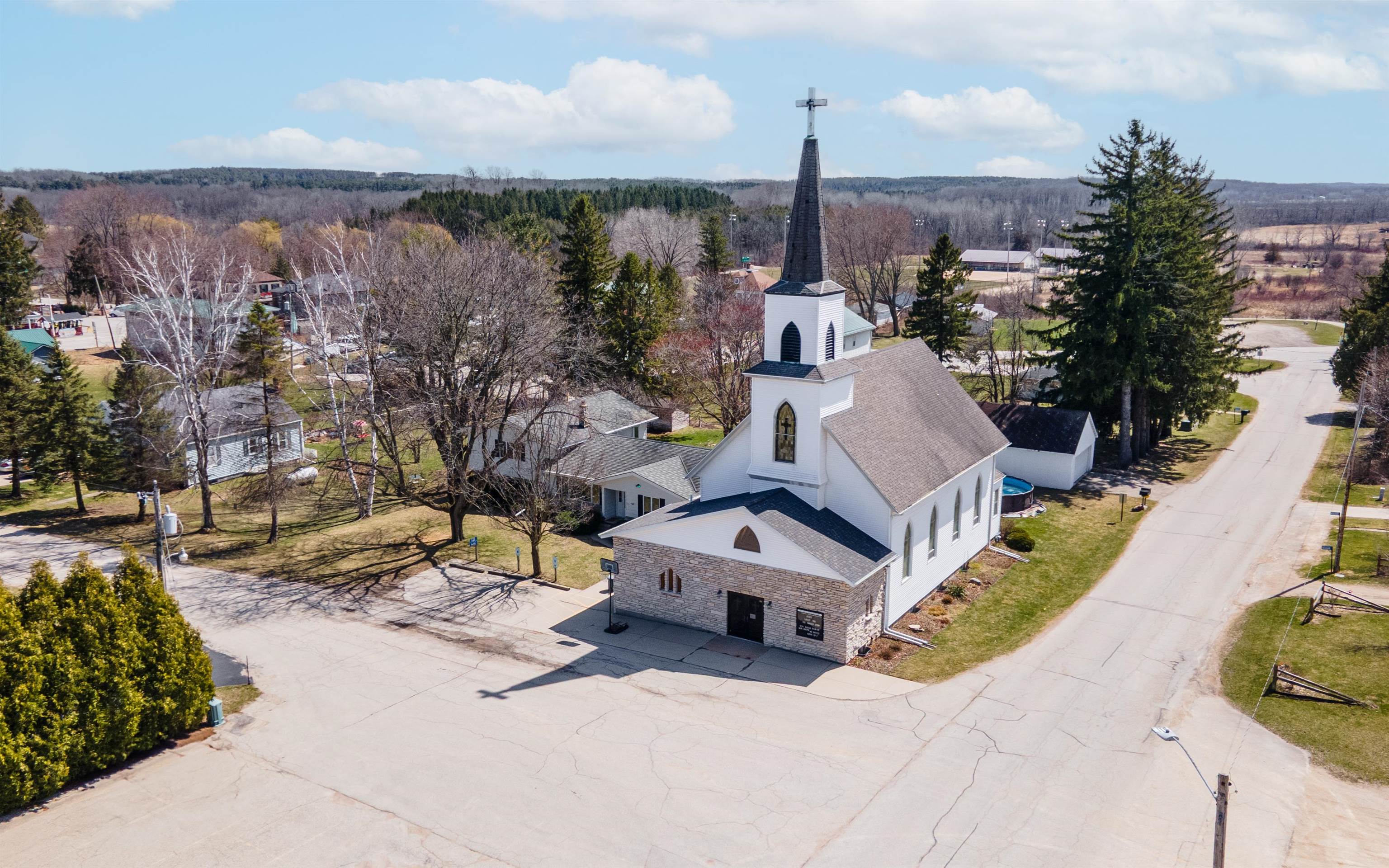 Residential and/or Commercial Opportunity in one. This property is a full package deal including a residential home, Church, and parking lot all included. Reside or Rent the multi level single family home with 4 bedrooms, 2.5Baths,2 living room,& updated kitchen. Includes a 2 car detached garage. The church offers a great space, stained glass windows, front entry, & balcony. It can be used for commercial purposes or make it a storage unit or possible rental. Start a business now or years from now. Located in the heart of the Kettle Moraine otherwise known as DUNDEE, WI. Property cannot be divided, must be sold in it's entirety. Property being Sold As-Is. Please allow 4 days for acceptance as needs to be approved by the church council