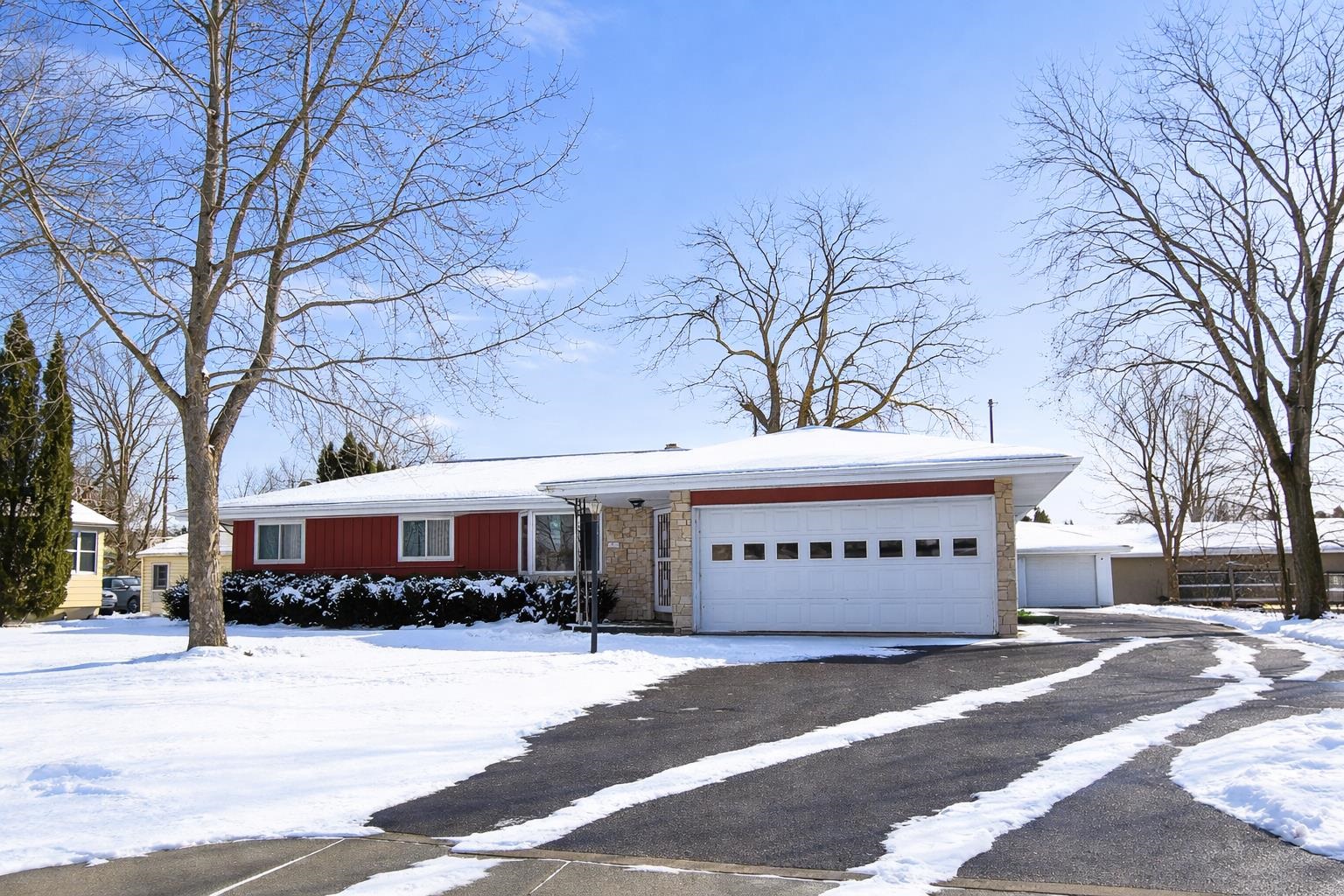 Brand new roof! Welcome to this well maintained northside ranch near the Fox River and Wiouwash Trail with 2 bedrooms and 1.5 baths offering comfortable living and a fantastic layout. A spacious family room provides an inviting place to relax or entertain with sliding doors opening up to a den/sitting room that features a patio door leading to the covered patio and spacious backyard great for entertaining. Huge primary bedroom gives you the space you’ve been dreaming of, offering plenty of room to relax and make it your own. Full basement offers ample storage or future expansion potential. Attached 2 car garage adds everyday convenience and detached garage is a standout bonus for extra vehicles, hobbies, or a workshop. This ranch delivers comfort, functionality, and opportunity!