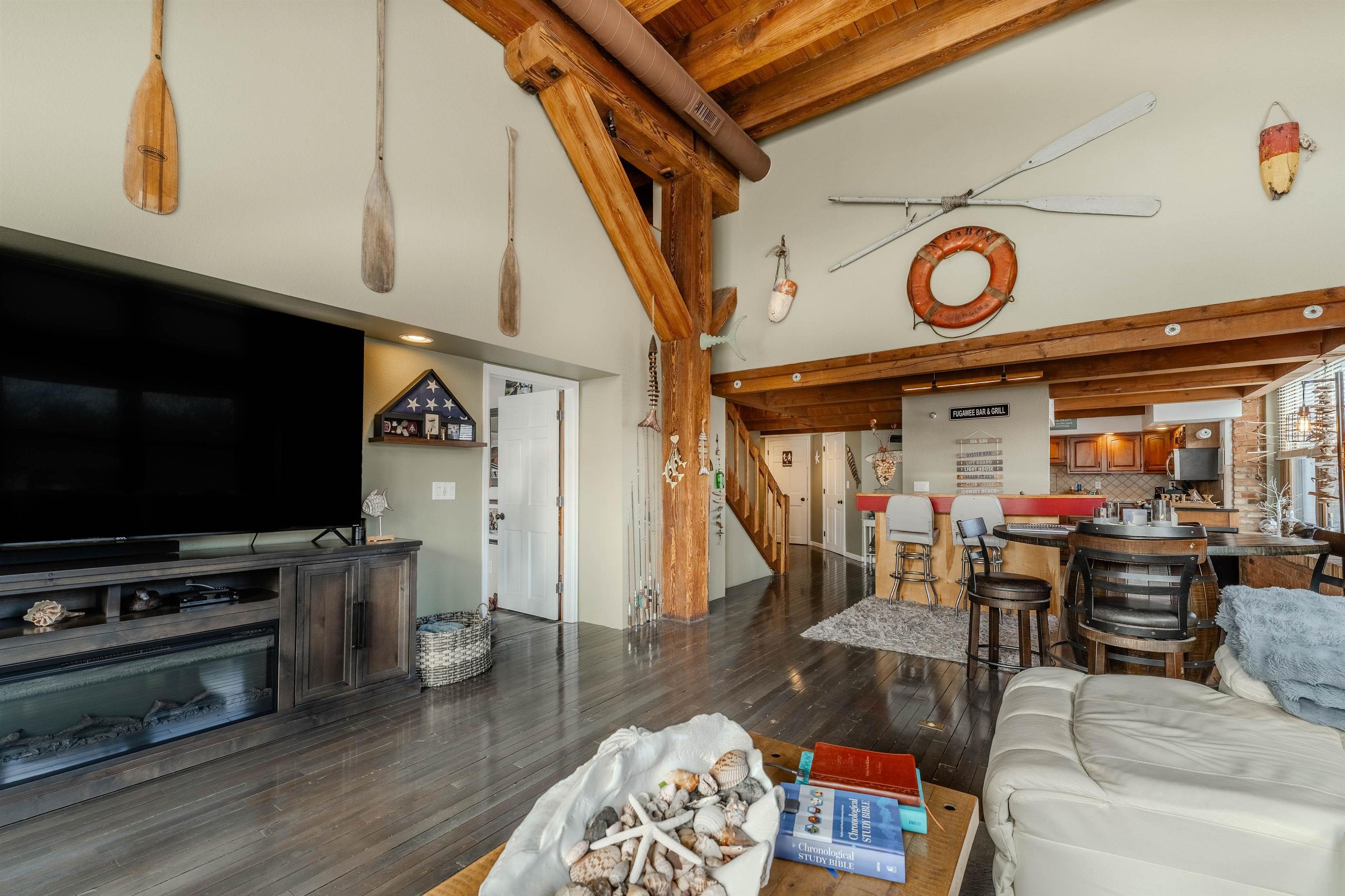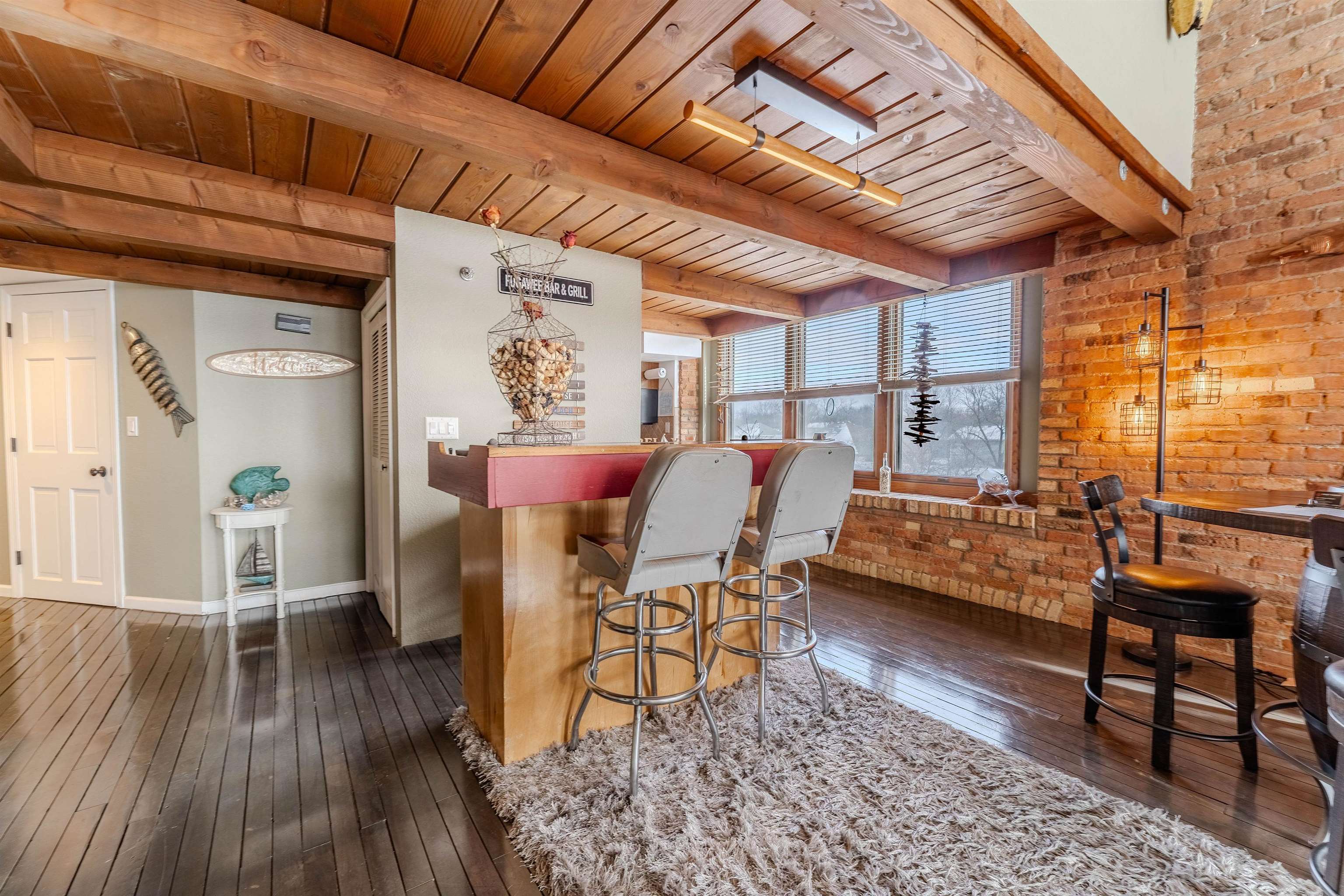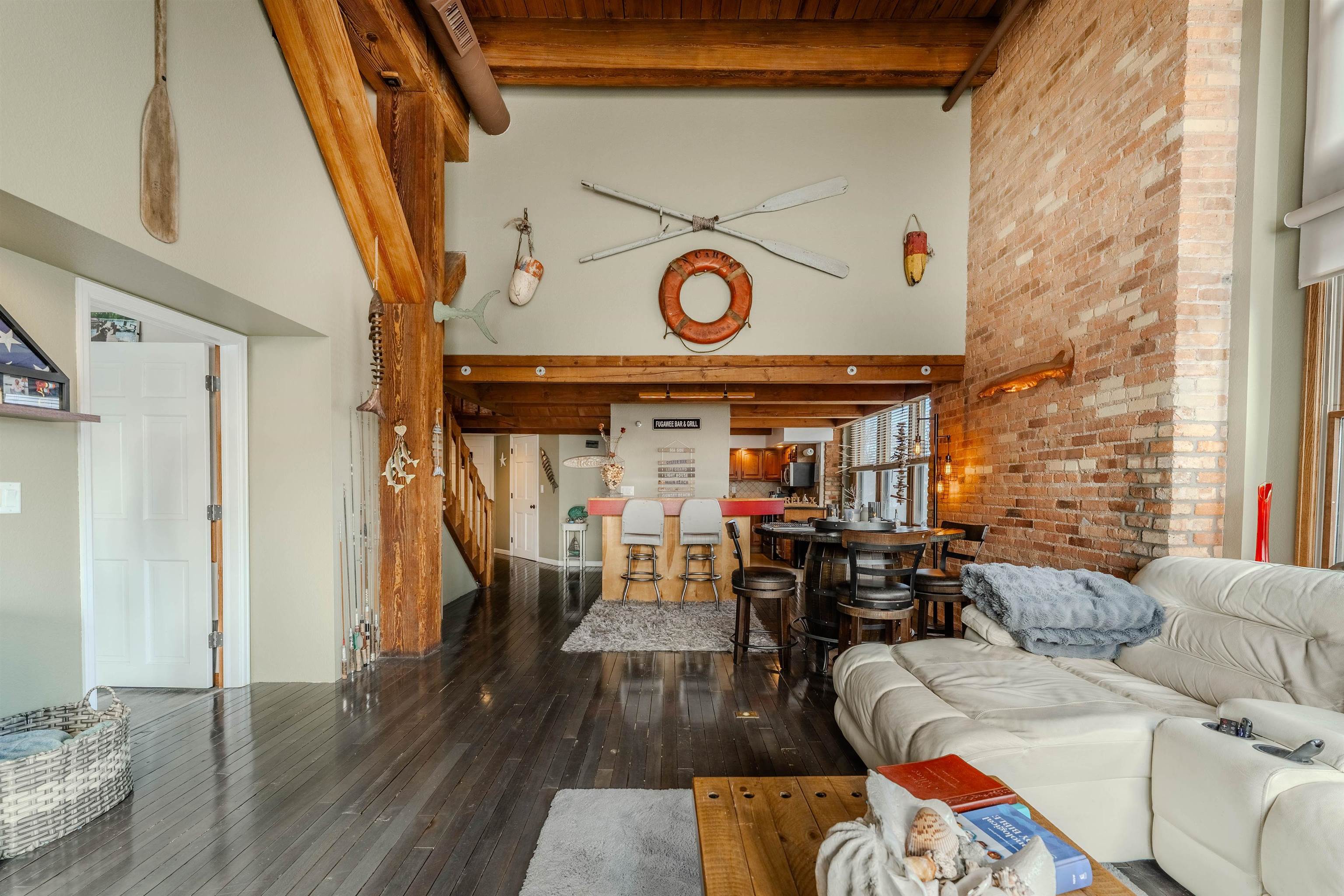 PreCertified oversized corner unit with over 2,100 sq ft of beautifully updated living space featuring 3 bed and 2.5 bath. Bright, open living area with huge windows, exposed beams, w/ newly refinished hardwood floors. Updated kitchen w/ full appliance package flows seamlessly for easy entertaining. Main-floor primary suite offers privacy and large ensuite bath with soaking tub. Upstairs offers two bedrooms w/ dual bathroom, laundry, and plenty of storage. Condo fees include: Spectrum cable/internet, water, lawn/snow maintenance, pool and sports complex. Garage #15 PAID BOAT SLIP FOR 2026 INCLUDED!