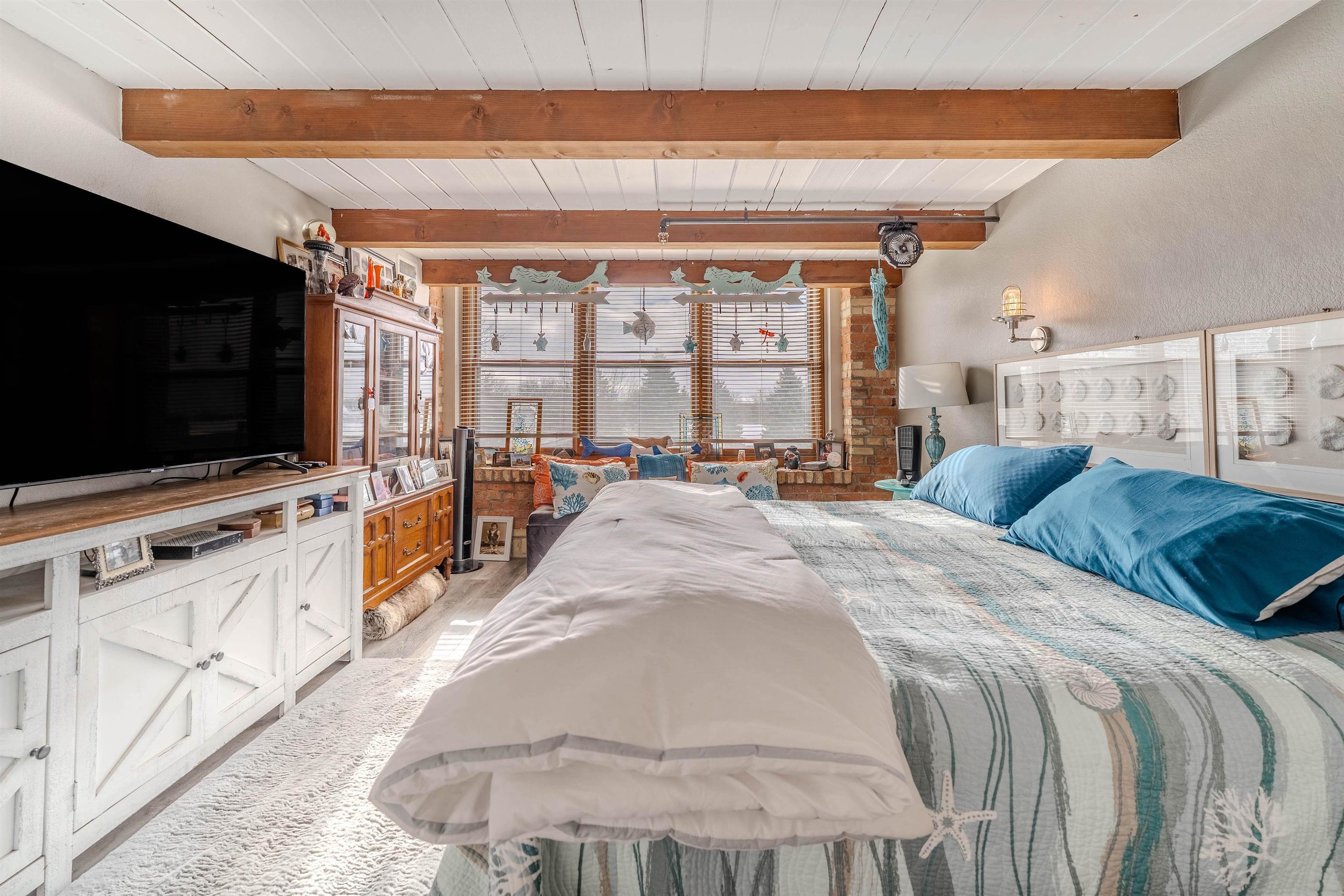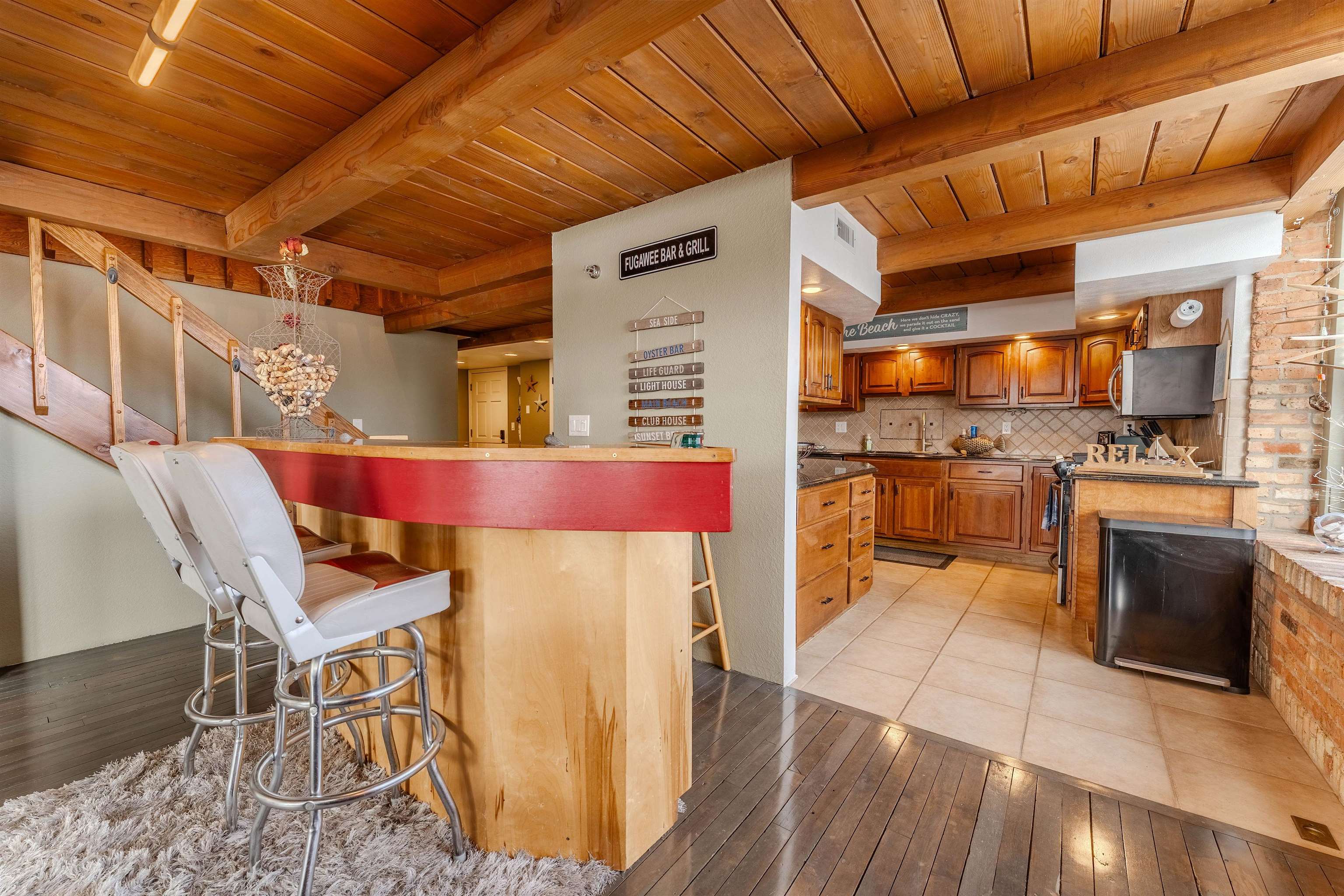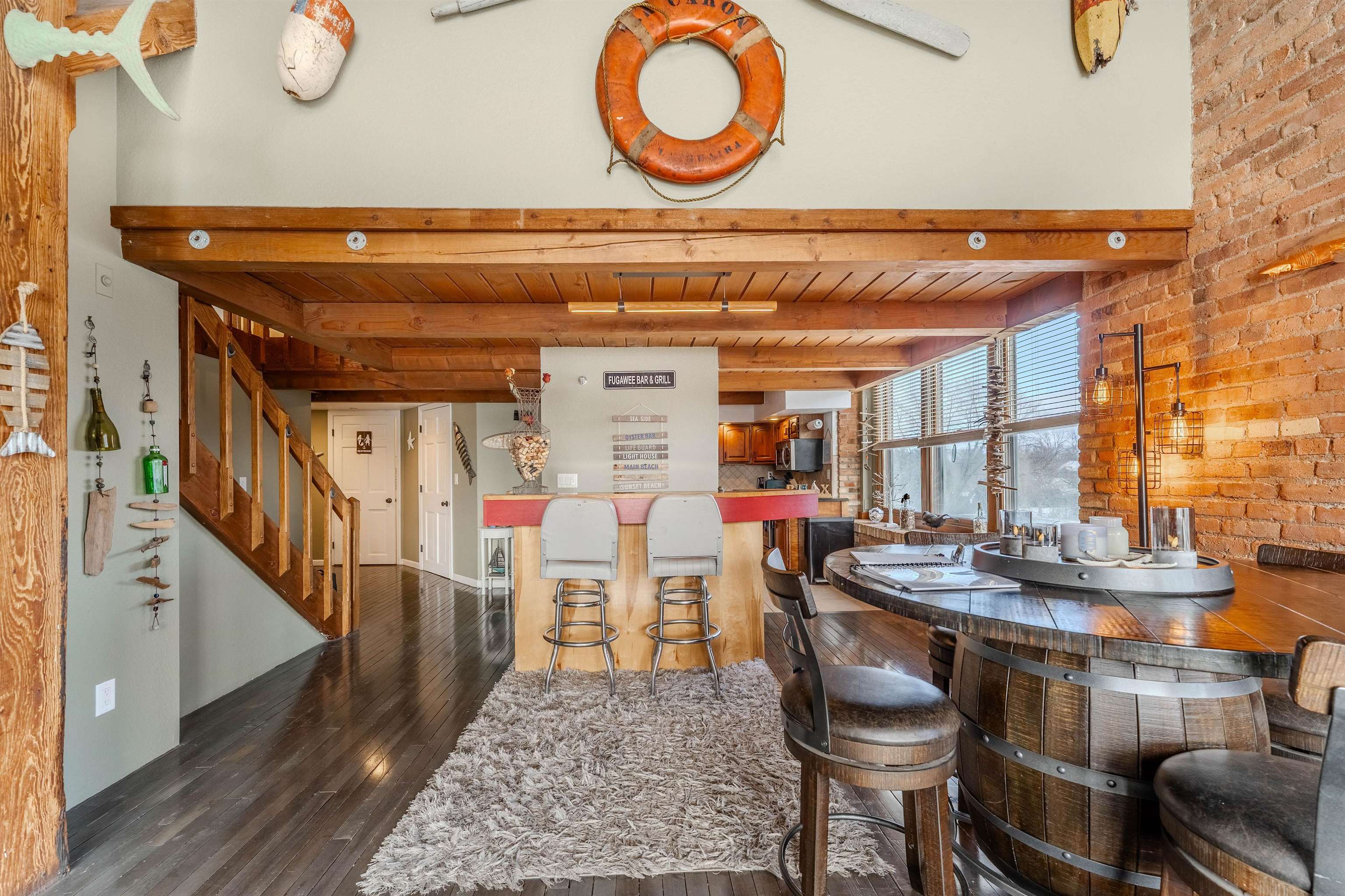 PreCertified oversized corner unit with over 2,100 sq ft of beautifully updated living space featuring 3 bed and 2.5 bath. Bright, open living area with huge windows, exposed beams, w/ newly refinished hardwood floors. Updated kitchen w/ full appliance package flows seamlessly for easy entertaining. Main-floor primary suite offers privacy and large ensuite bath with soaking tub. Upstairs offers two bedrooms w/ dual bathroom, laundry, and plenty of storage. Condo fees include: Spectrum cable/internet, water, lawn/snow maintenance, pool and sports complex. Garage #15 PAID BOAT SLIP FOR 2026 INCLUDED!