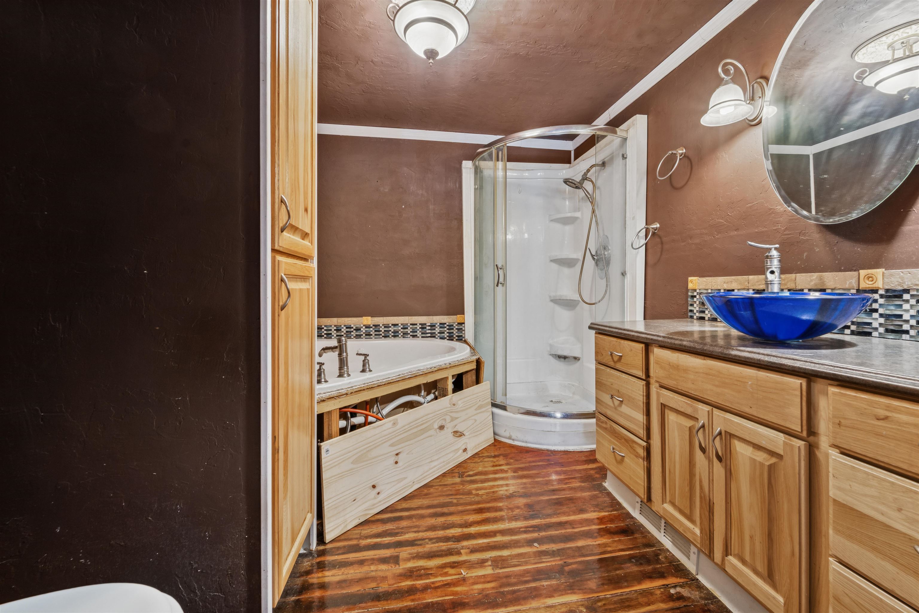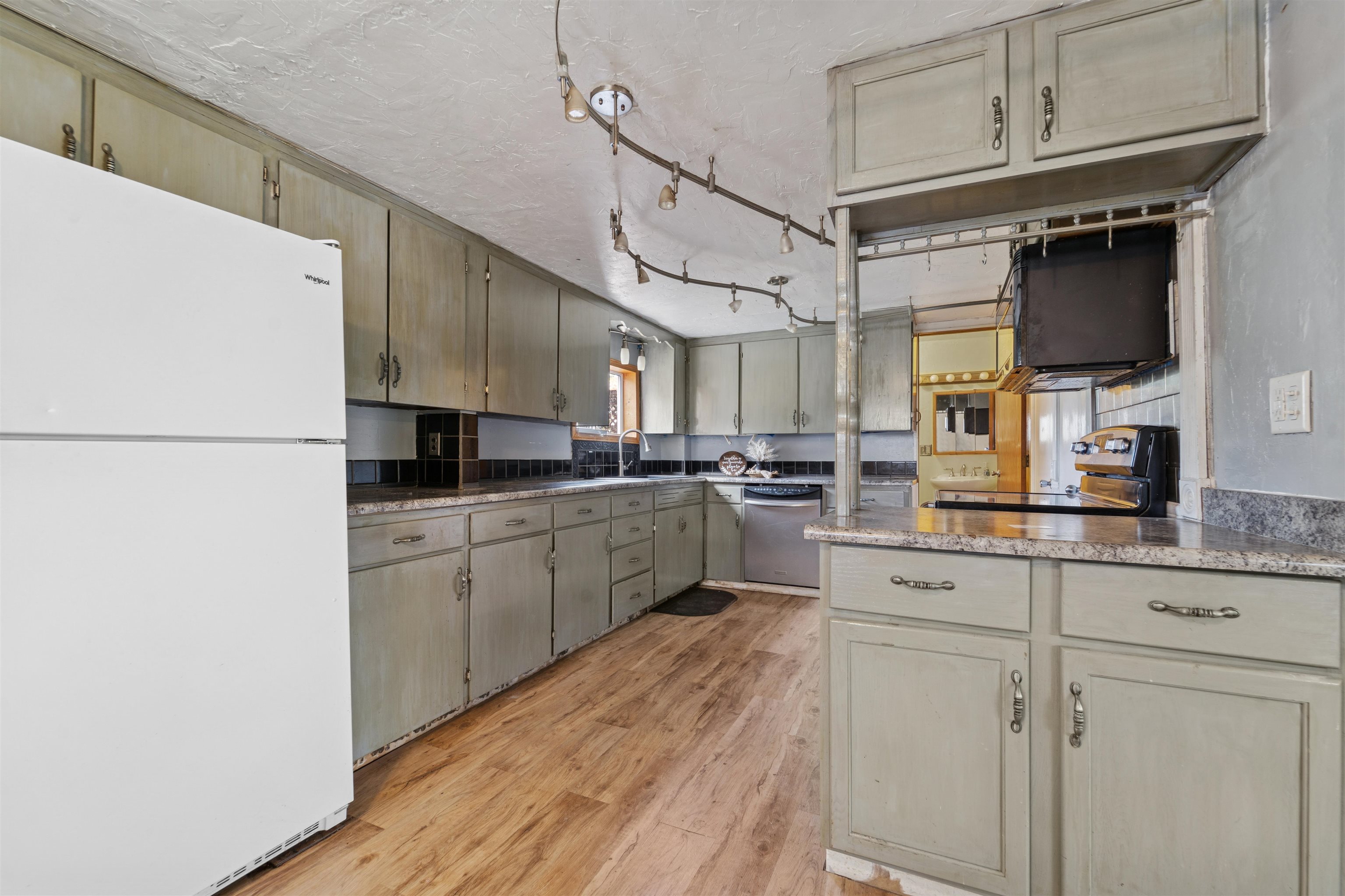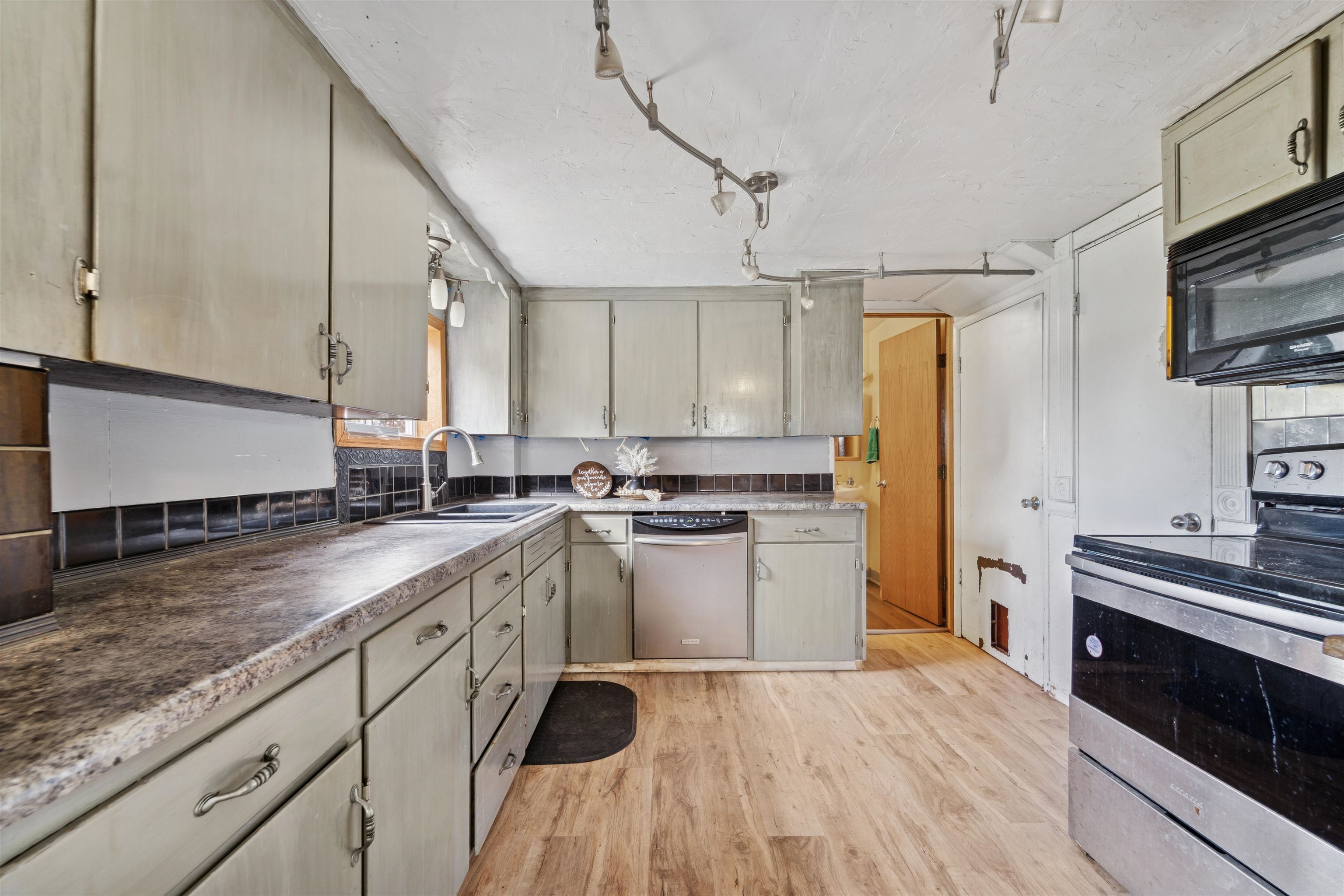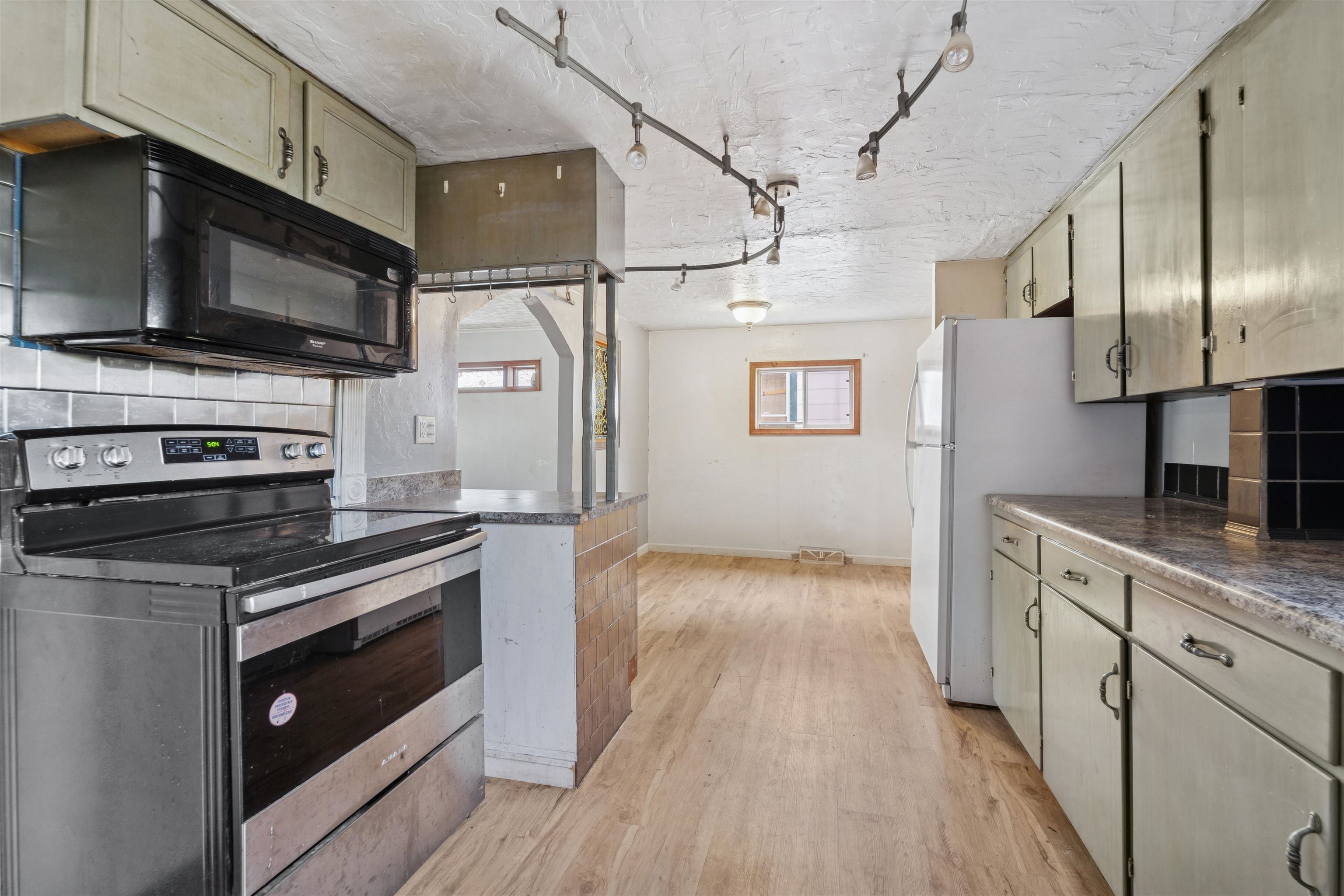 Loads of Potential! With 5BD, 2BA 1830+/- sq ft this home has room to grow. Main level primary bedroom with full bath needing your finishing touch, main level laundry with mud room, 2nd full BA, large living room, dining area and kitchen with pantry and all appliances included. Upper hosts 4 large bedrooms. Home is situated on 2 parcels with partially fenced yard, patio with pergola and 22X24 detached garage. Bring your tools and ideas! The home does need finishing touches. Seller requires 48 hour for binding acceptance.