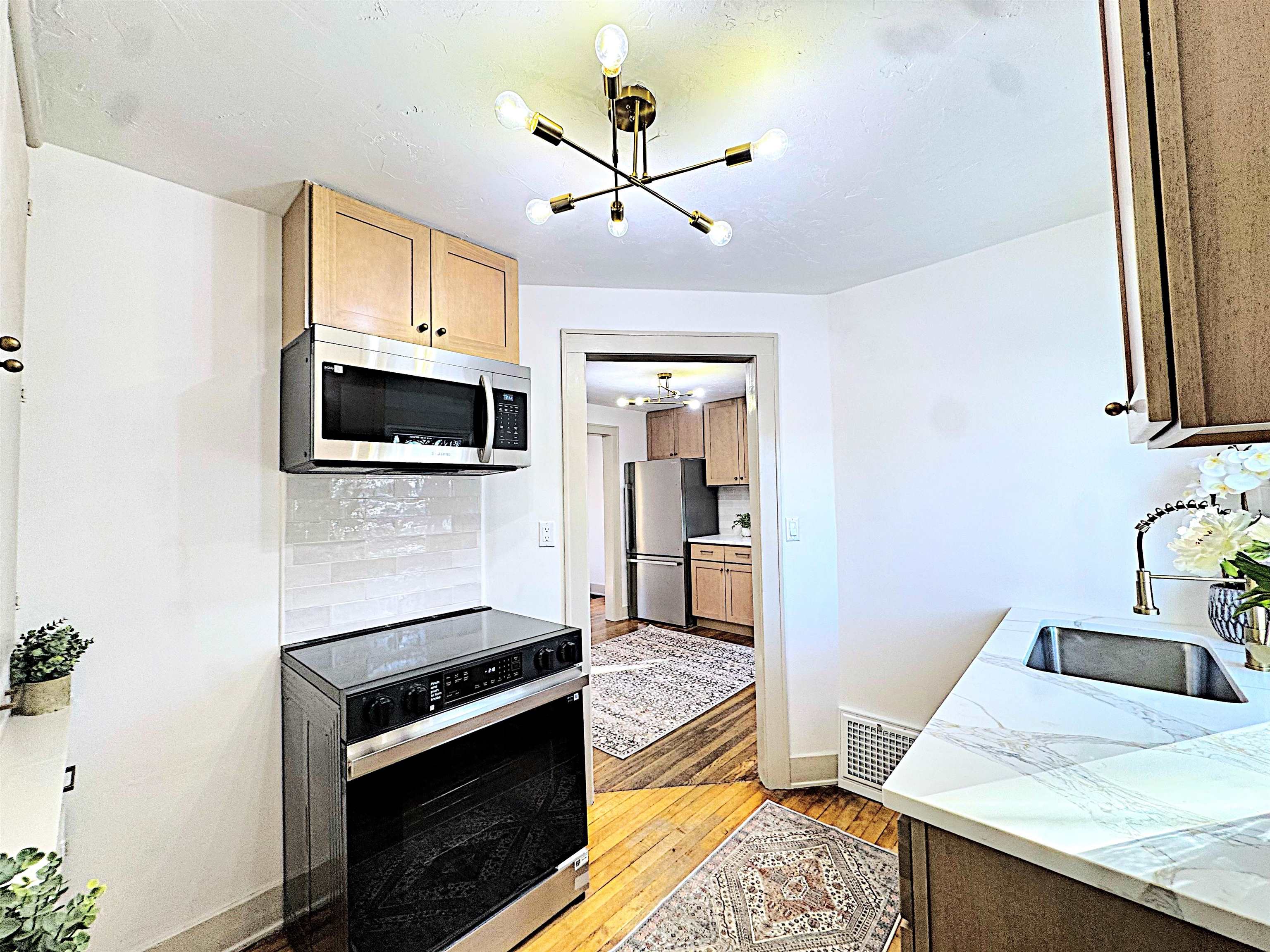 Updated 2 bedroom ranch with high end updates. Beautiful rejuvenated hardwood floors throughout. Kitchen features soft close shaker cabinets, seamless quartz countertops, tiled backsplash and stainless steel appliance package. Thermal vinyl energy efficient windows throughout. Bathroom features floor to ceiling custom tiled shower and shaker vanity. Raised basement with tons of natural light and large windows. High efficiency furnace has been tuned up. Nice sized yard with built-in fire-pit. Tandem extra deep garage with tons of storage space. Every detail has been updated. This is the one you have been waiting for to call home!
