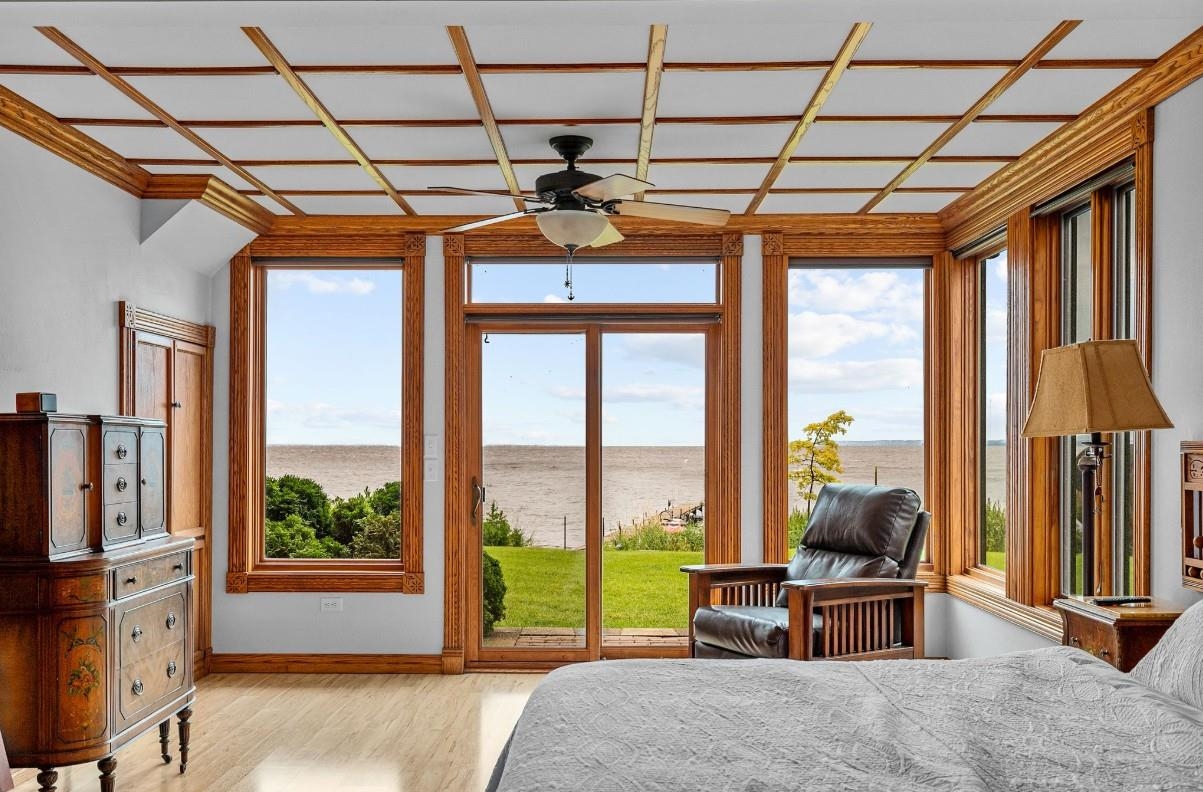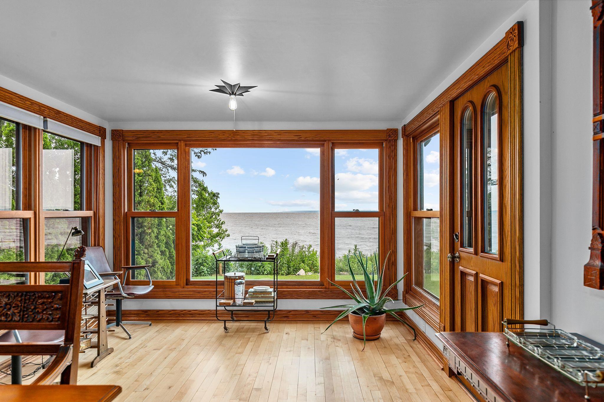One of a kind character home with 110 feet of frontage on Lake Winnebago. Set on a quiet street in Oshkosh, this 5 bedroom 4 bathroom home exudes quality with breathtaking views from many rooms. Flexible floor plan with both a 1st floor & 2nd floor primary suite, both with incredible sightlines over the Lake - watch wildlife from the time you wake until the time you watch the sun set. Hardwood floors flow elegantly from your living room to dining room as well as your kitchen and 1st floor laundry. Chefs delight kitchen with butcher block countertops, tile backsplash, and full appliance package including a Wolf oven. Can you imagine fishing/ice fishing steps from your back patio door?! Full recreation lake. All of this with a finished basement, 2 car attached garage and storage shed, too!