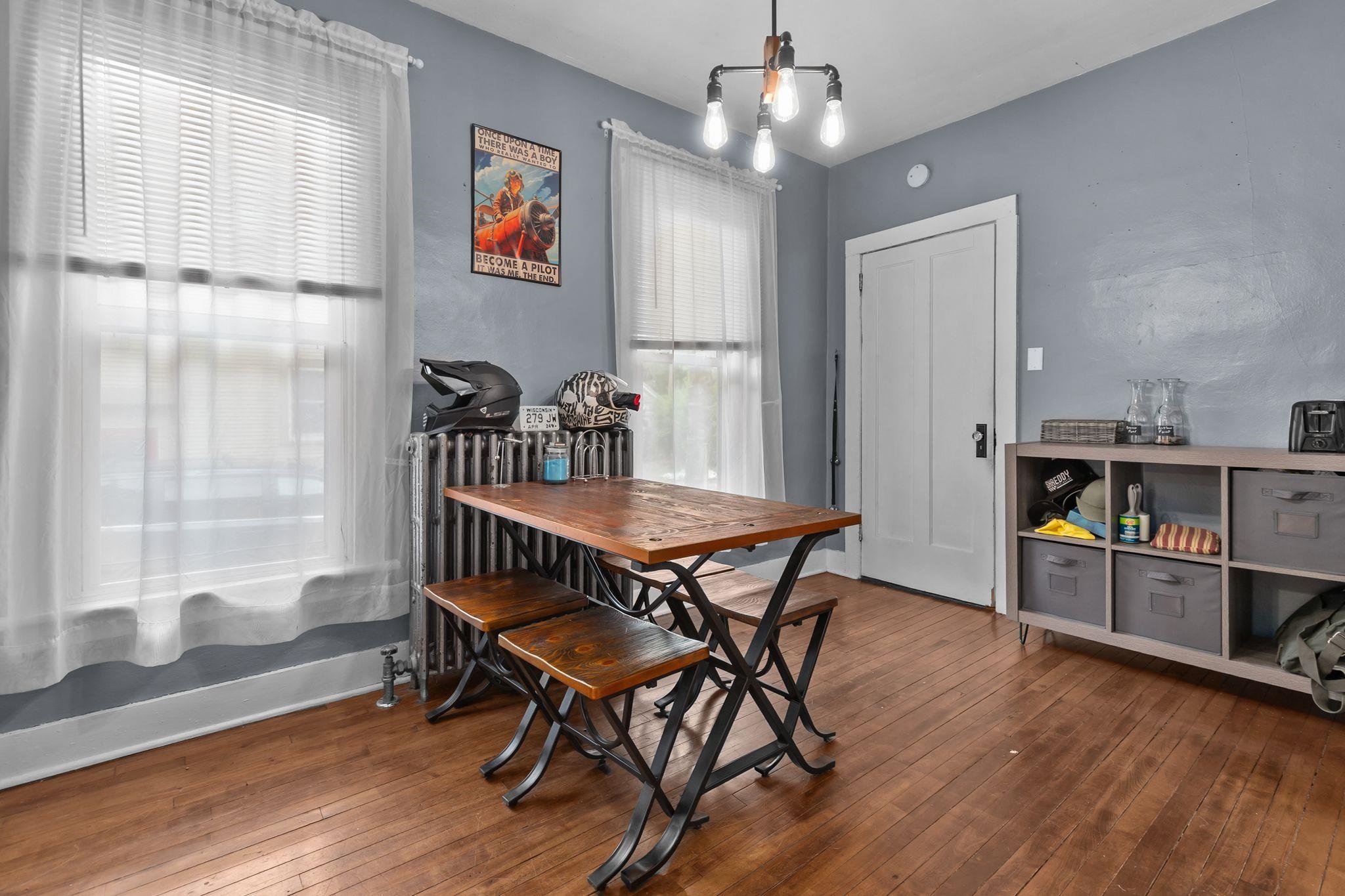 Light-filled, move-in ready 3-bed, 1-bath home with an open, welcoming first floor — excellent for everyday living and effortless entertaining. Nicely maintained and thoughtfully cared for, the main level flows easily from living room to dining to kitchen, creating a roomy, flexible footprint buyers love. Upstairs offers three comfortable bedrooms and an extra closet. Outside, a generous backyard provides plenty of space for gardening, play — or a future garage build. Located minutes from UW Oshkosh and Downtown, this charming home combines classic character with practical updates and is priced to move — don’t miss your chance to see it.