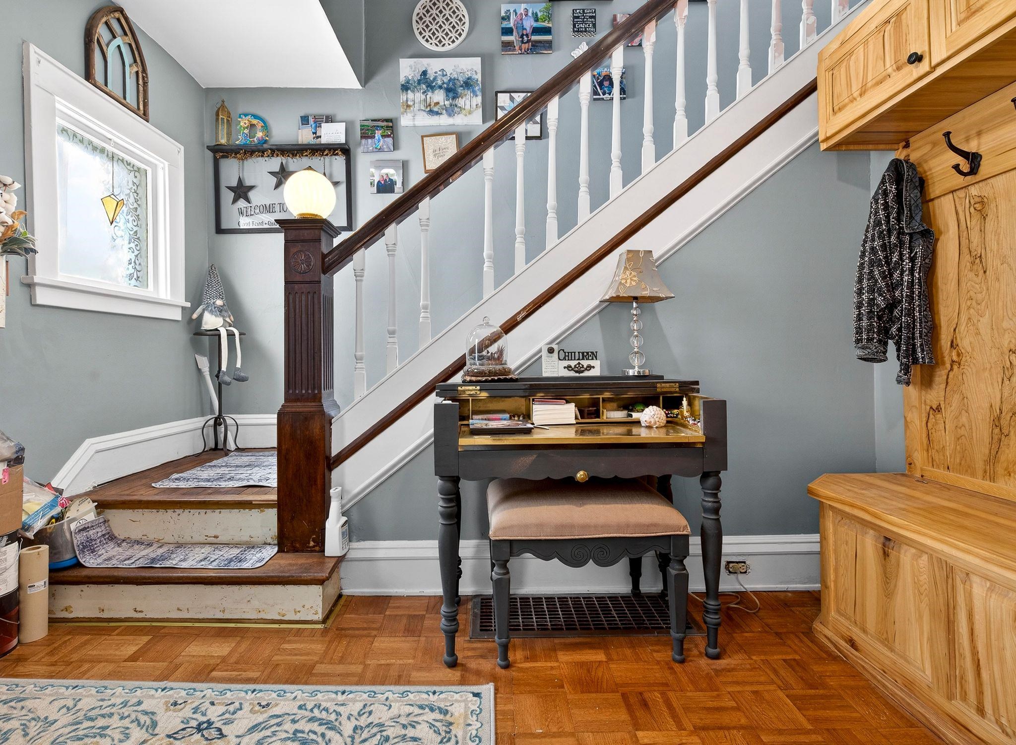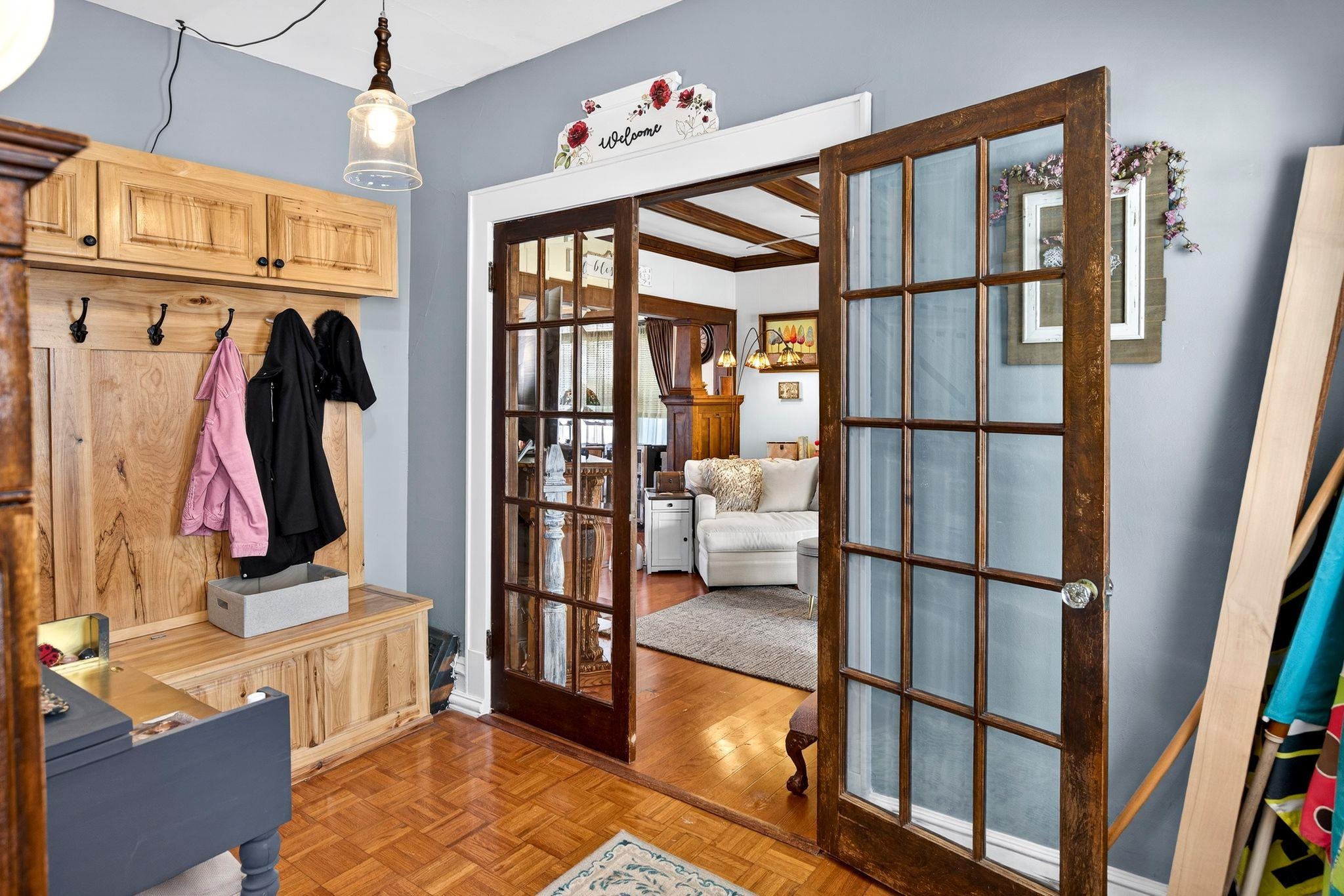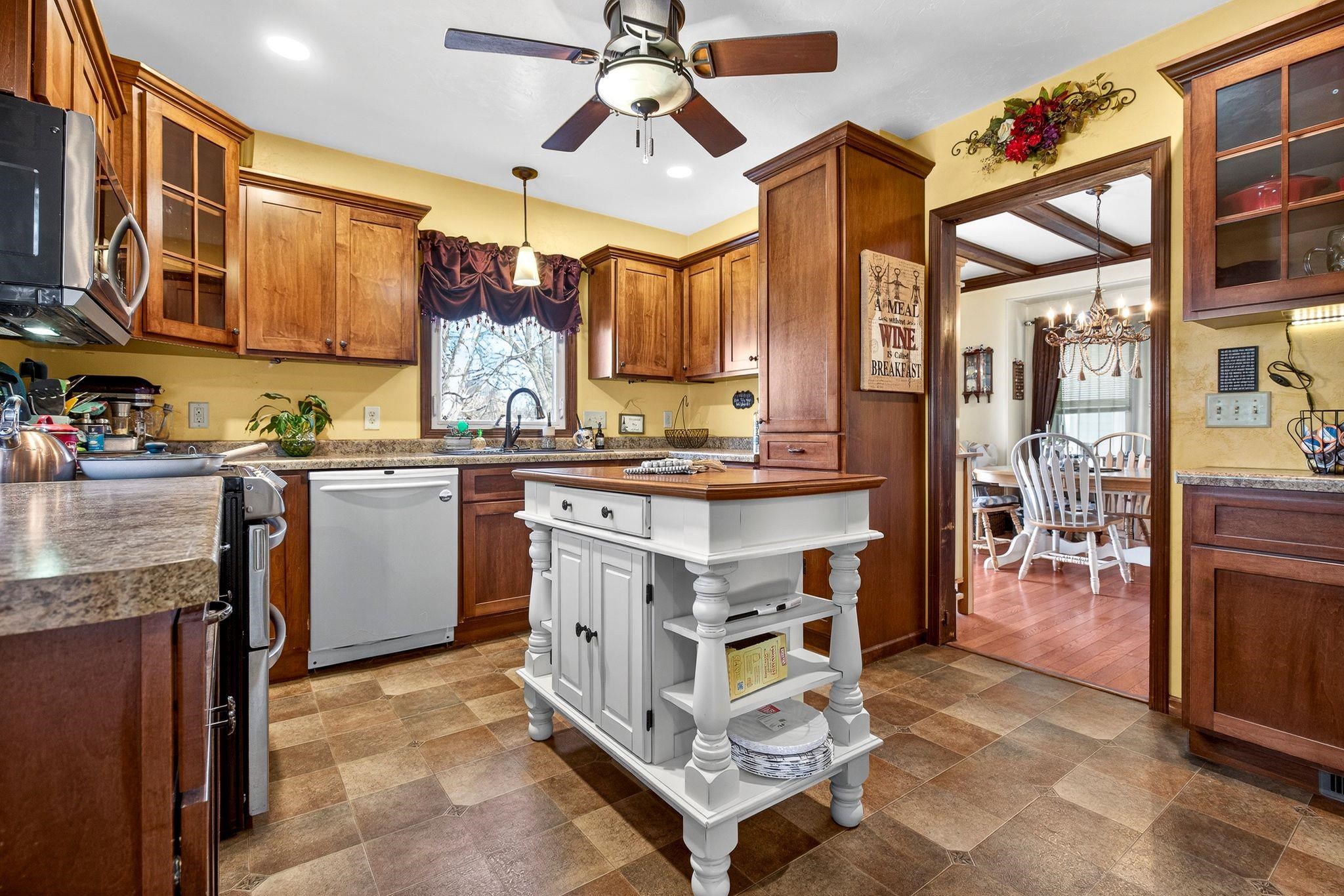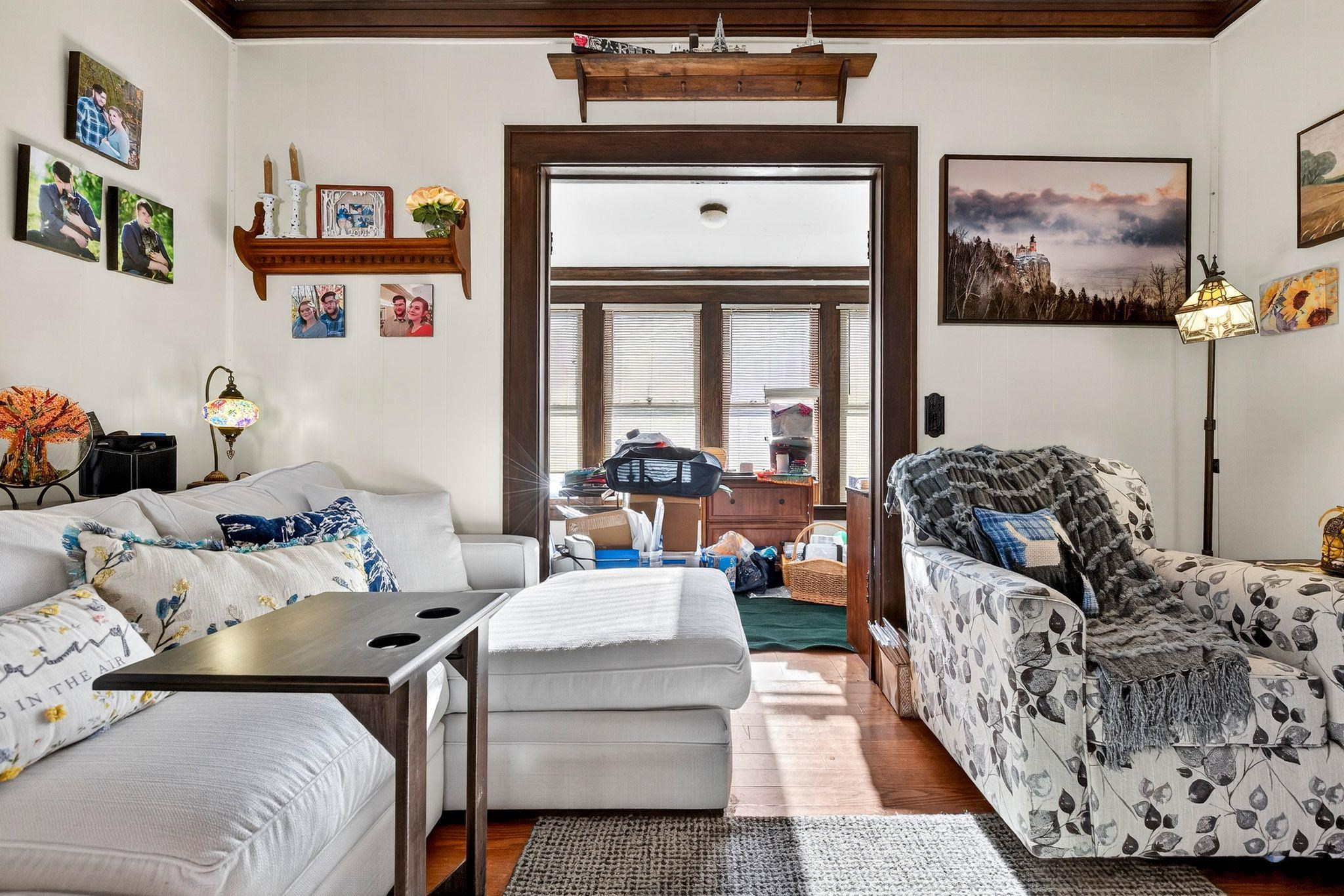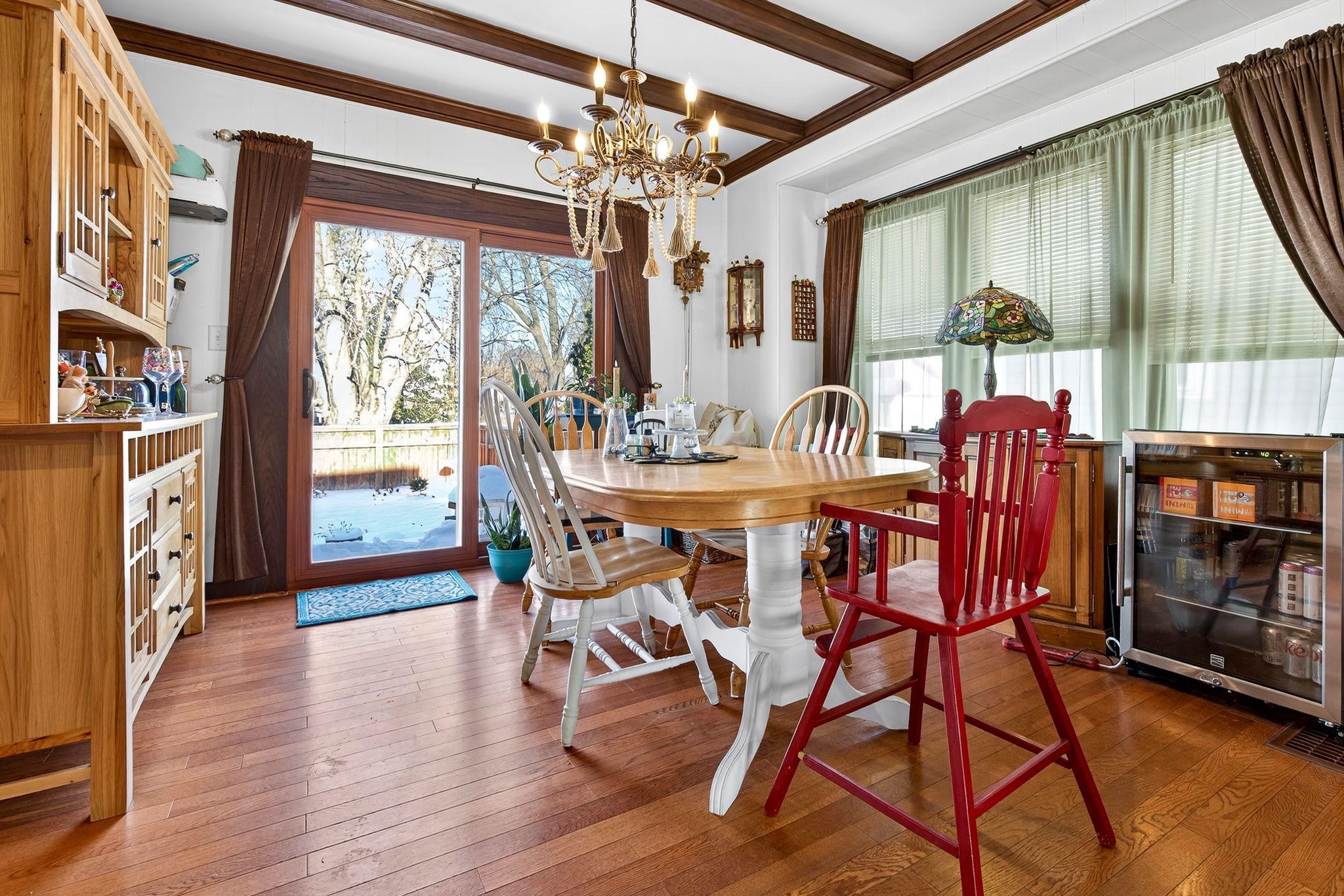 Fall in love with this beautiful 1.5-story home overflowing with charm and updates. The welcoming front porch leads to a home filled with standout features, including a stunning staircase, French doors, and wood ceiling beams in both the living room and formal dining room. The dining also features classic built-ins! Enjoy extra living space year-round in the enclosed porch. The stunning kitchen, remodeled in 2013, gives this home some serious style. The bathroom was updated in 2014, and an electrical upgrade was completed in 2013, offering peace of mind and convenience. A patio door leads to the fenced-in backyard, featuring a cedar fence and a beautiful stone patio. The property is rounded out by a 1.5-car detached garage. Come see it for yourself! Please allow 48 hrs binding acceptance.