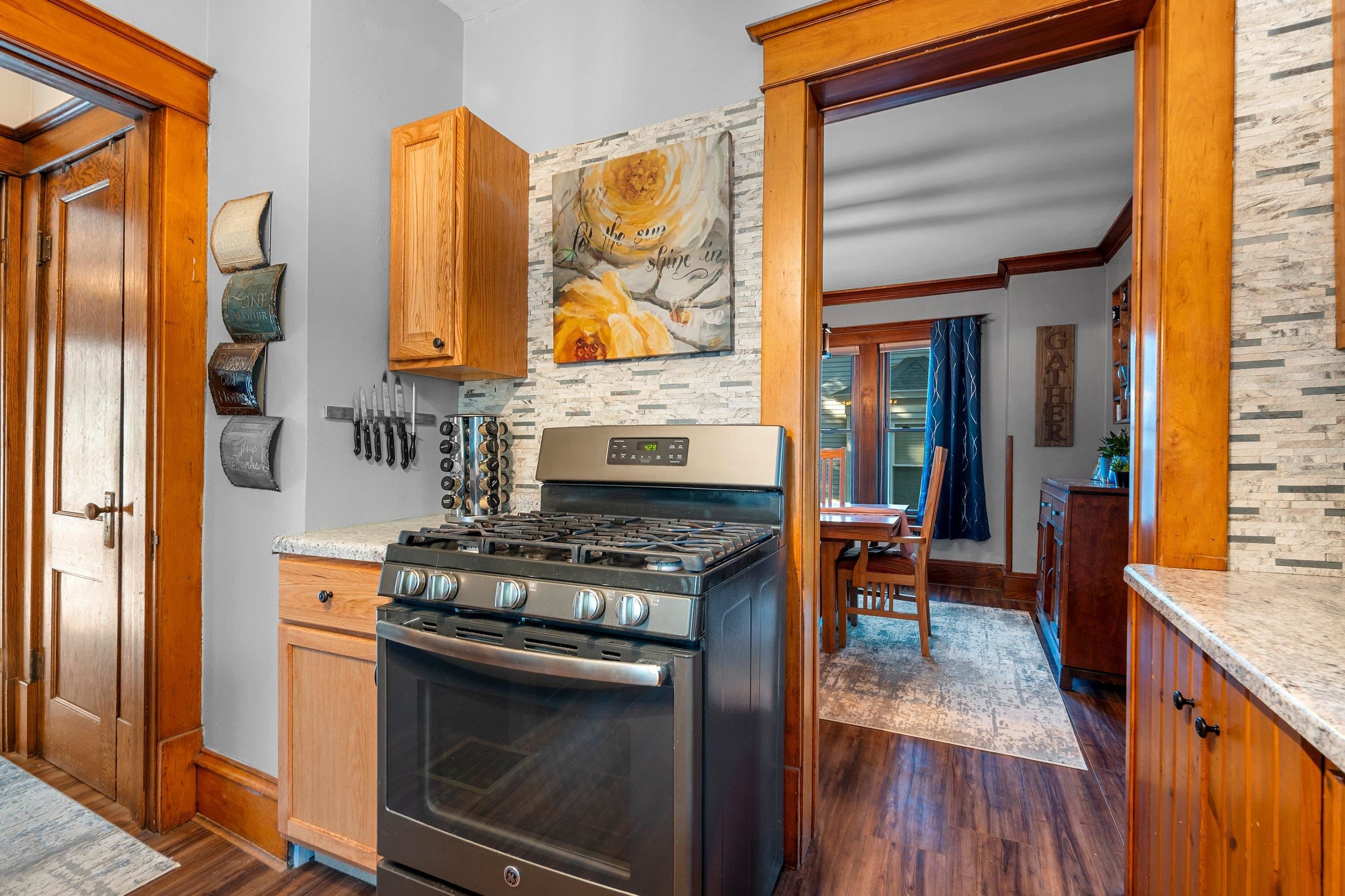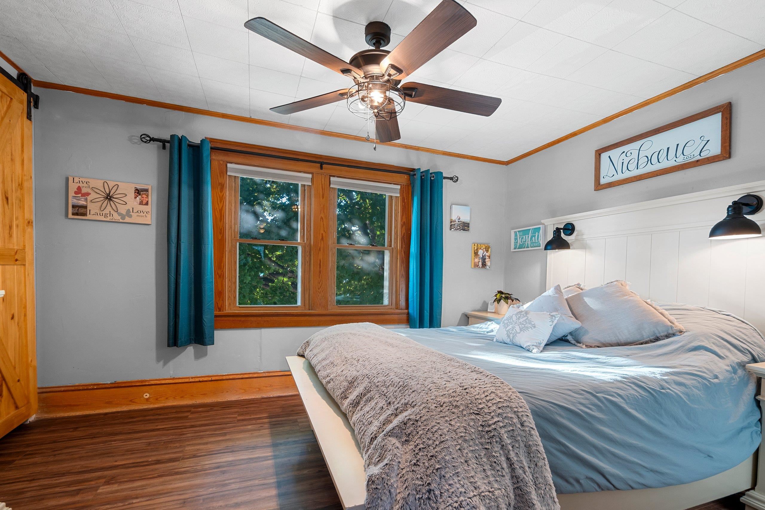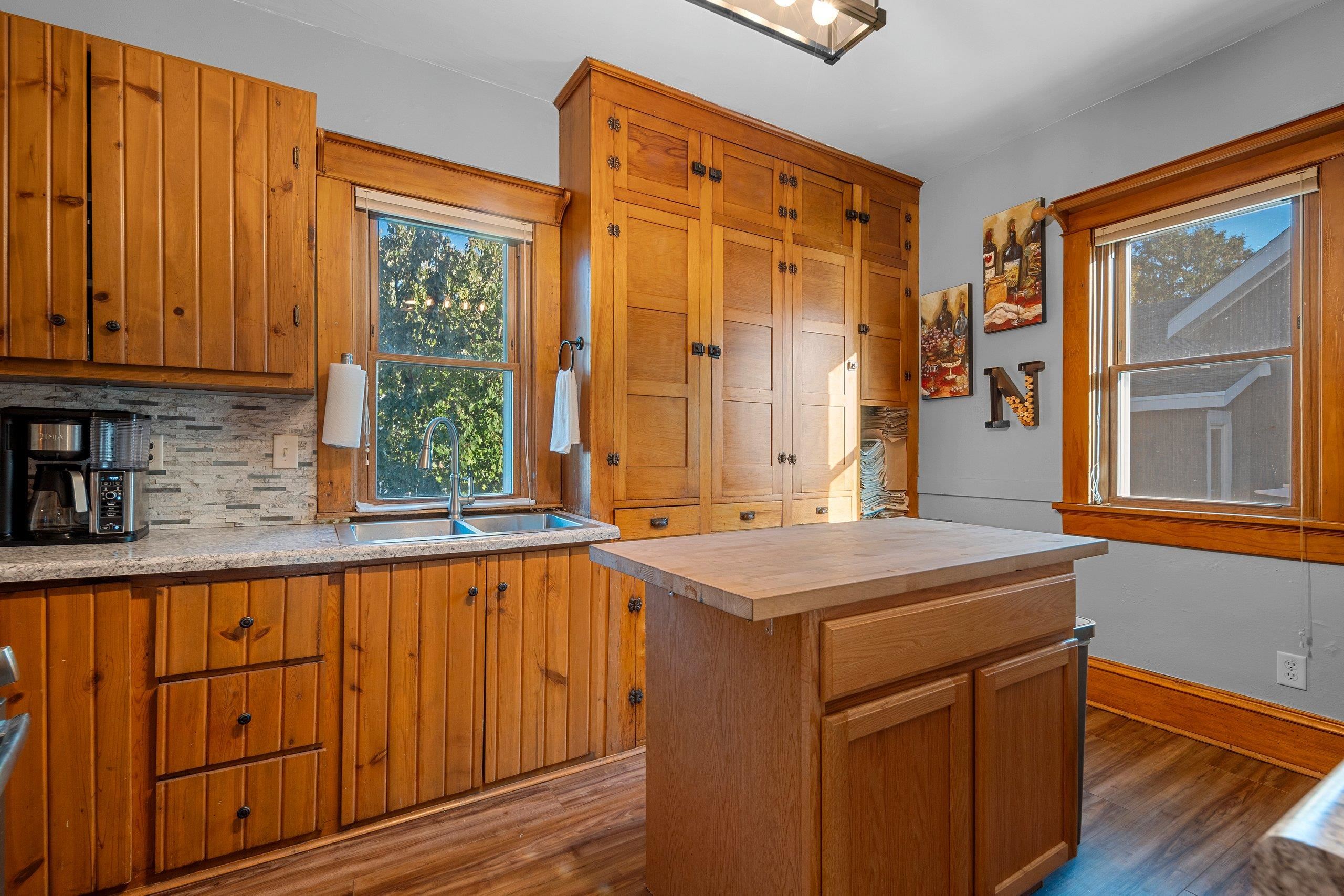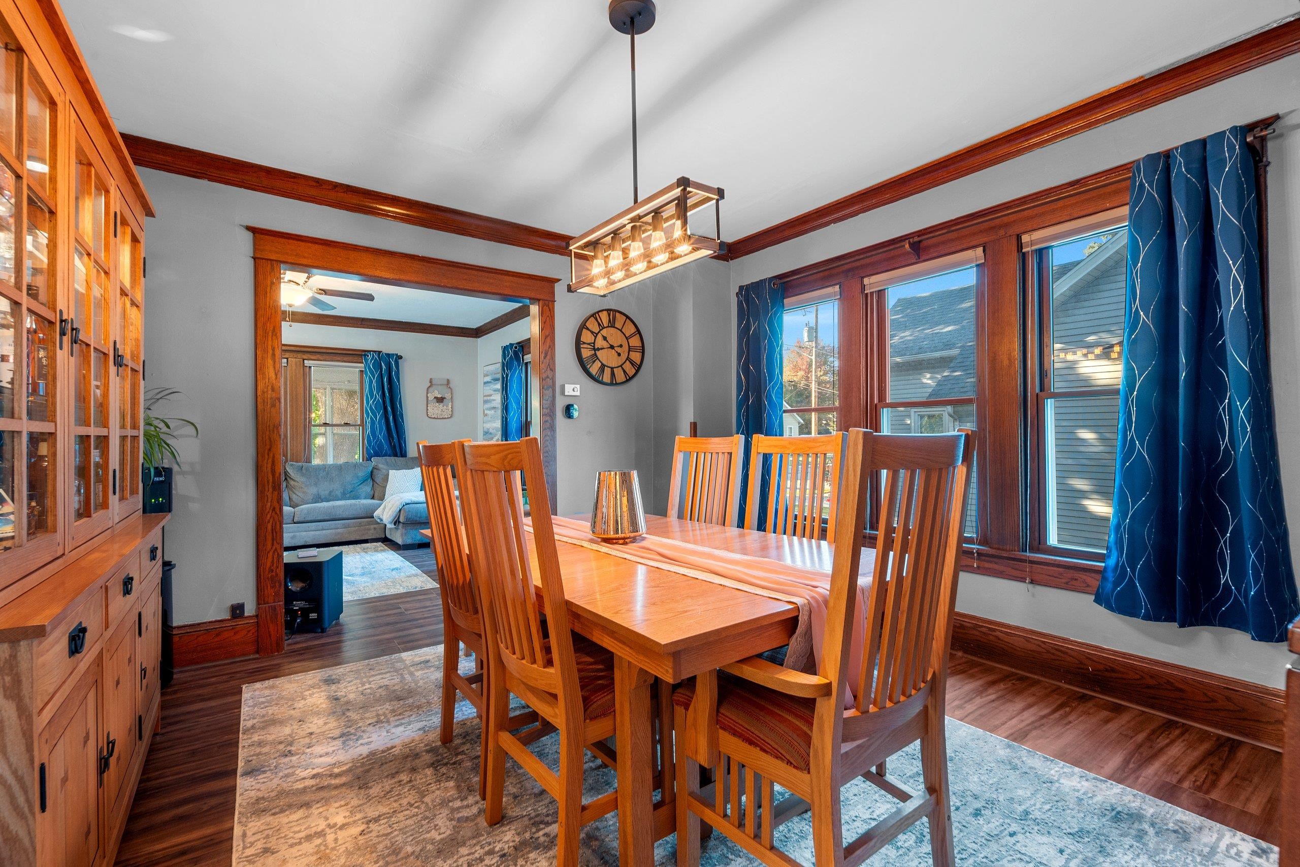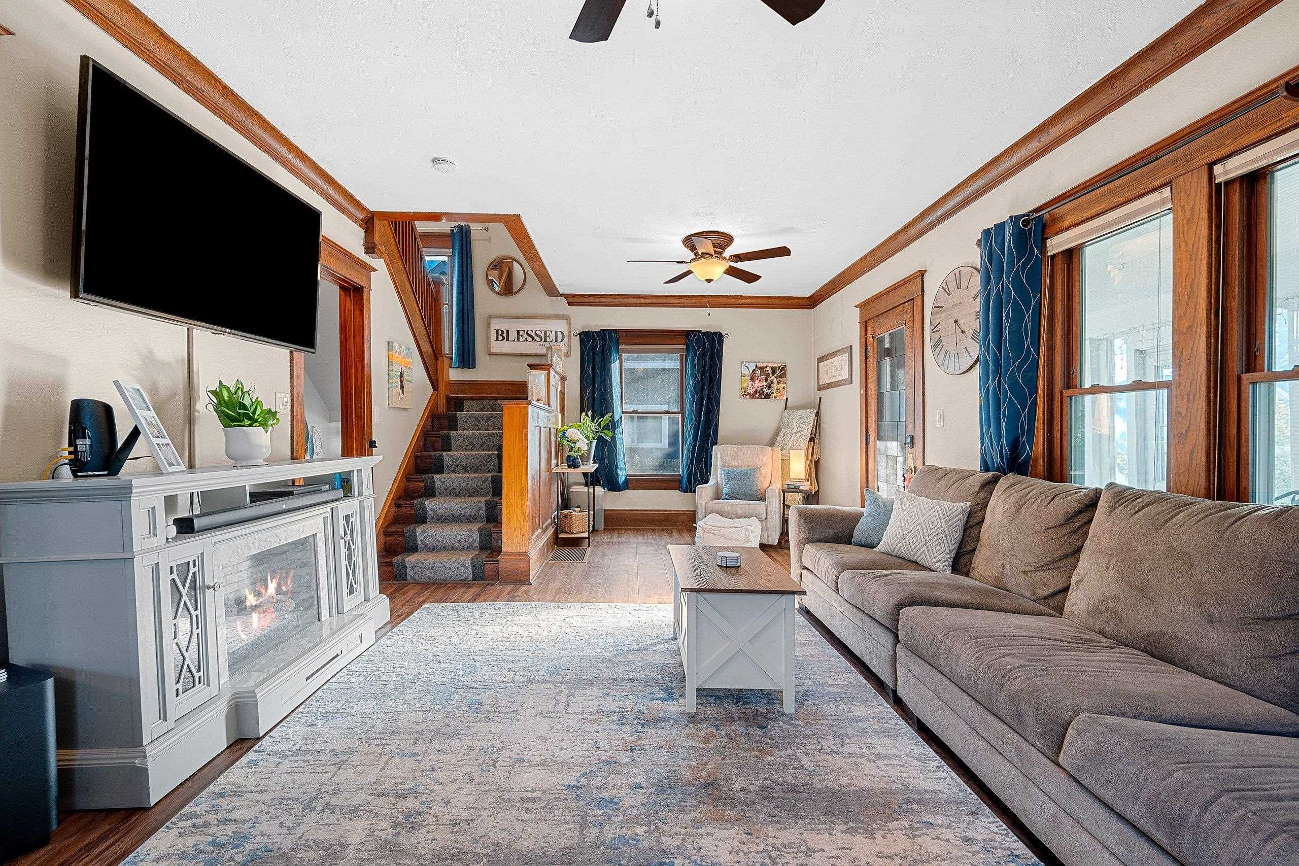 Charming Craftsman Home with Modern Updates! Beautifully maintained 3-bed, 1.5-bath, 1,748 sq ft and oversized 2.5-car garage. Upgrades include a new furnace, central A/C, and central humidifier in January of 2025, a new roof in 2017, and energy-efficient vinyl triple-pane windows. Enjoy the warmth of new walnut LVP flooring throughout both levels, with original hardwood preserved beneath. Updated kitchen with new countertops and sink, a butcherblock island, and original built-ins. Main floor laundry. Each bedroom boasts walk-in closets. The home retains its original charm with crown molding and switchback stairs. Relax in the cozy 4-seasons porch or entertain in the fenced backyard with raised garden beds, a patio, and wiring for hot tub. Showings start 10/17/25. 48 hr binding acceptance