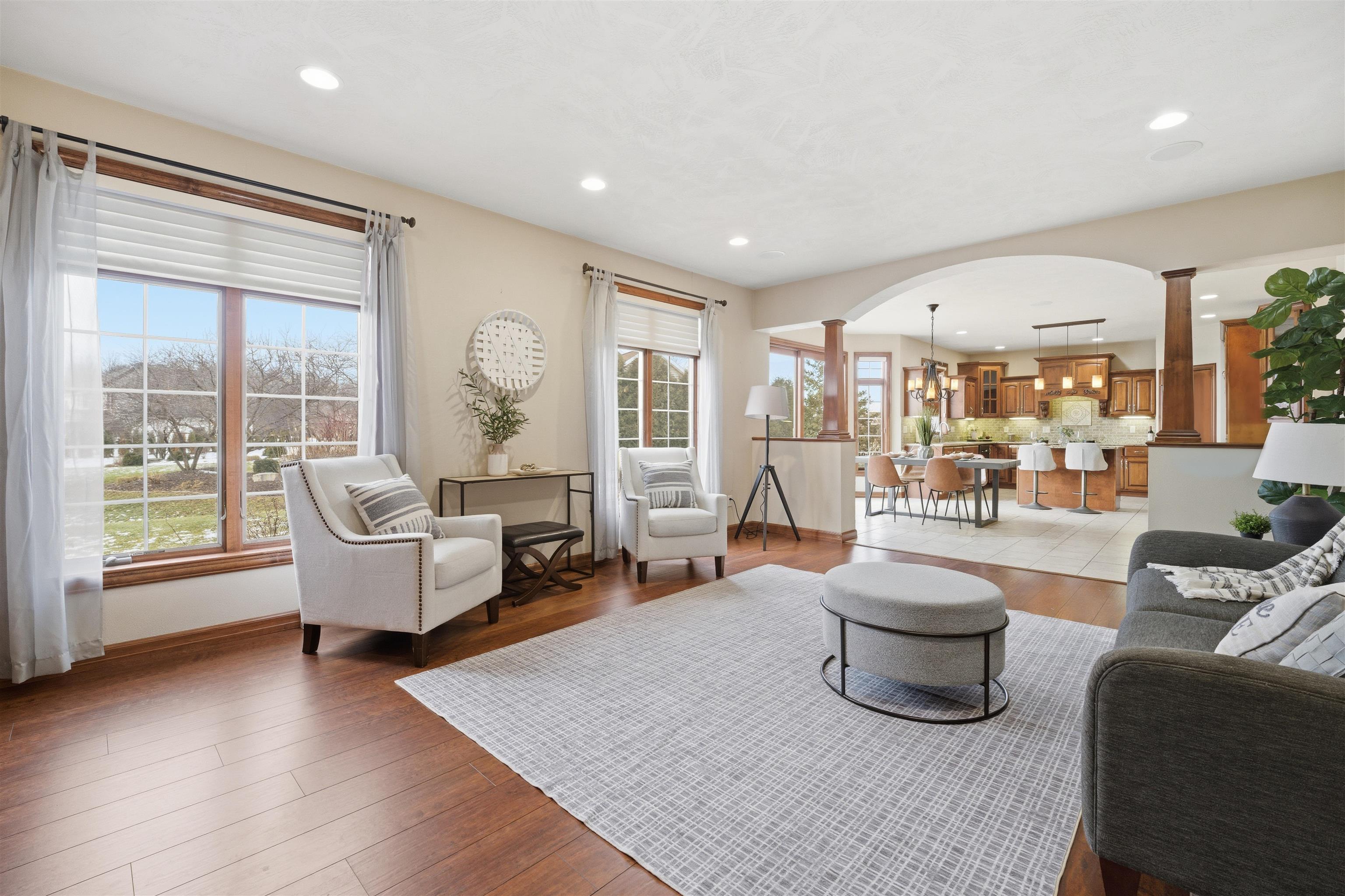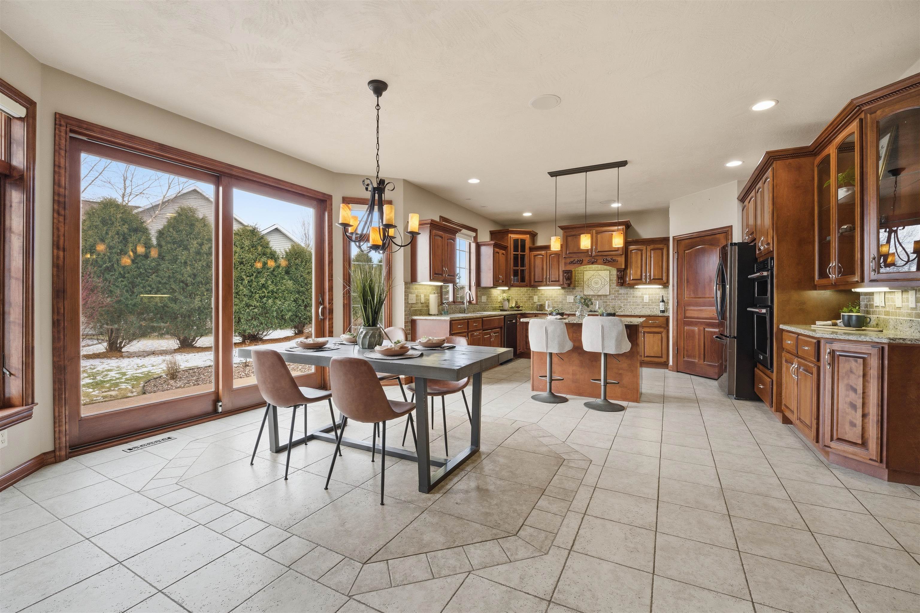 This stunning colonial home offers 4,120 sq ft of thoughtfully designed living space in a highly desirable location near Lake Butte Des Morts. The main level showcases a sophisticated blend of hardwood & tile flooring complemented by extensive custom trim & millwork. The kitchen is exceptionally appointed with custom cabinetry, walk-in pantry, granite countertops, & tile backsplash, opening to a bright dining area with expansive patio doors. The upper level features a generous primary suite with walk-in closet & private ensuite with jetted tub. A substantial bonus room with a gas fireplace creates an ideal space for flexible living. The finished lower level provides additional living space with a theater room or office, built-in cabinetry & full bath. Convenient location close to the lake!