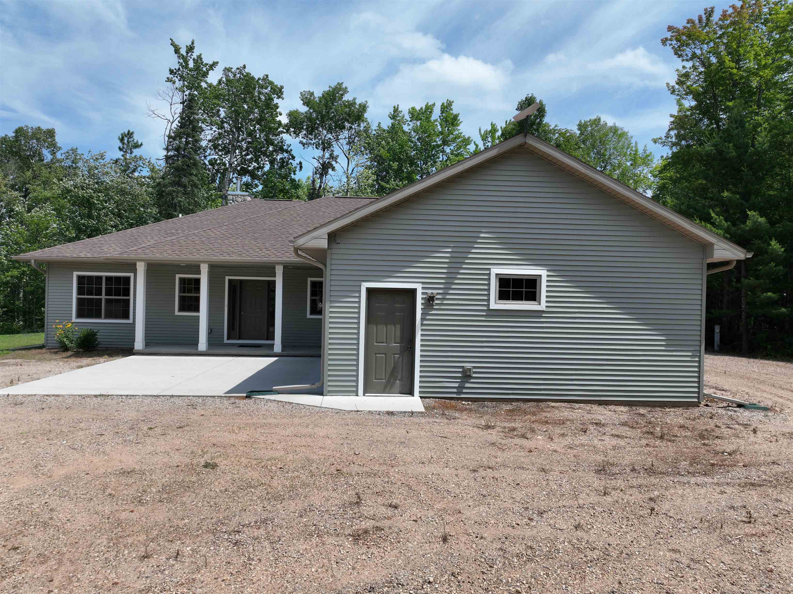 Like-new 3BR, 2.5BA ranch built in 2021 on 1.5 secluded acres near Pembine. 2,077 sq ft home down a private easement road w/ only one nearby neighbor and lots of wildlife. Open-concept layout, large windows, LP forced air & wood forced air heat. Private well & septic. Lightly used as a secondary residence—excellent condition. Home features spacious bedrooms, modern kitchen, main-floor laundry, and ample storage. Covered back patio. Ideal for year-round living or a weekend getaway. Enjoy privacy, quiet, and nature just minutes from trails, rivers, and woods. Attached garage adds convenience and storage space. Basement is stubbed for shower, toilet, and sinks.