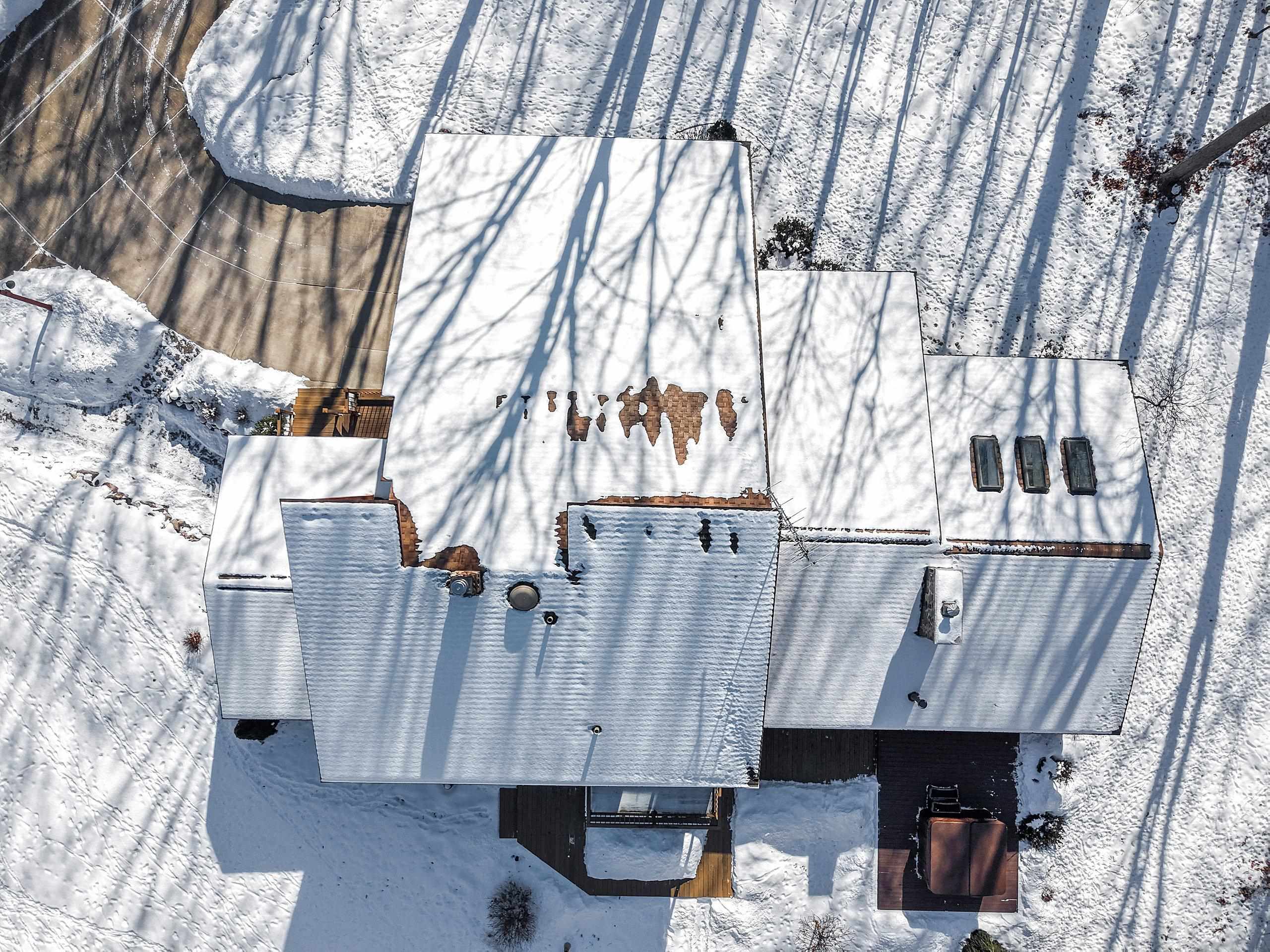 Secluded Wooded Retreat! Beautiful & meticulously cared for spacious home. Modern & upgraded amenities; architectural character and charm. Sought after private wooded location! 2 Outbuildings; lower is 30 X 50. Sits on almost 5 acres with water access and serene water views. Relax in the hot tub or by the fire pit and enjoy the magnitude of wildlife. Home offers fully renovated kitchen/dining with granite counter tops and ss appliances. 2 living rooms; wb fireplace. Sunroom with in-floor heat and panoramic sunset views. Mother-in-law suite on main level with heated floors. Optional 3 bedrooms upstairs including Master which features vaulted ceilings, walk in tile shower and walk-in closet. Walkout basement with ample storage. Close to New Zoo, Reforestation Camp and more. A must-see!