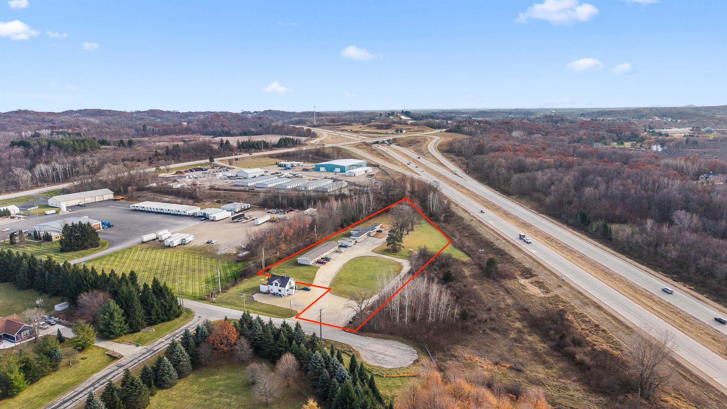 This commercial property features a 12-unit motel and apartment complex with private 3-bedroom living quarters on three acres of prime real estate. Located along US Hwy 41 with impressive daily traffic counts of 36,000 vehicles, this investment opportunity sits just 20 minutes north of Milwaukee. The B-1 zoning opens doors to numerous commercial possibilities. The level terrain and strategic highway frontage make this an ideal location for hospitality or mixed-use development. Nearby attractions include Big Cedar Lake, Little Switzerland Ski Resort, and Slinger Speedway that draw visitors year-round. Whether you're seeking rental income from the existing units or planning a complete commercial transformation, this property offers flexibility and growth potential in a thriving corridor.