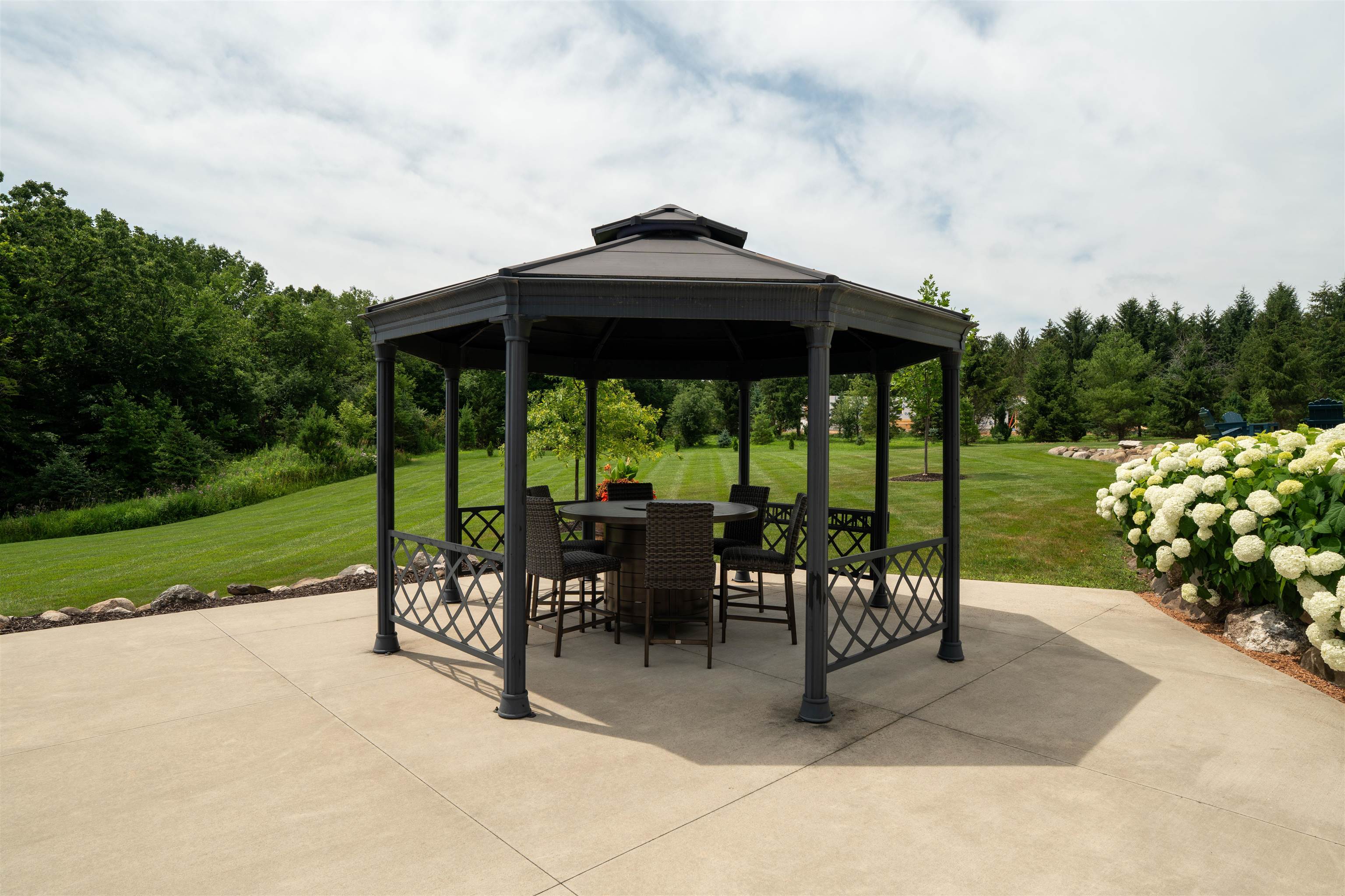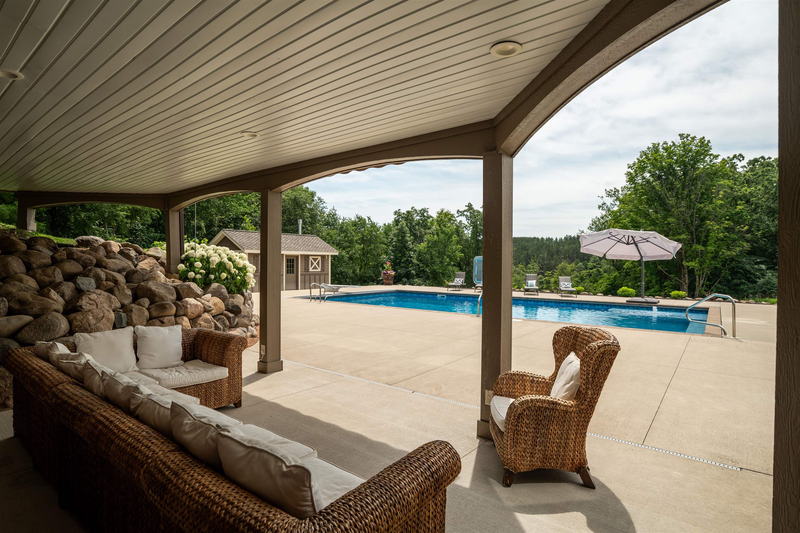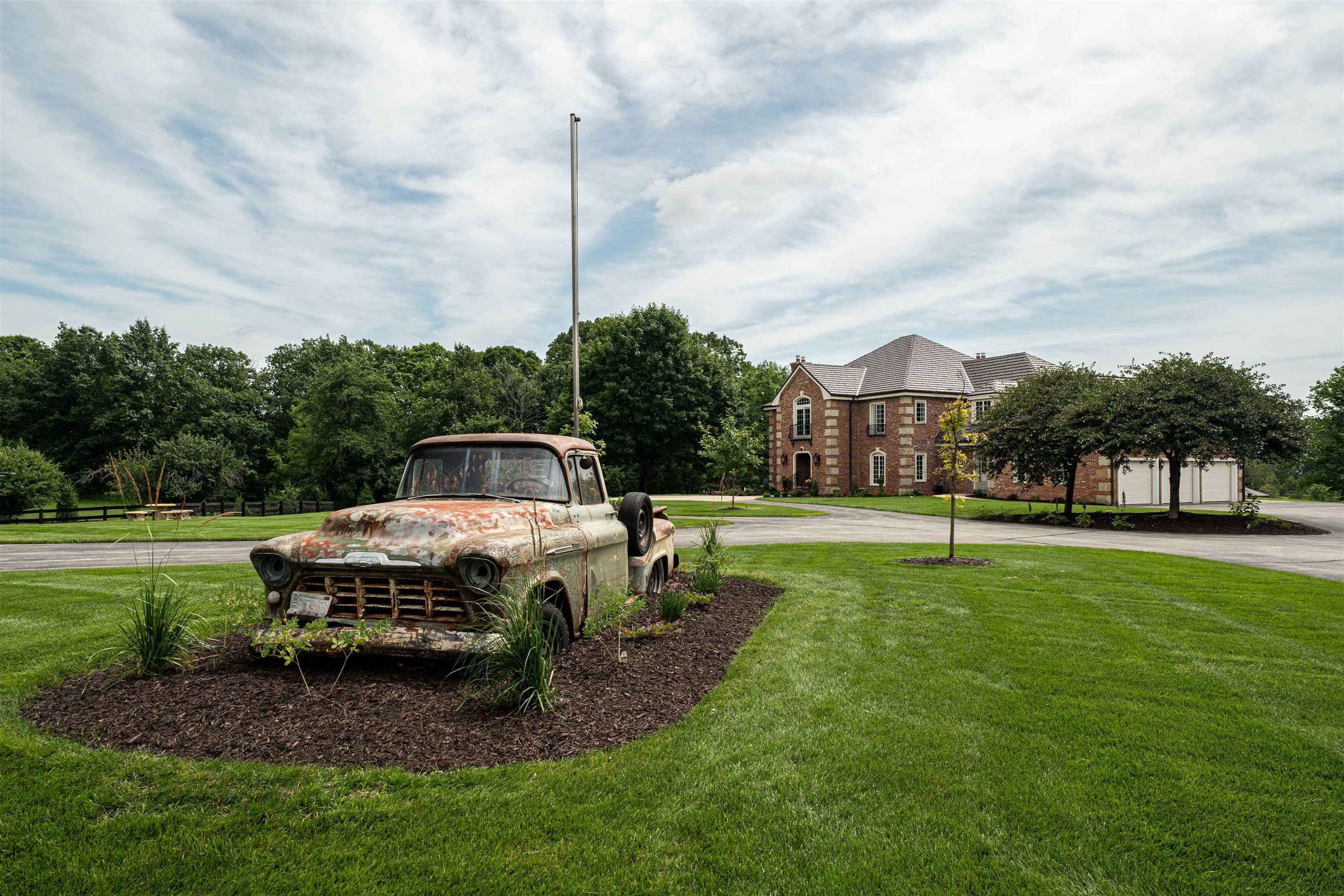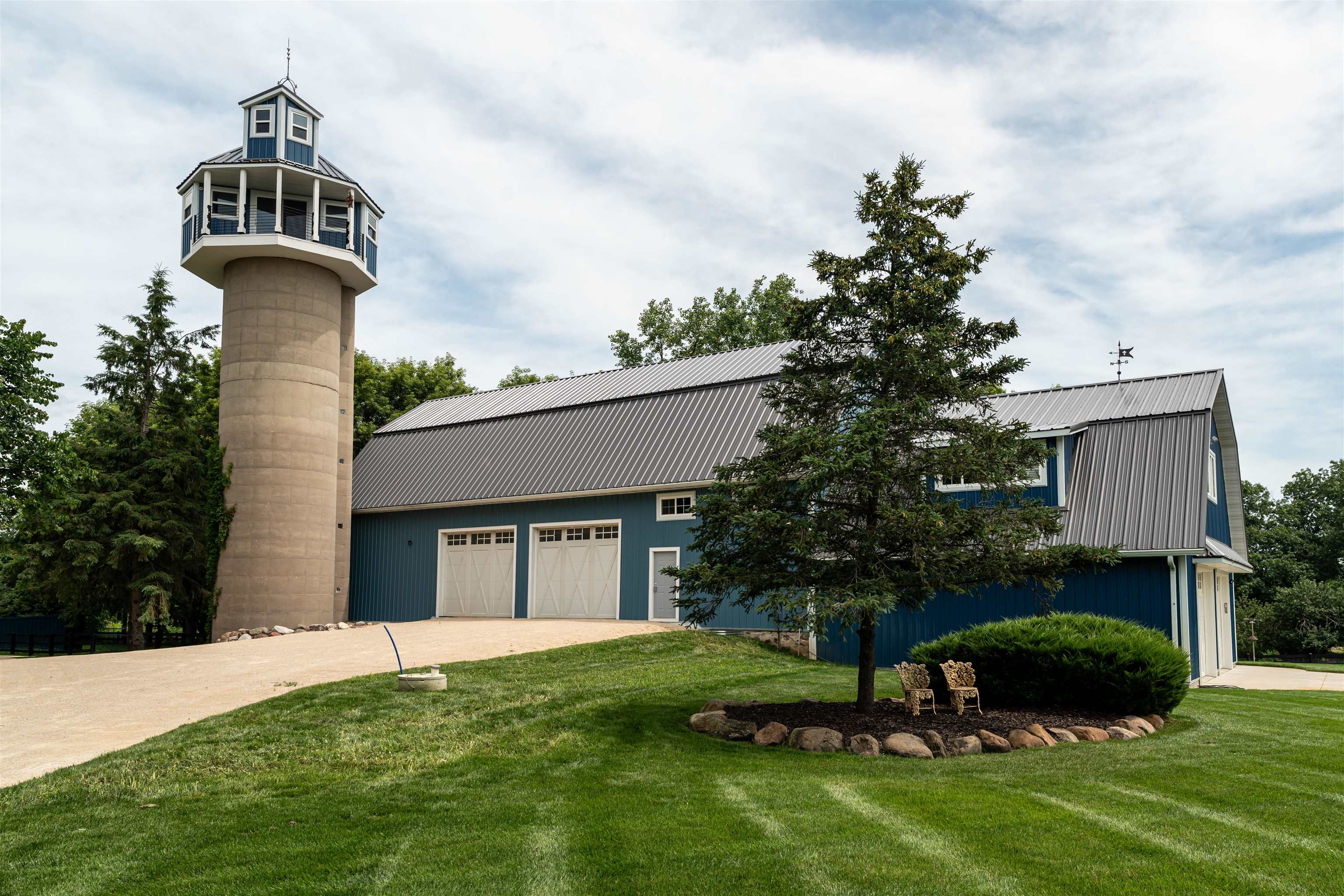 Experience luxury country living in this exceptional estate located in the Slinger School District. Behind a gated fence, this remarkable property offers 7 bedrooms and 7.5 baths with a sophisticated 5-zone heating and cooling system for year-round comfort. Outdoors, enjoy a resort-style heated salt water pool, a beautifully maintained garden supported by an 18-zone sprinkler system, 3 stalls and open pasture with automatic waterers—perfect for hobby farming or animals. A charming guest house provides private accommodations for visitors, while all-metal roofs ensure long-term durability and low maintenance. With a 6-stall garage and space to spread out, this estate blends elegance with function. Seller relocating—rare opportunity to own a premier property of this caliber.