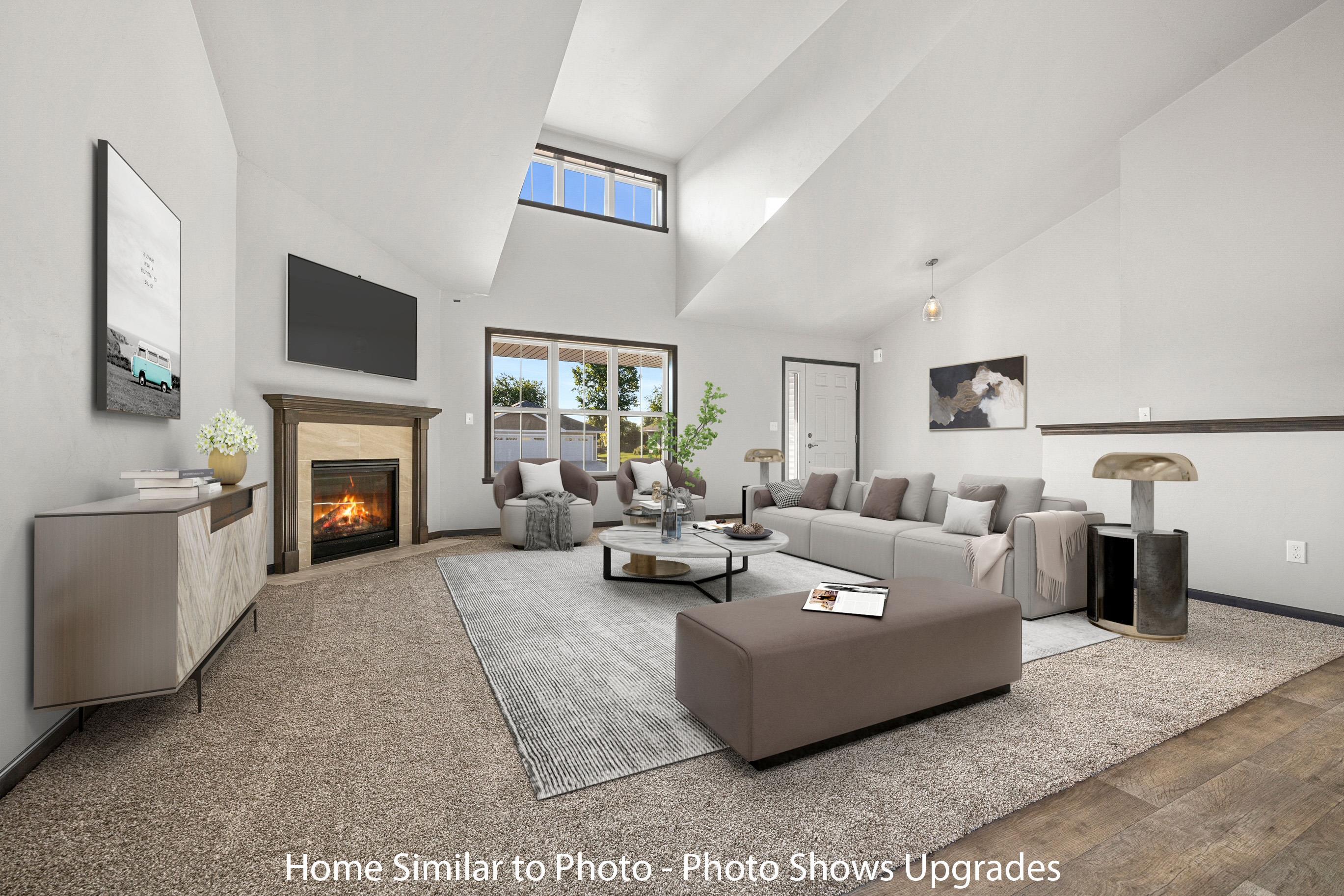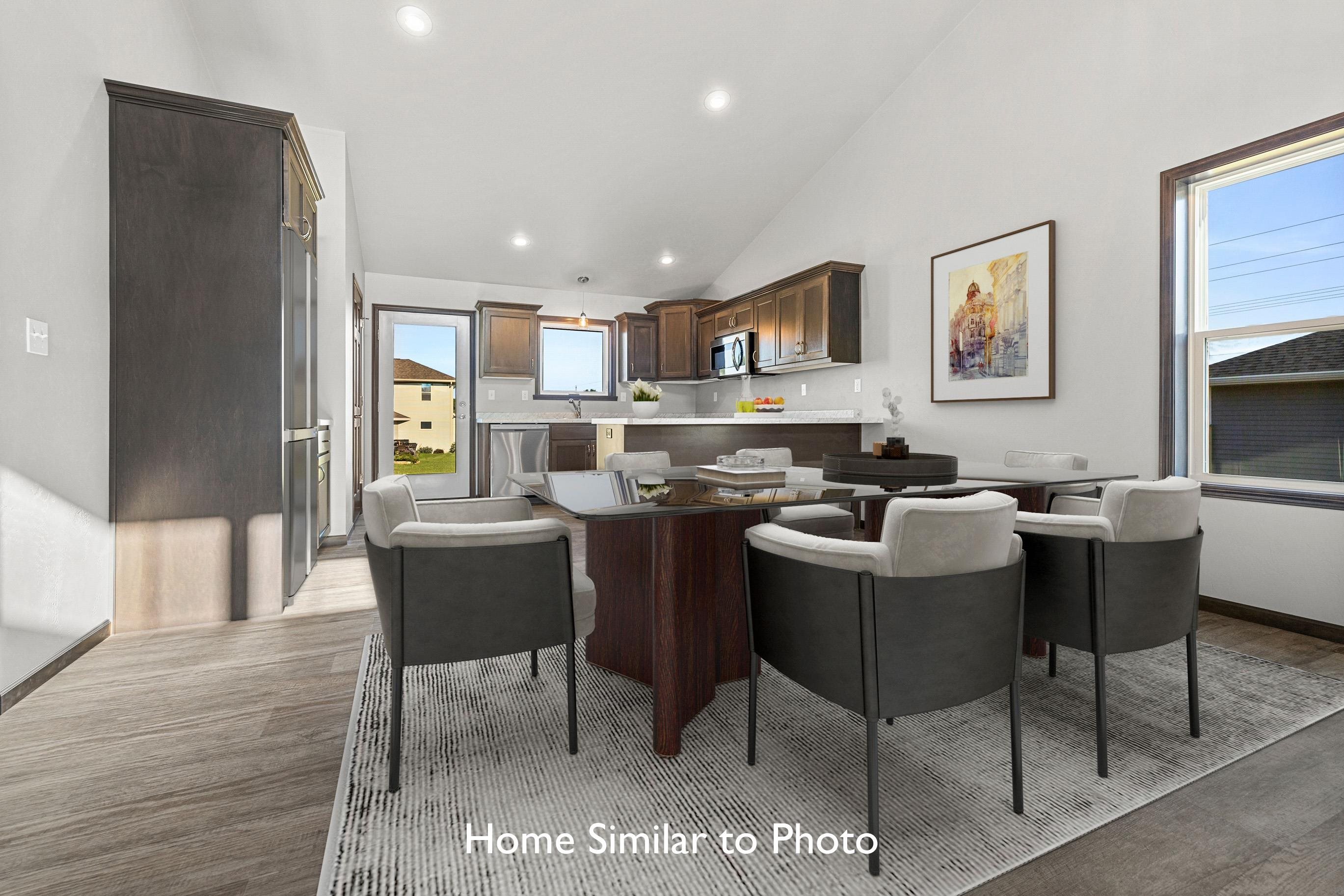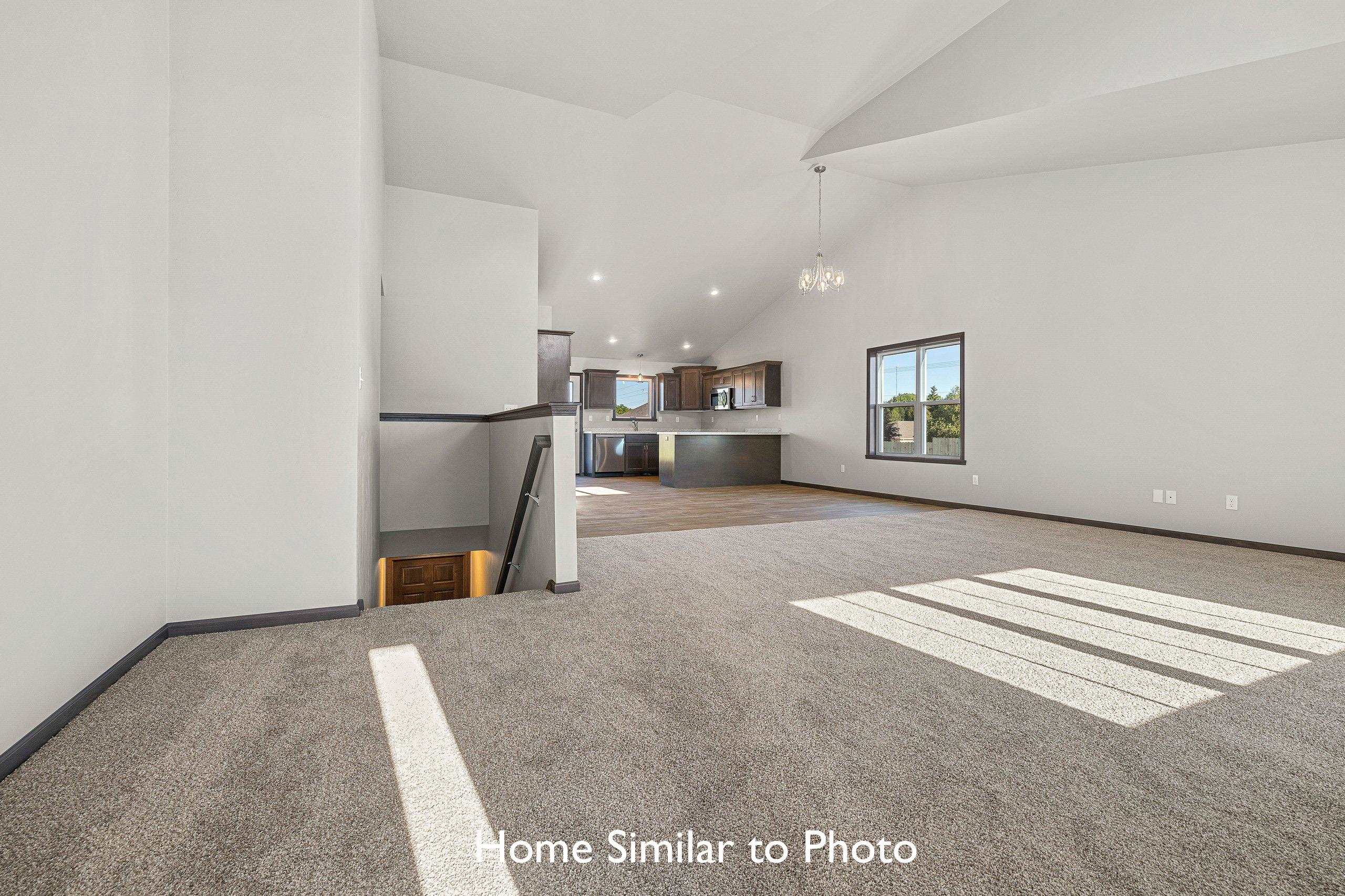 Beautiful new construction offering 1,581sf in the Crest Estates subdivision. This ranch style home features 3 beds, 2 baths, a dormer window, & an attached 2-stall garage. Inviting entry to living room featuring cathedral ceilings & corner gas fireplace. The kitchen features custom maple cabinets, a pantry, & SS dishwasher & microwave. Master bedroom features a step tray ceiling, private bath w/walk-in shower, & walk-in closet. Convenient 1st-floor laundry room. Full basement w/exposure & plumbed for future bath. Exterior features a covered front porch w/porch posts, horizontal vinyl siding, a dormer, stone per plan, & shakes in roof peak. Main photo is computer generated. Photos are similar but may not be exact. Virtual staging in photos.