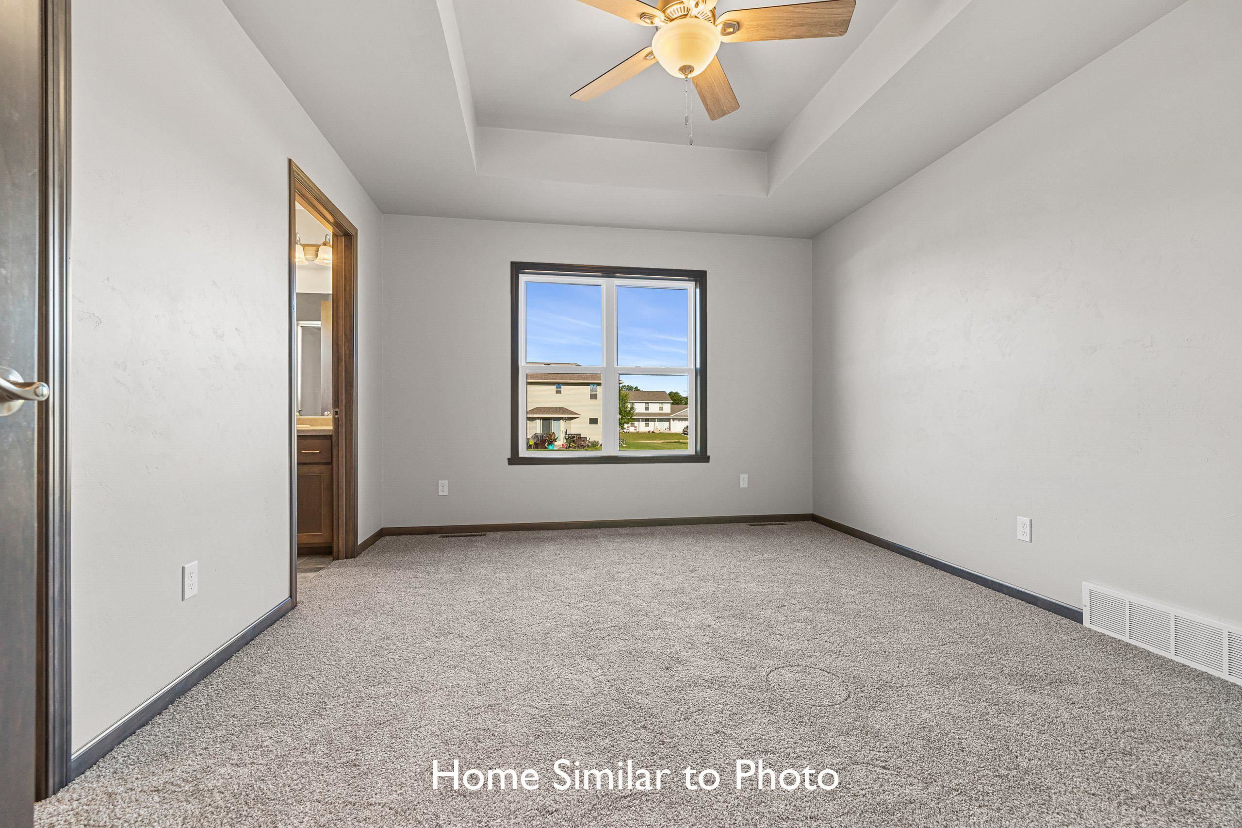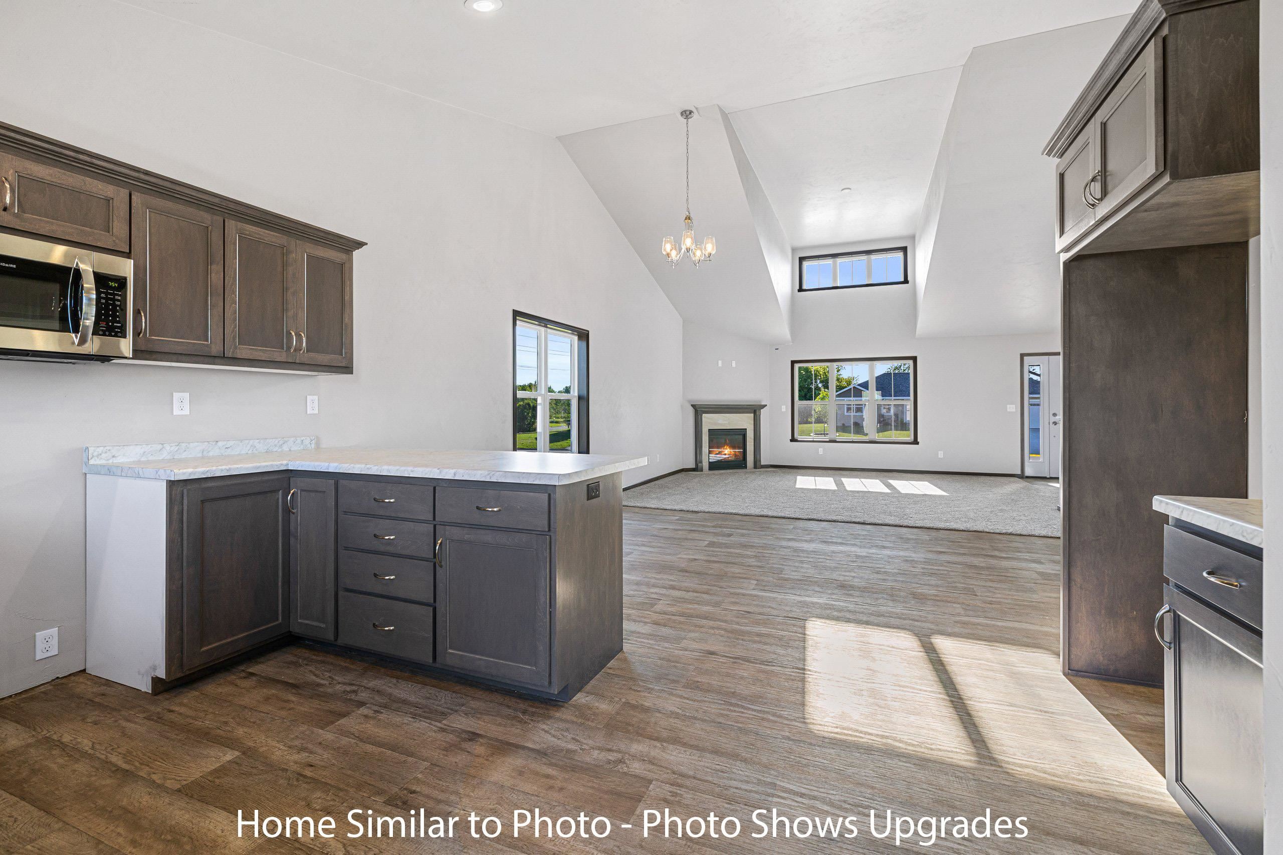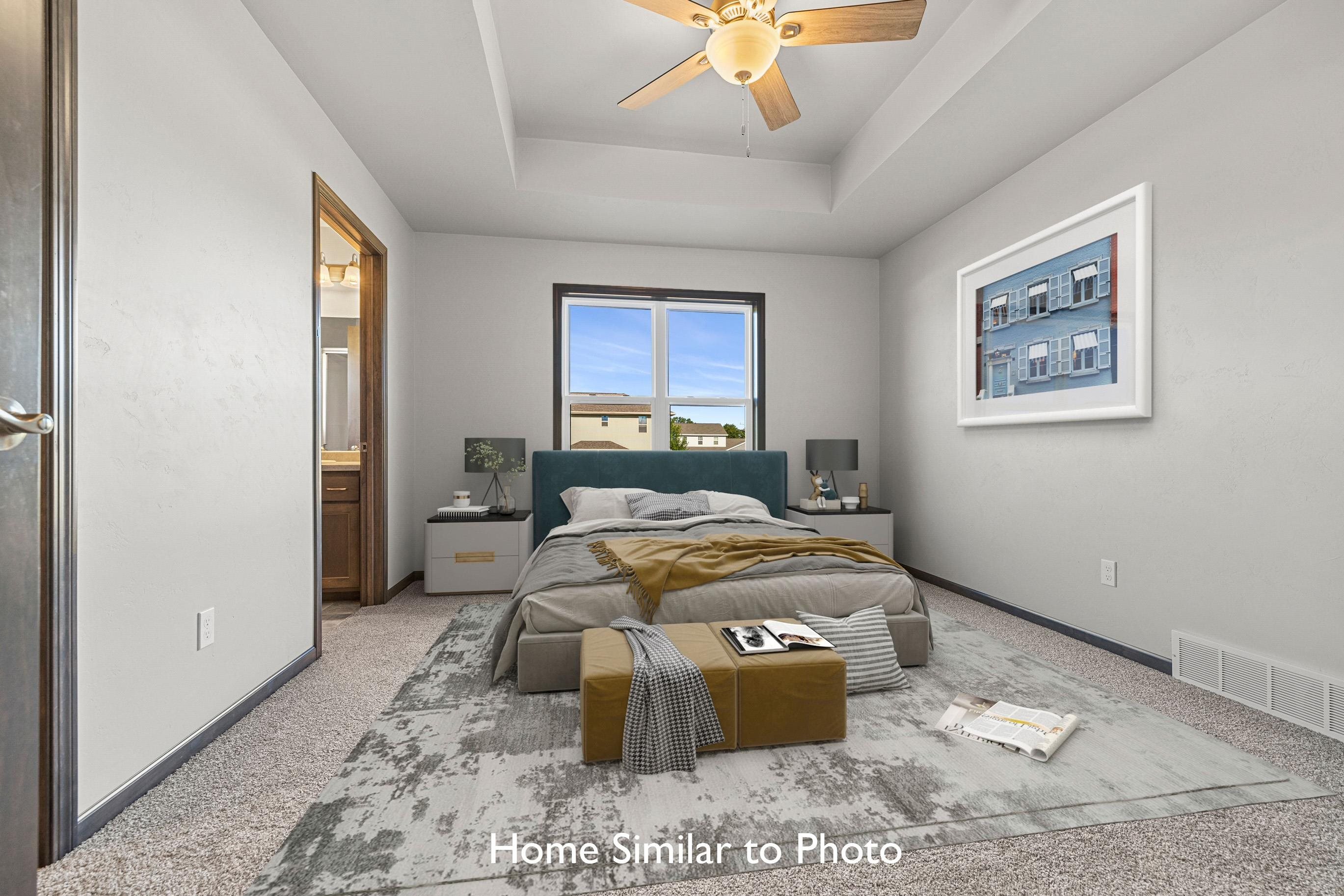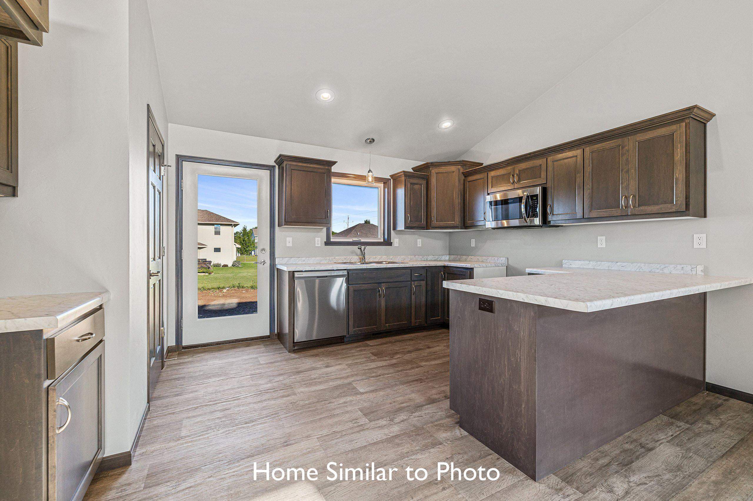 Beautiful new construction offering 1,581sf in the Crest Estates subdivision. This ranch style home features 3 beds, 2 baths, a dormer window, & an attached 2-stall garage. Inviting entry to living room featuring cathedral ceilings & corner gas fireplace. The kitchen features custom maple cabinets, a pantry, & SS dishwasher & microwave. Master bedroom features a step tray ceiling, private bath w/walk-in shower, & walk-in closet. Convenient 1st-floor laundry room. Full basement w/exposure & plumbed for future bath. Exterior features a covered front porch w/porch posts, horizontal vinyl siding, a dormer, stone per plan, & shakes in roof peak. Main photo is computer generated. Photos are similar but may not be exact. Virtual staging in photos.
