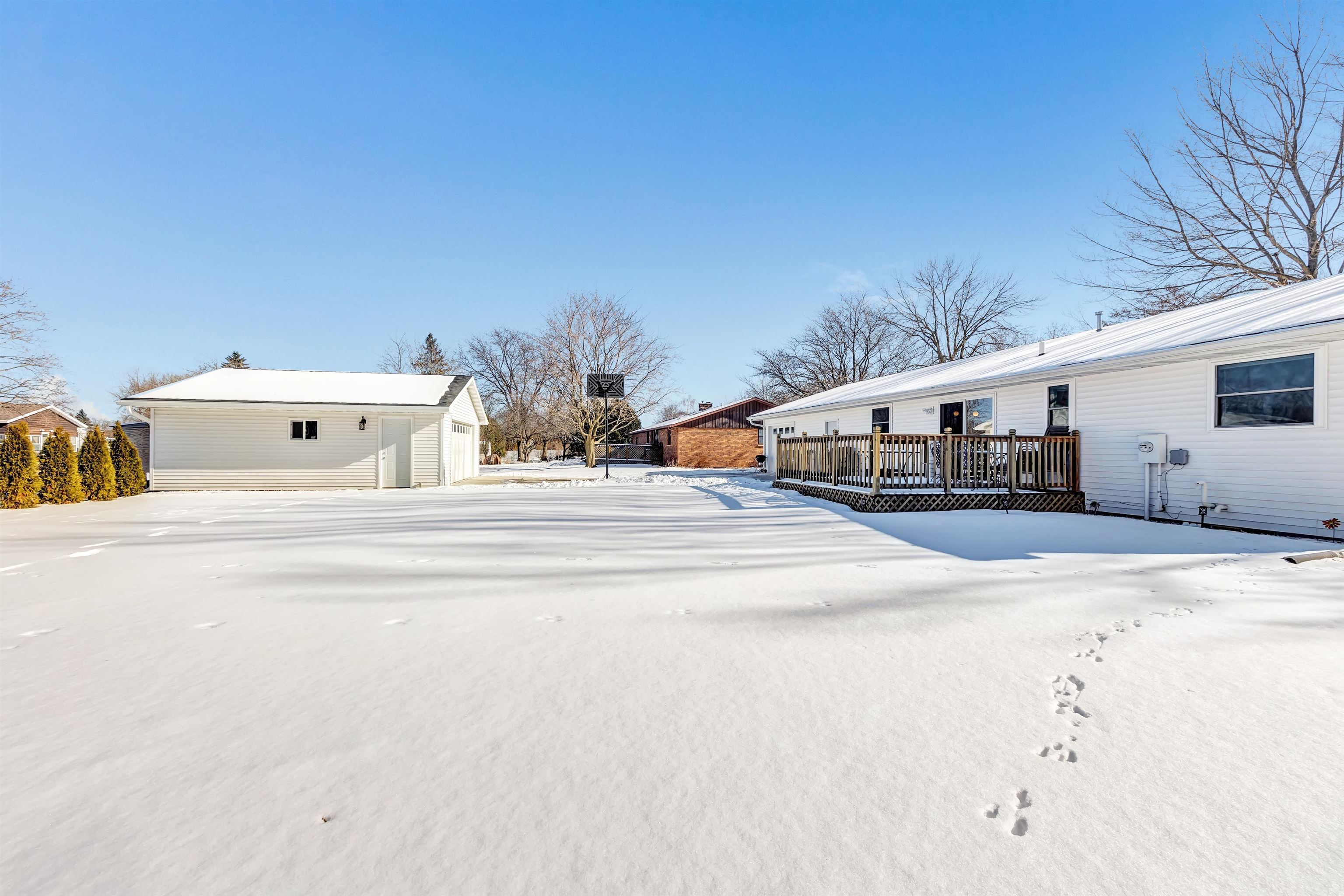 Welcome home to this well-maintained 3-bedroom, 2-bath ranch offering comfortable living and functional space throughout. The bright living room features large windows and neutral finishes. The kitchen provides ample cabinet space, an island, and a convenient dining area with access to the deck. The primary bedroom includes generous closet space, while two additional bedrooms offer flexibility for work, guests, or hobbies. Enjoy the finished lower-level family room for extra living space. An attached multi-stall garage provides plenty of room for vehicles, storage, and projects. Please allow 48 hours for Binding. Showings to begin Saturday Feb. 7. Concrete basement walls in the livingroom and bathroom are painted.