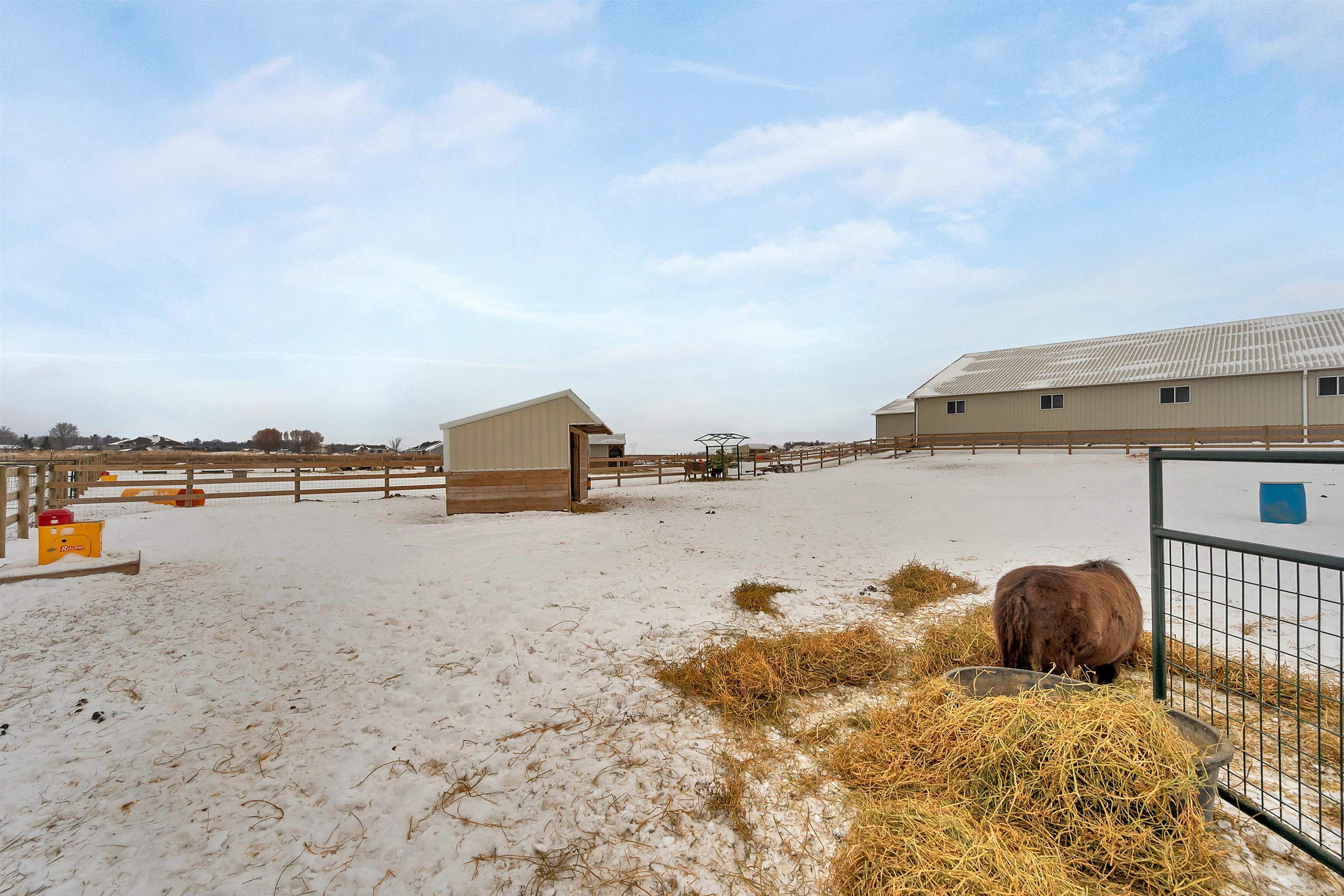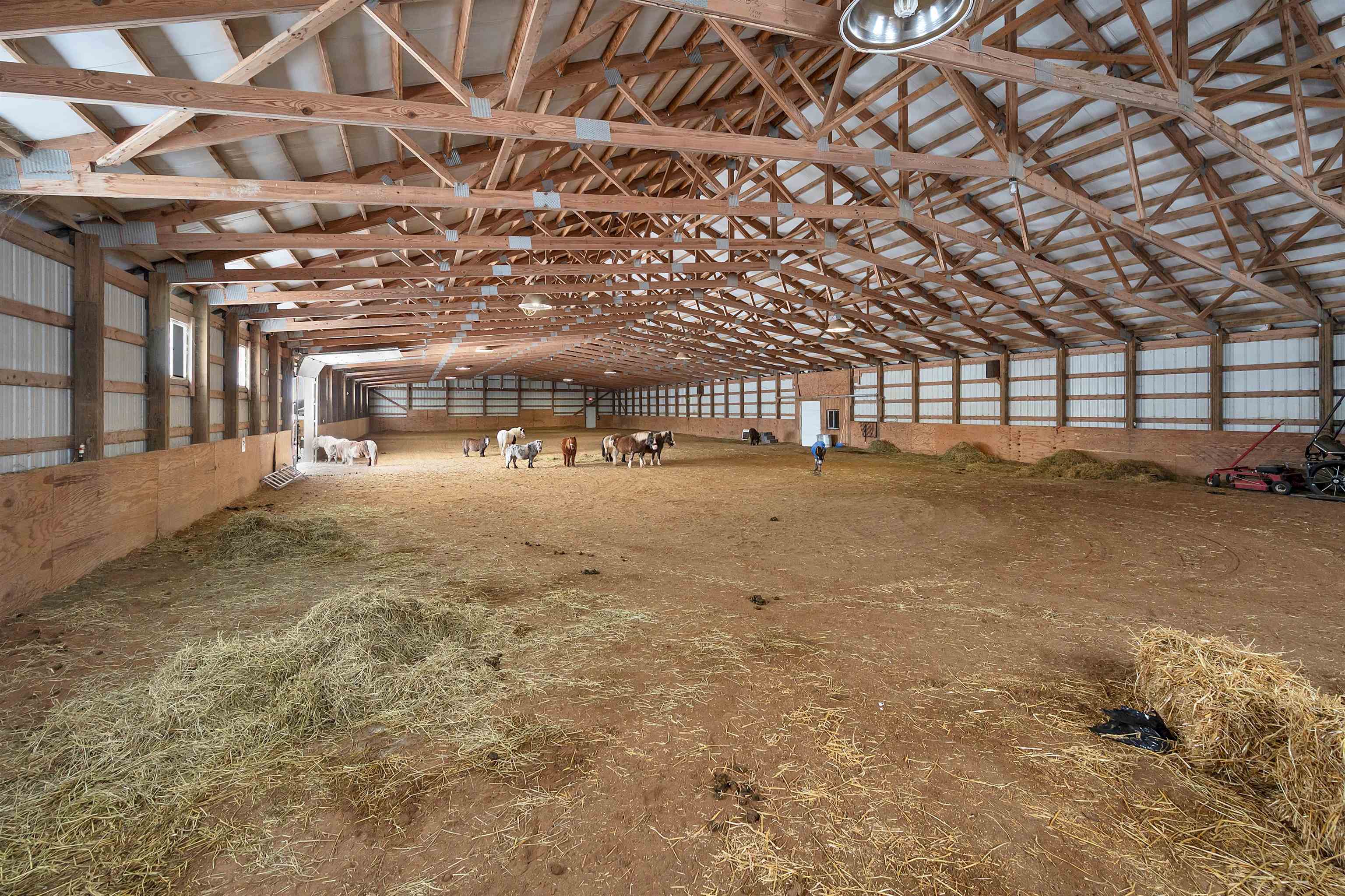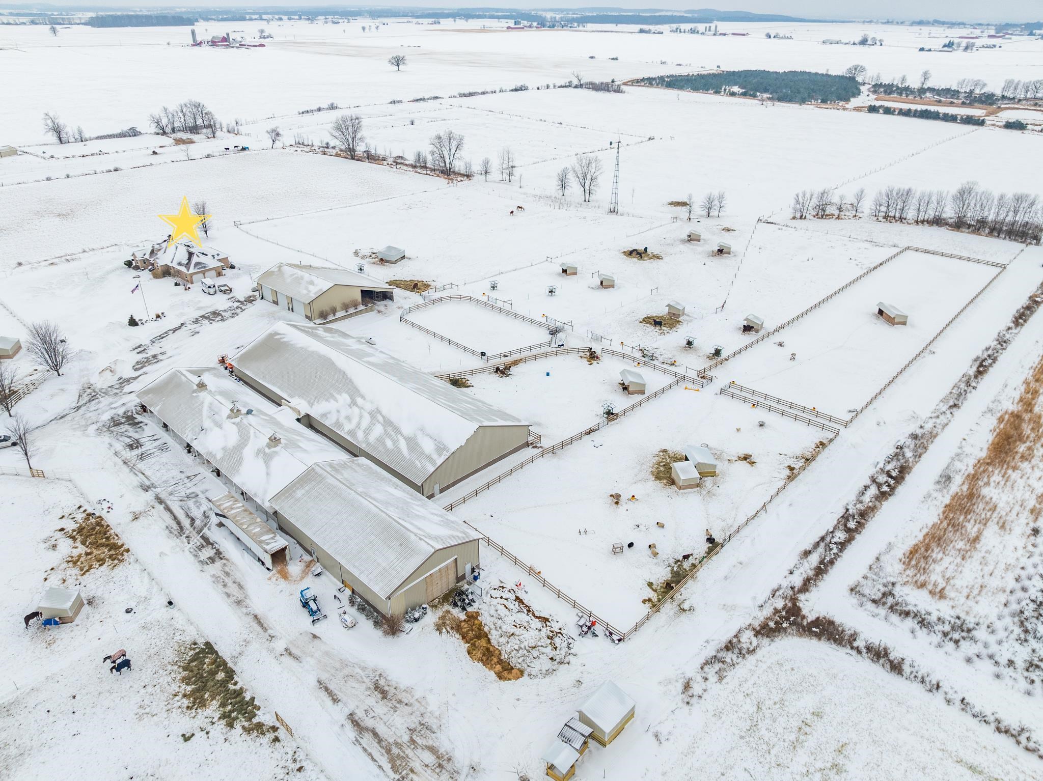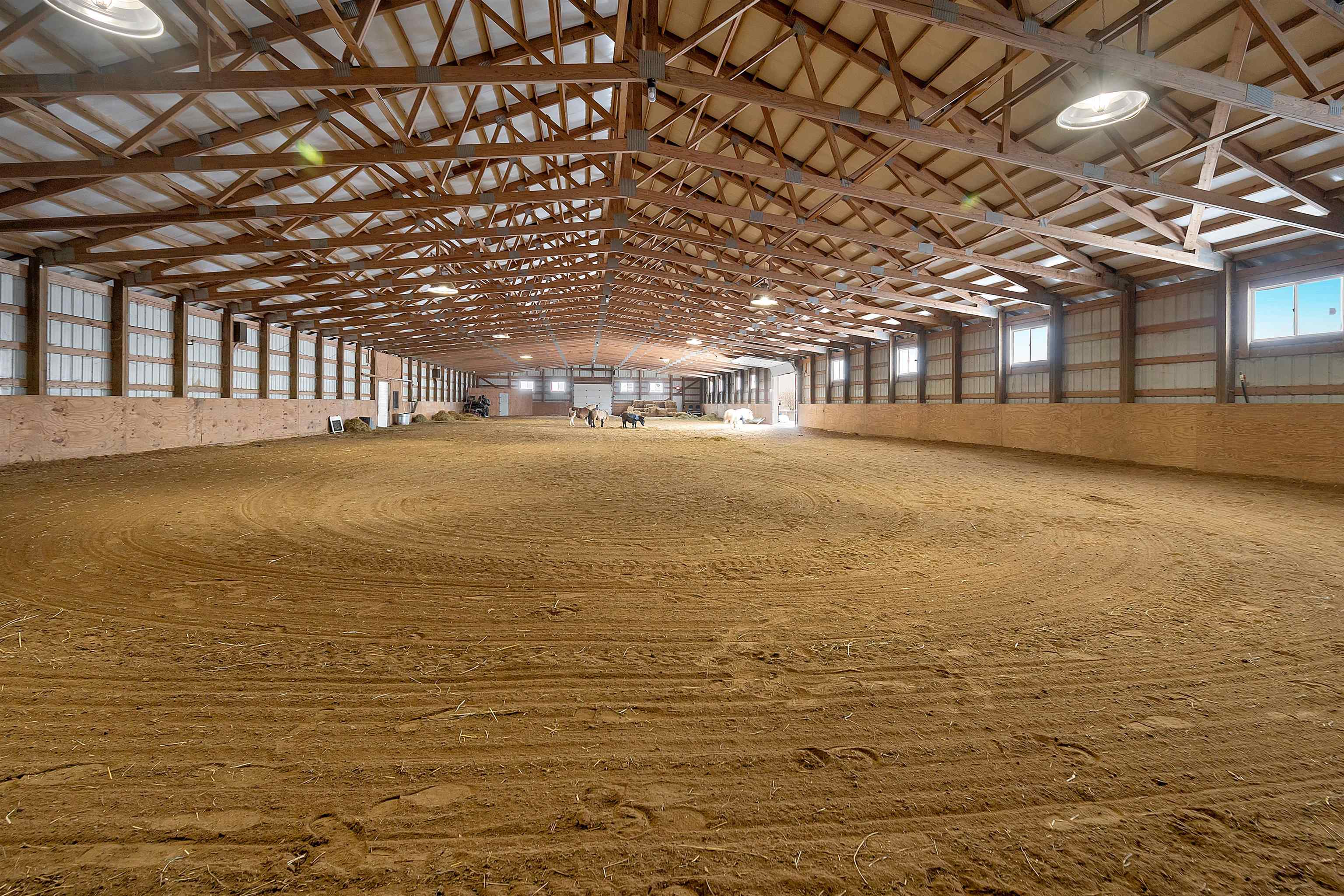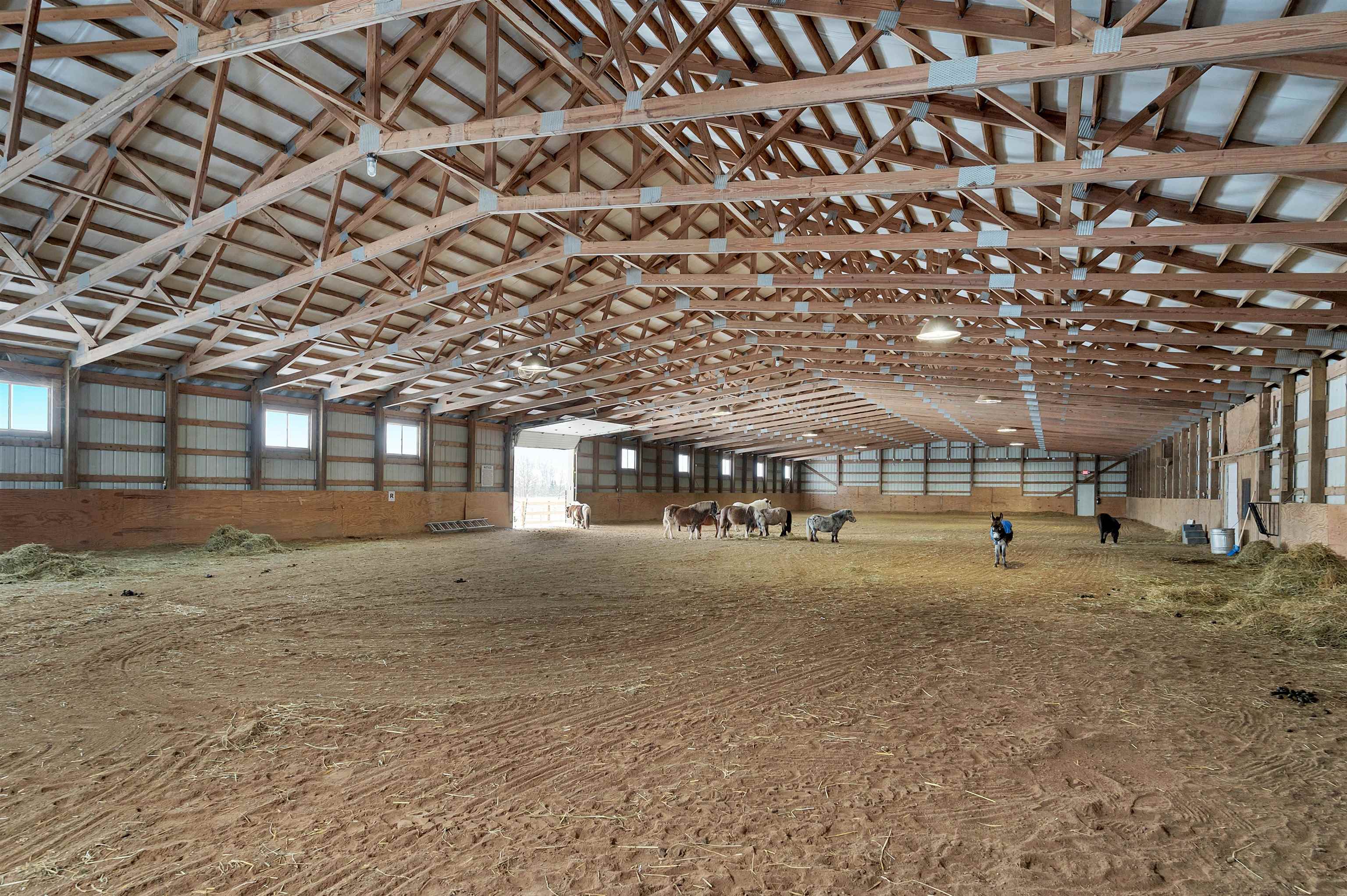 Potential $300,000 revenue-generating horse facility with rental stalls and a home situated on 40 acres! Over $570,000 of improvements have been made, making this an amazing business opportunity for horse enthusiasts, trainers, or boarding operations. This exceptional property includes a 31-stall barn with an indoor riding arena, tack room, bathroom, laundry room, in floor radiant heat, and plenty of space for equipment. Pastures have new winter waterers. An additional hay barn, full of hay, is included. The ranch-style 3 bedroom home offers an open-concept layout with vaulted ceilings and a walkout basement, providing comfortable living or great rental opportunity. Carpet on the stairs will be replaced. See additional documents for cash flow analysis, improvements, and included equipment.