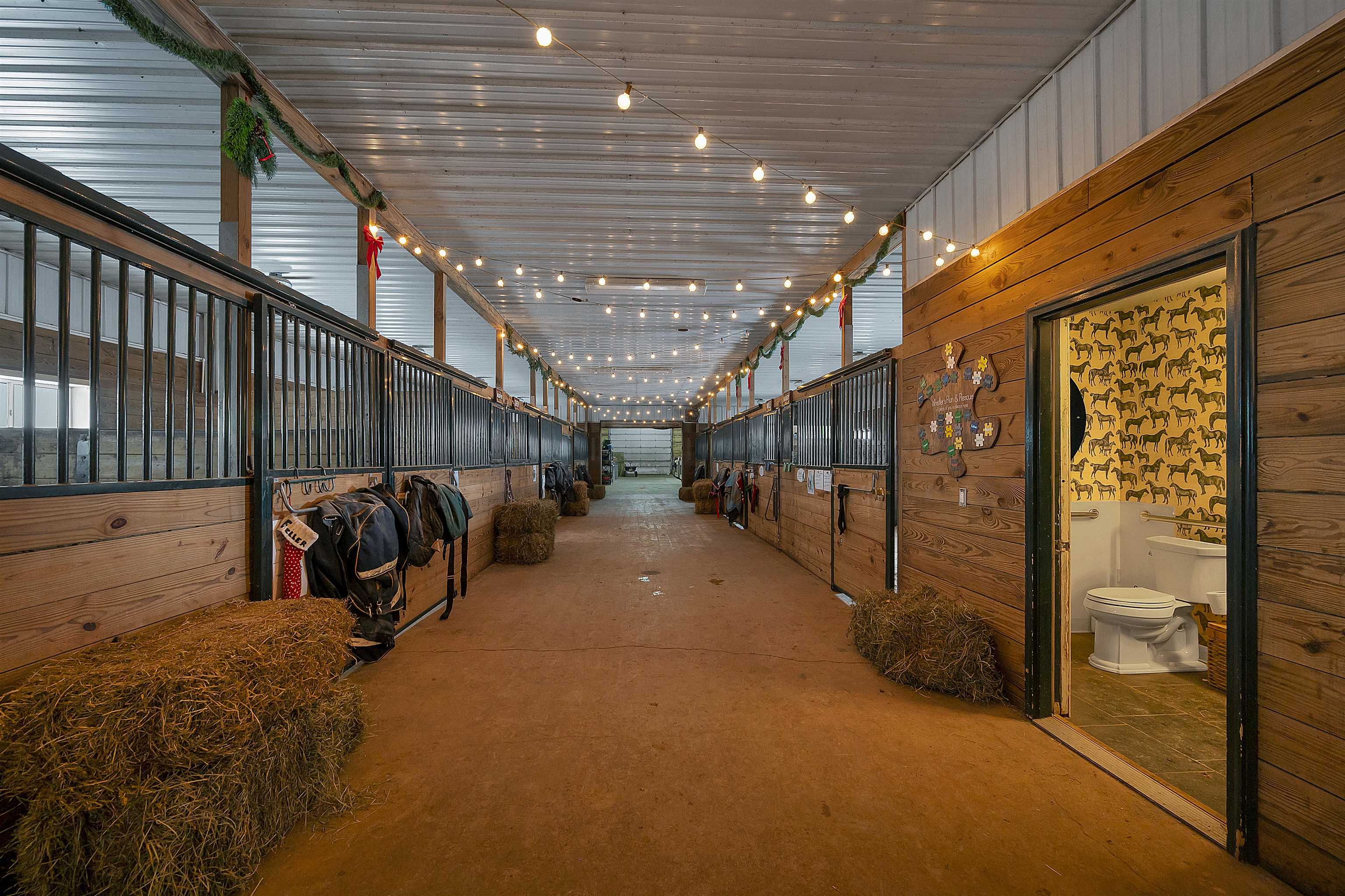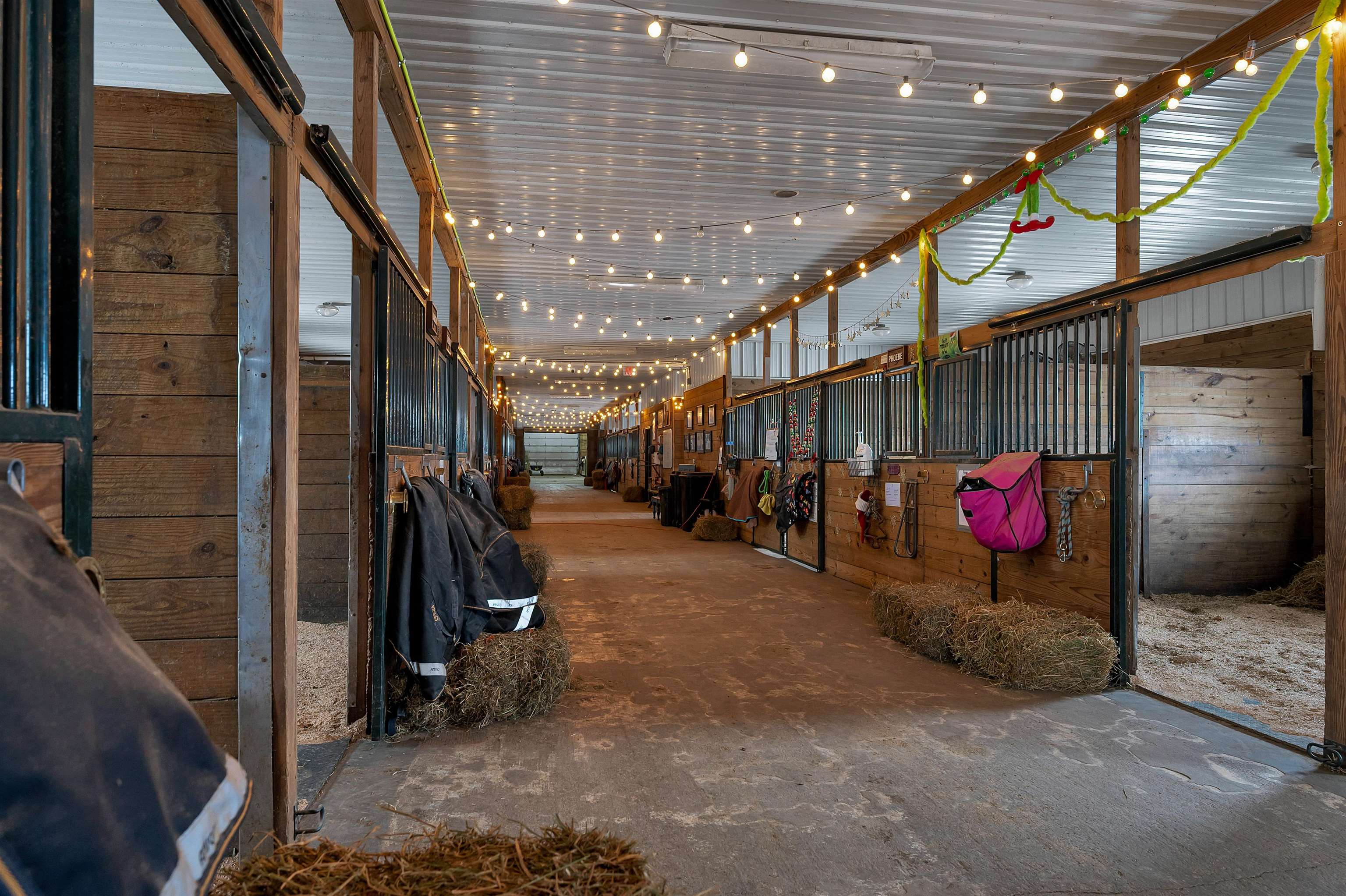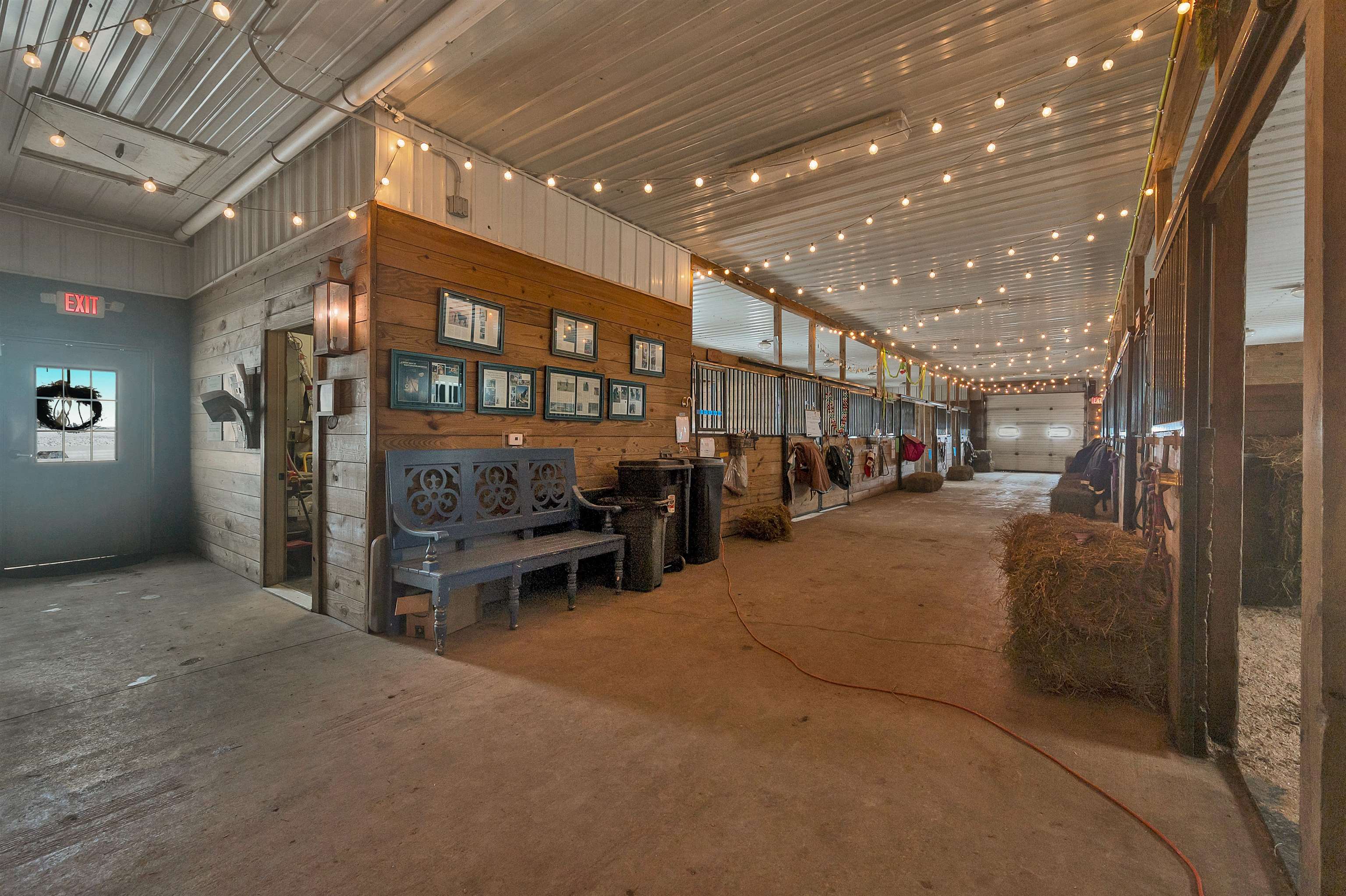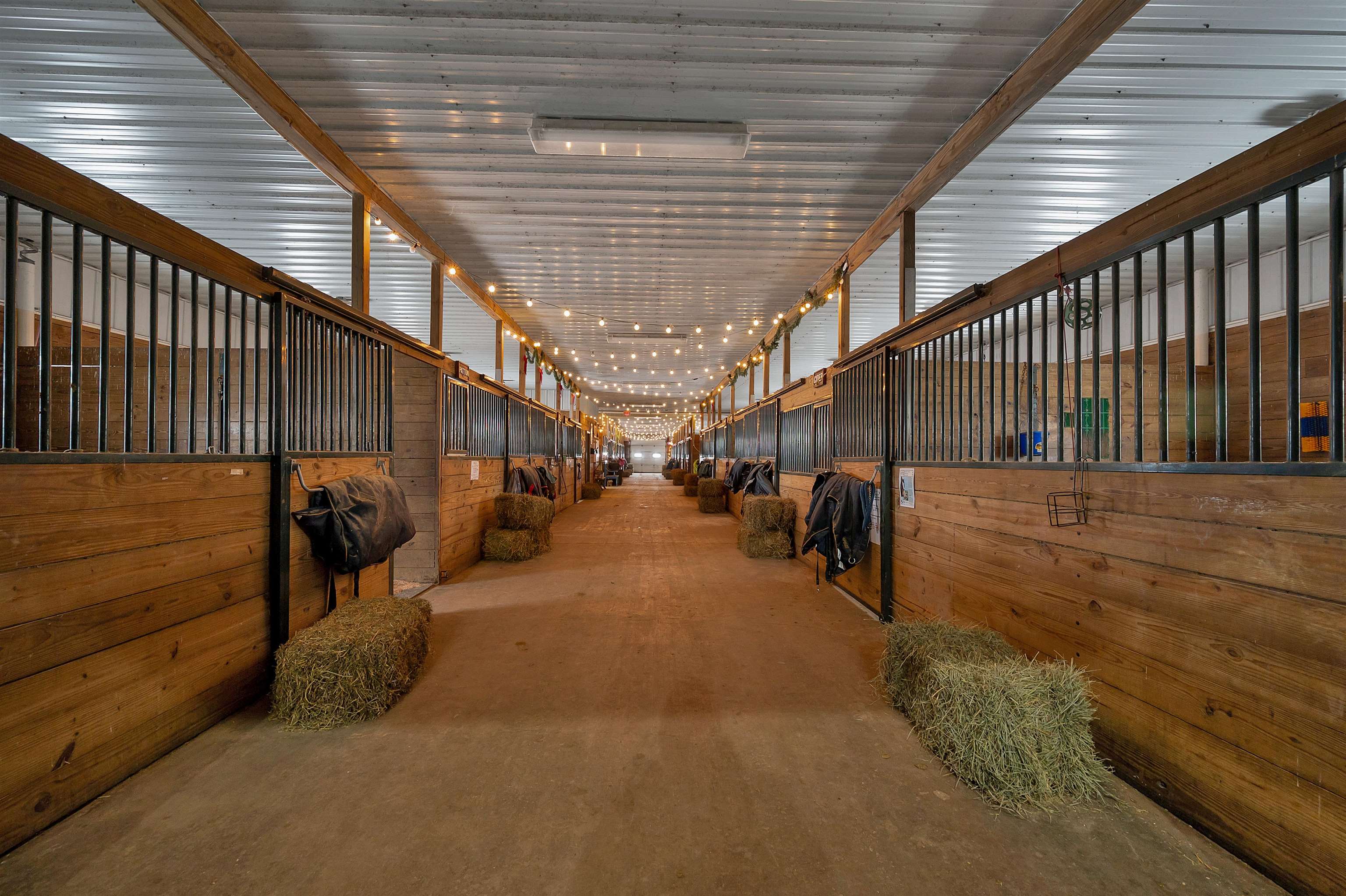 Potential $300,000 revenue-generating horse facility with rental stalls and a home situated on 40 acres! Over $570,000 of improvements have been made, making this an amazing business opportunity for horse enthusiasts, trainers, or boarding operations. This exceptional property includes a 31-stall barn with an indoor riding arena, tack room, bathroom, laundry room, in floor radiant heat, and plenty of space for equipment. Pastures have new winter waterers. An additional hay barn, full of hay, is included. The ranch-style 3 bedroom home offers an open-concept layout with vaulted ceilings and a walkout basement, providing comfortable living or great rental opportunity. Carpet on the stairs will be replaced. See additional documents for cash flow analysis, improvements, and included equipment.