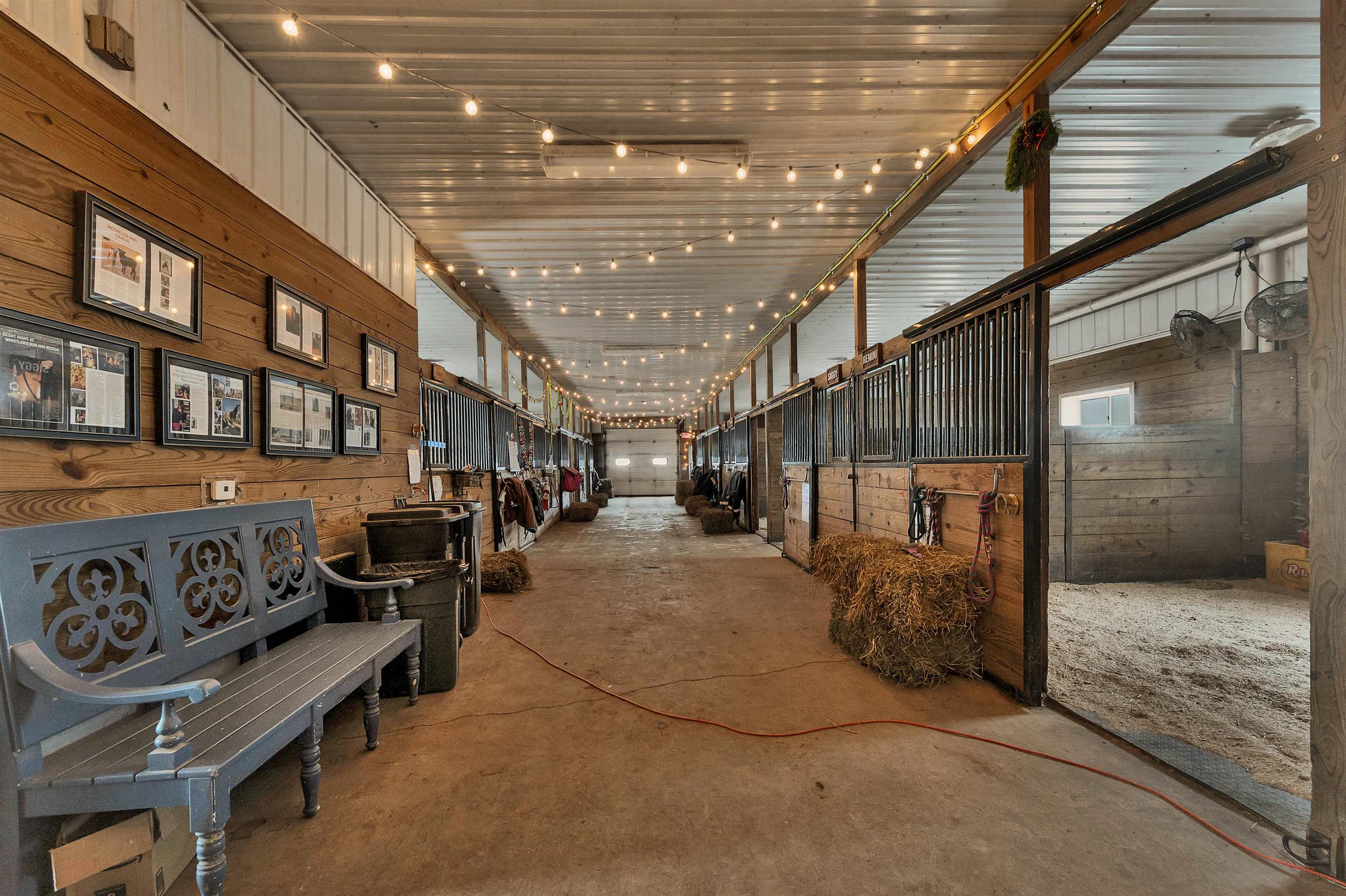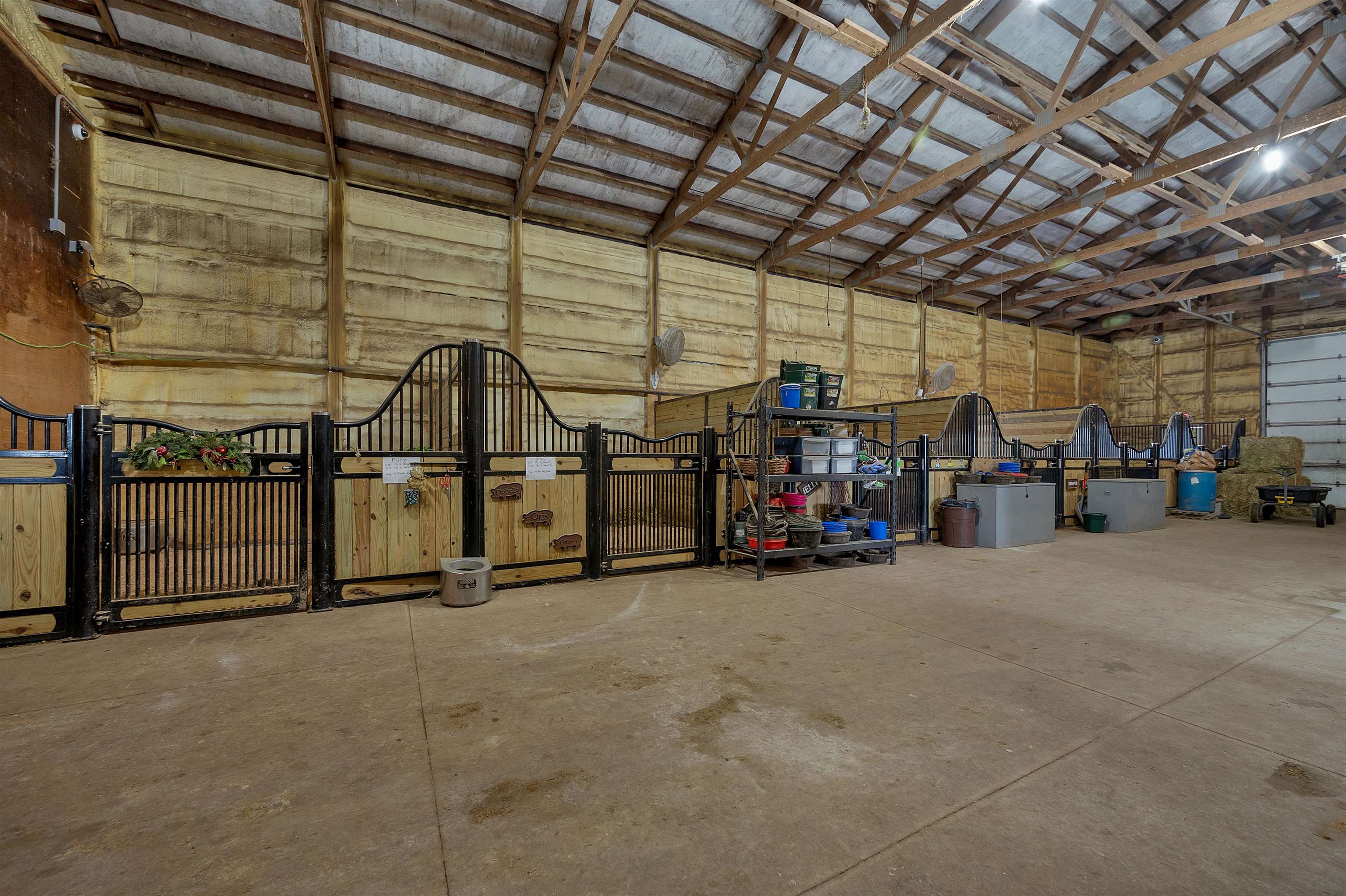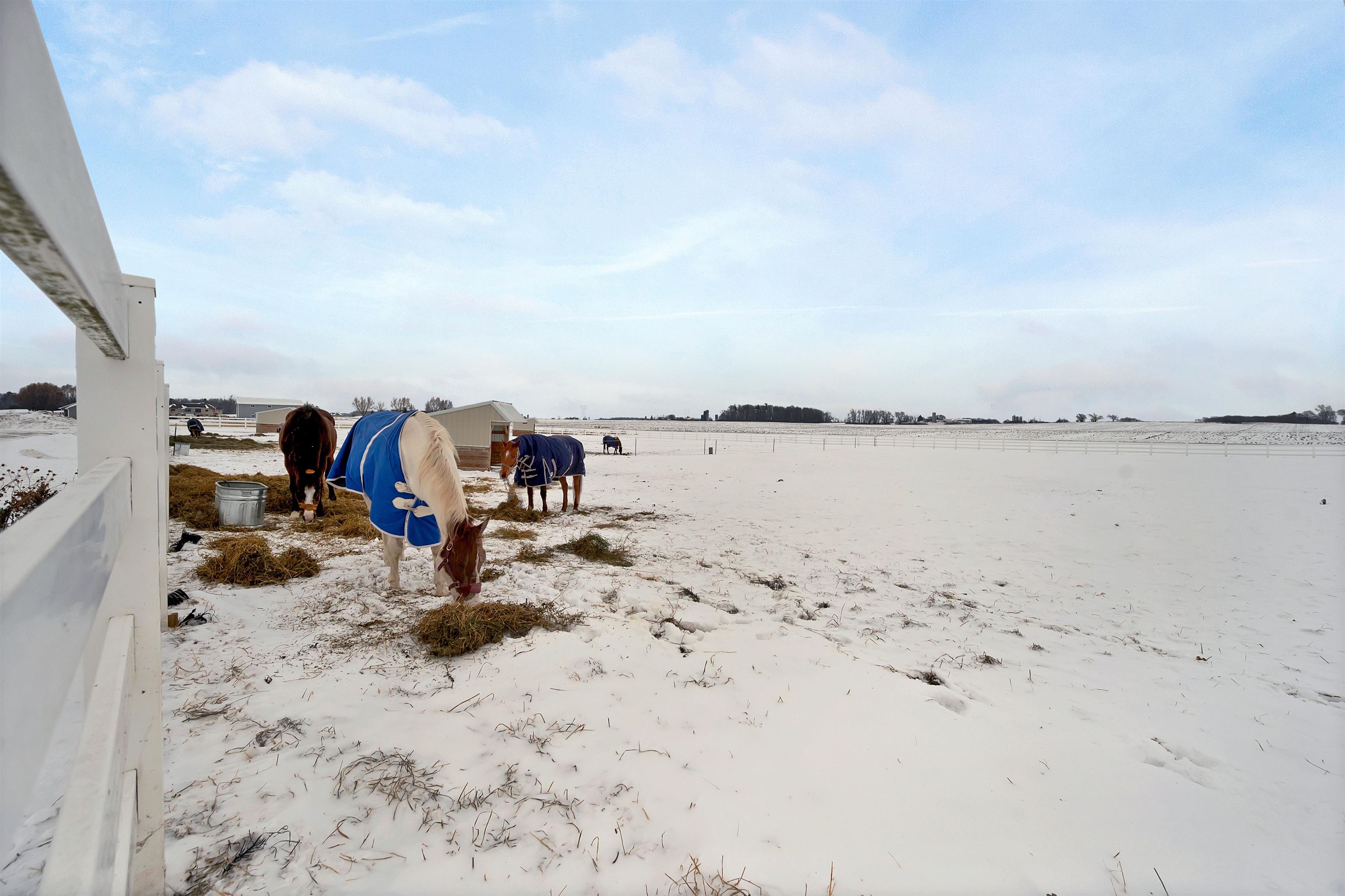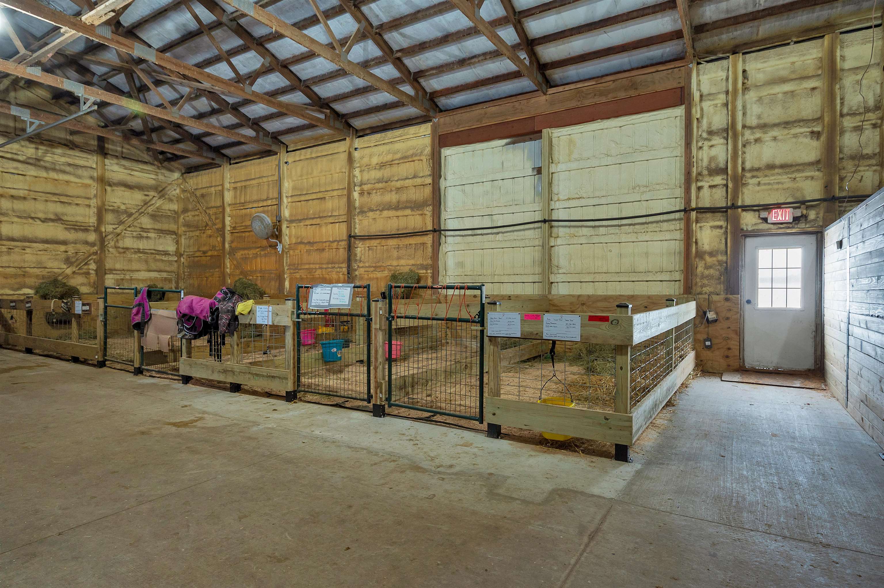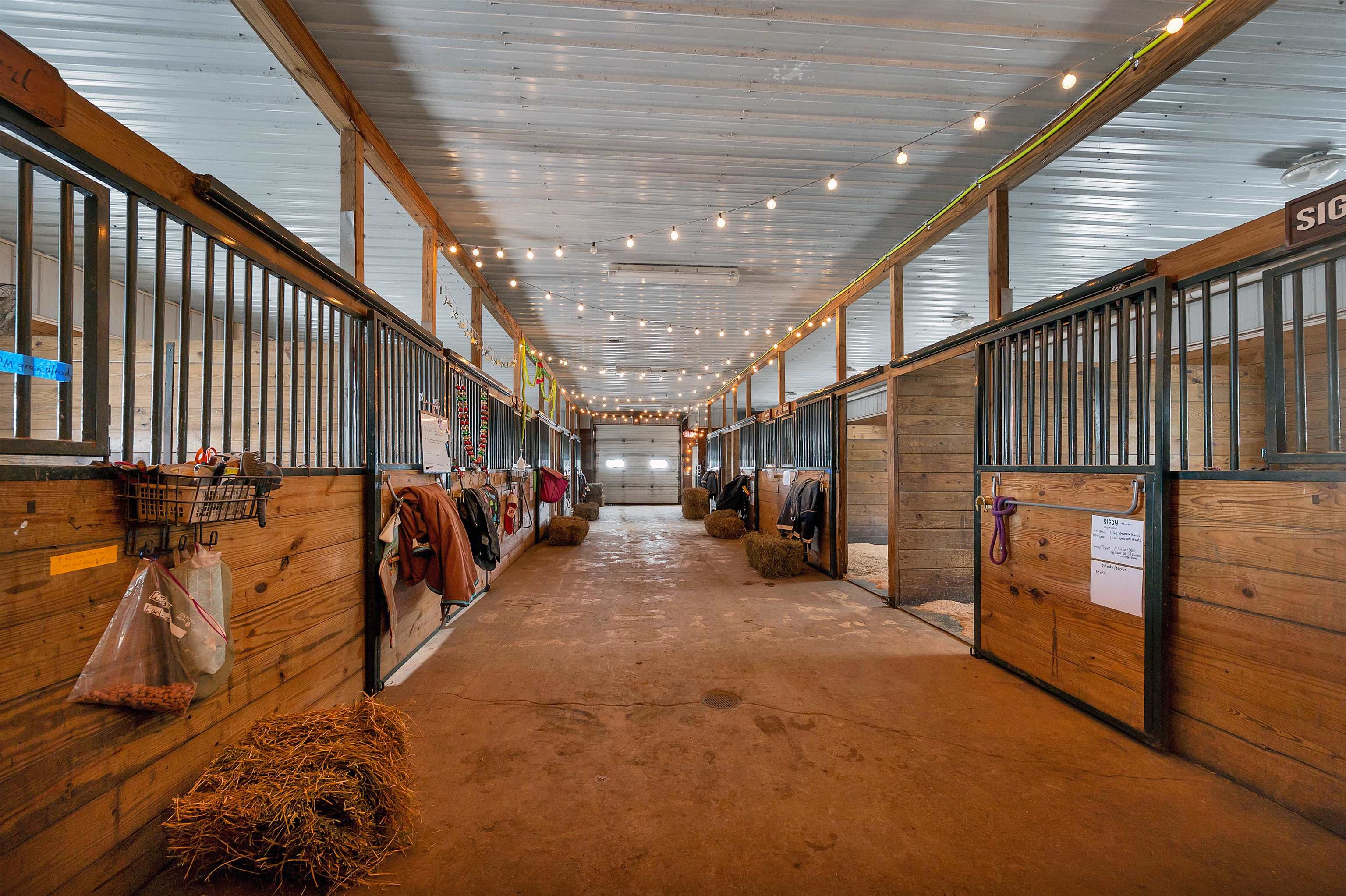 Potential $300,000 revenue-generating horse facility with rental stalls and a home situated on 40 acres! Over $570,000 of improvements have been made, making this an amazing business opportunity for horse enthusiasts, trainers, or boarding operations. This exceptional property includes a 31-stall barn with an indoor riding arena, tack room, bathroom, laundry room, in floor radiant heat, and plenty of space for equipment. Pastures have new winter waterers. An additional hay barn, full of hay, is included. The ranch-style 3 bedroom home offers an open-concept layout with vaulted ceilings and a walkout basement, providing comfortable living or great rental opportunity. Carpet on the stairs will be replaced. See additional documents for cash flow analysis, improvements, and included equipment.