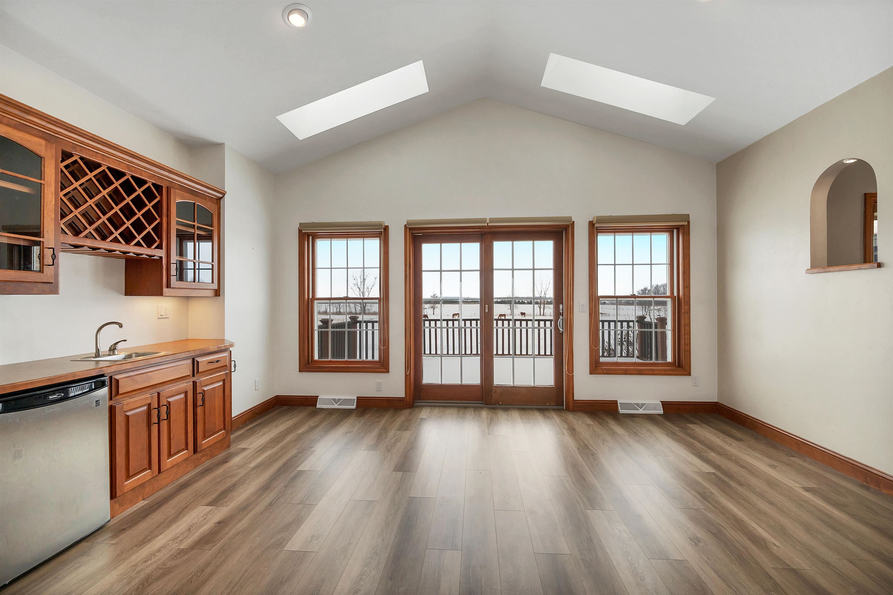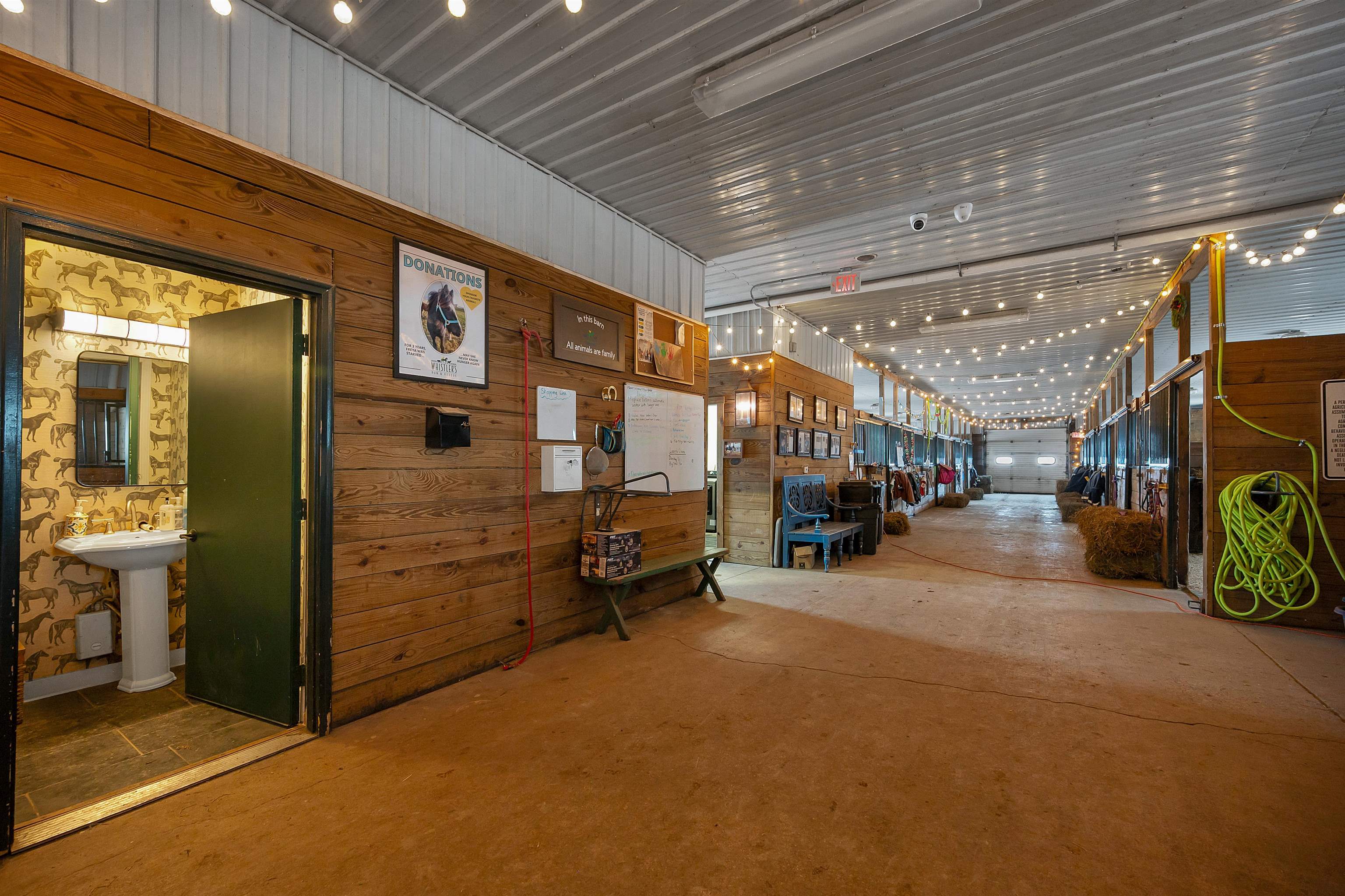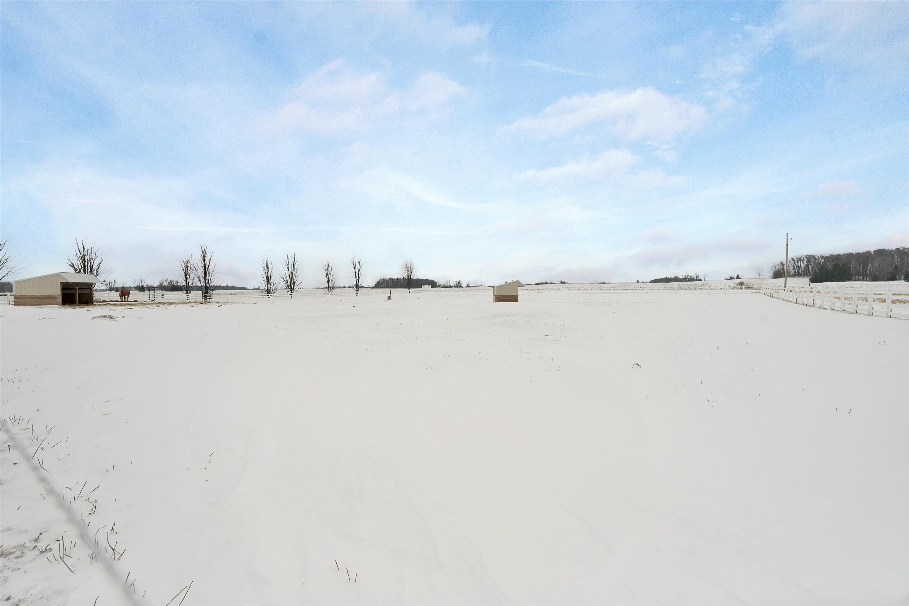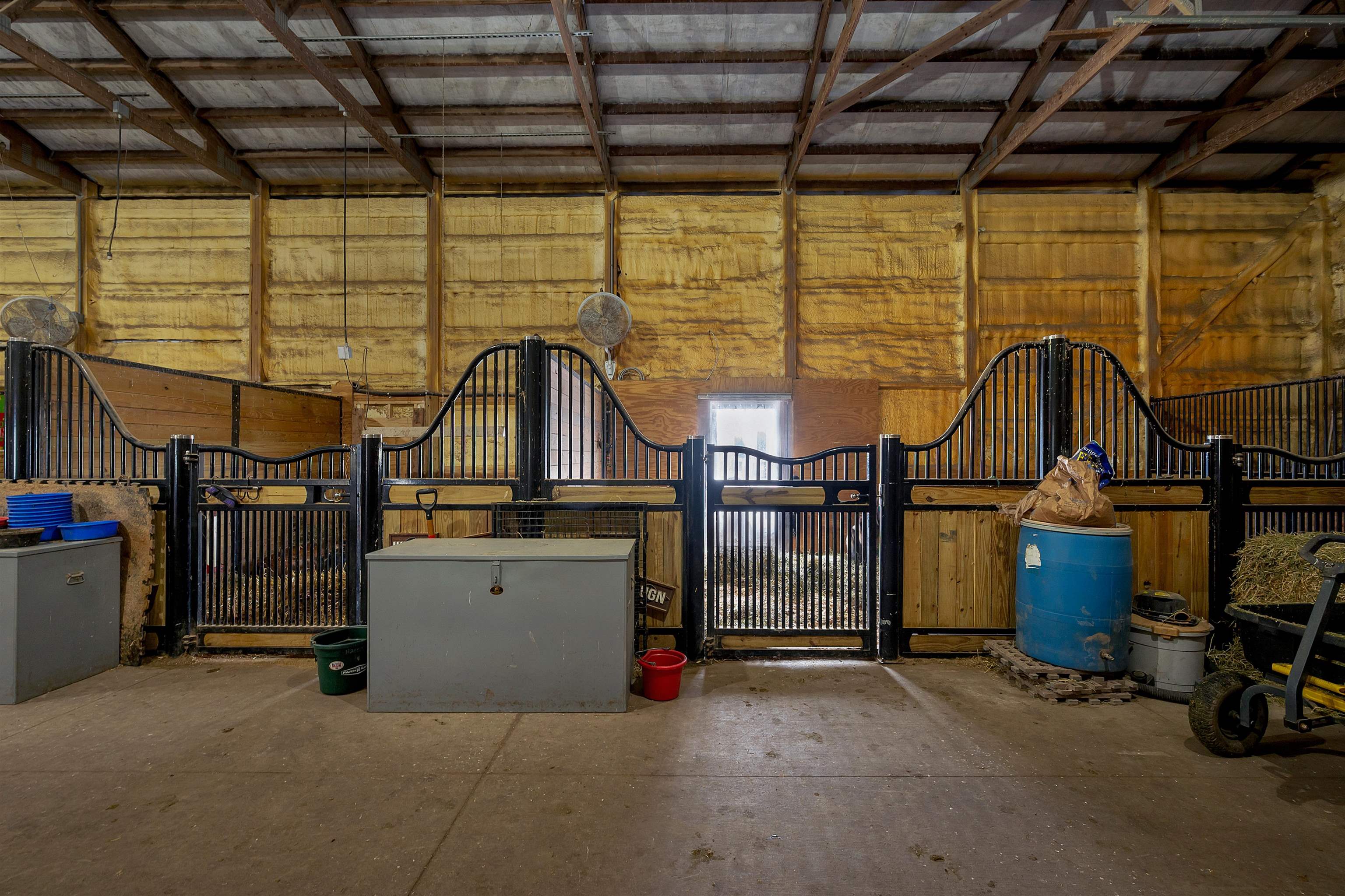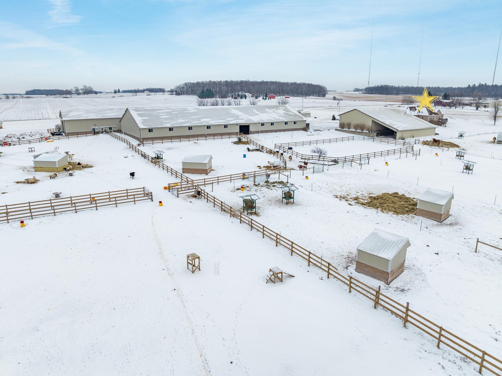 Potential $300,000 revenue-generating horse facility with rental stalls and a home situated on 40 acres! Over $570,000 of improvements have been made, making this an amazing business opportunity for horse enthusiasts, trainers, or boarding operations. This exceptional property includes a 31-stall barn with an indoor riding arena, tack room, bathroom, laundry room, in floor radiant heat, and plenty of space for equipment. Pastures have new winter waterers. An additional hay barn, full of hay, is included. The ranch-style 3 bedroom home offers an open-concept layout with vaulted ceilings and a walkout basement, providing comfortable living or great rental opportunity. Carpet on the stairs will be replaced. See additional documents for cash flow analysis, improvements, and included equipment.