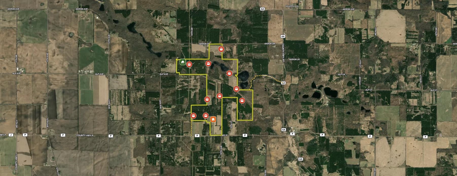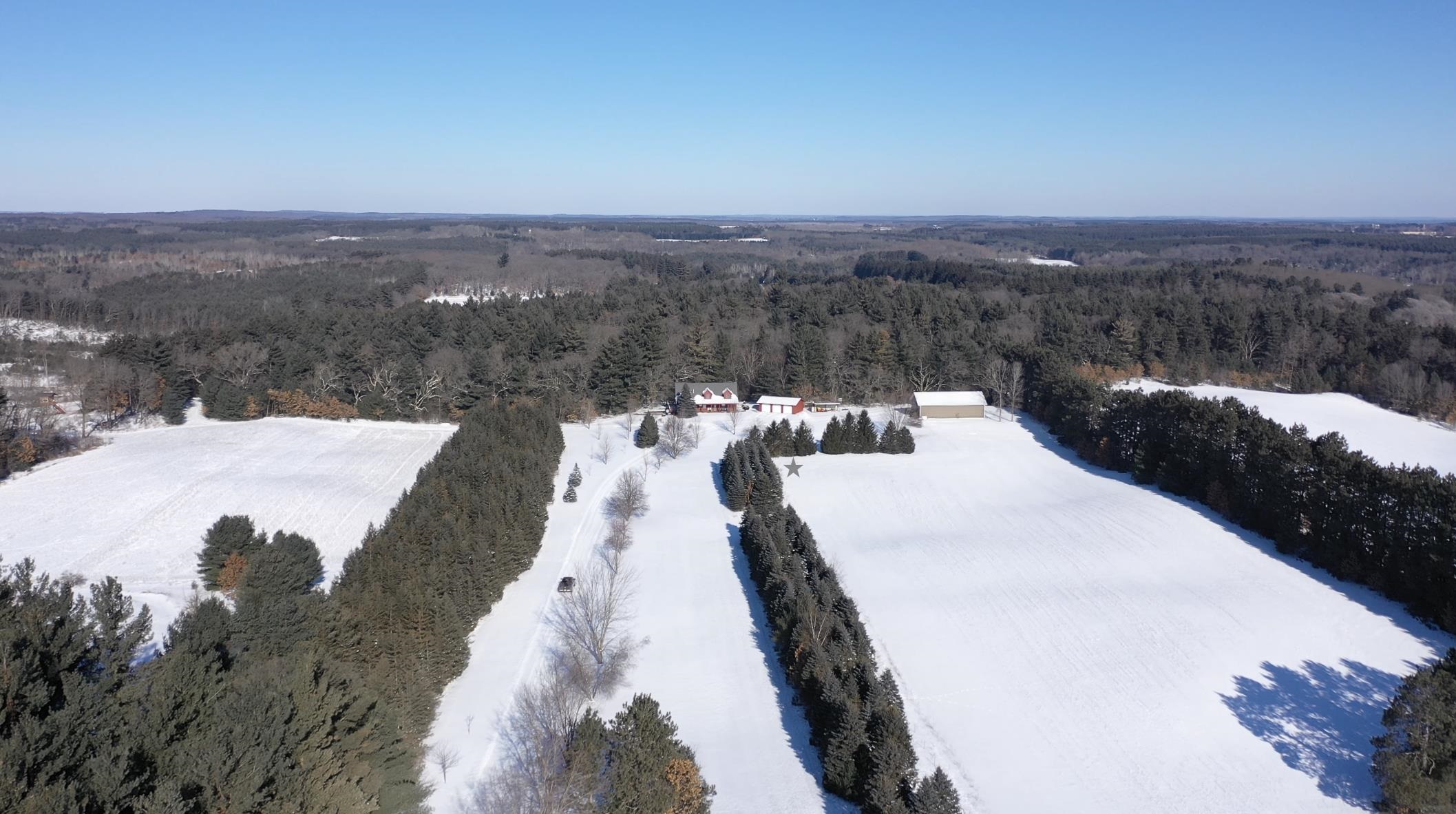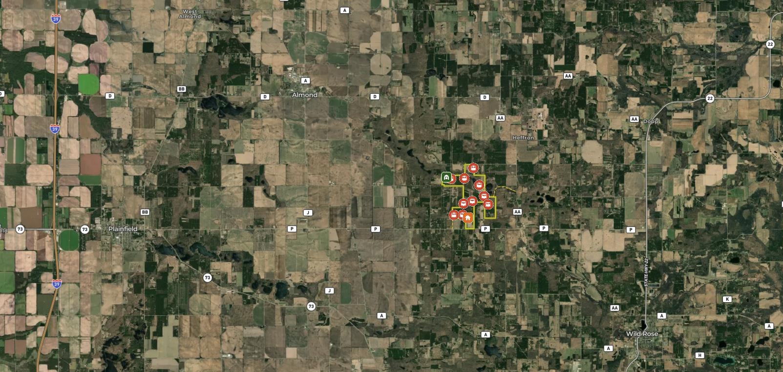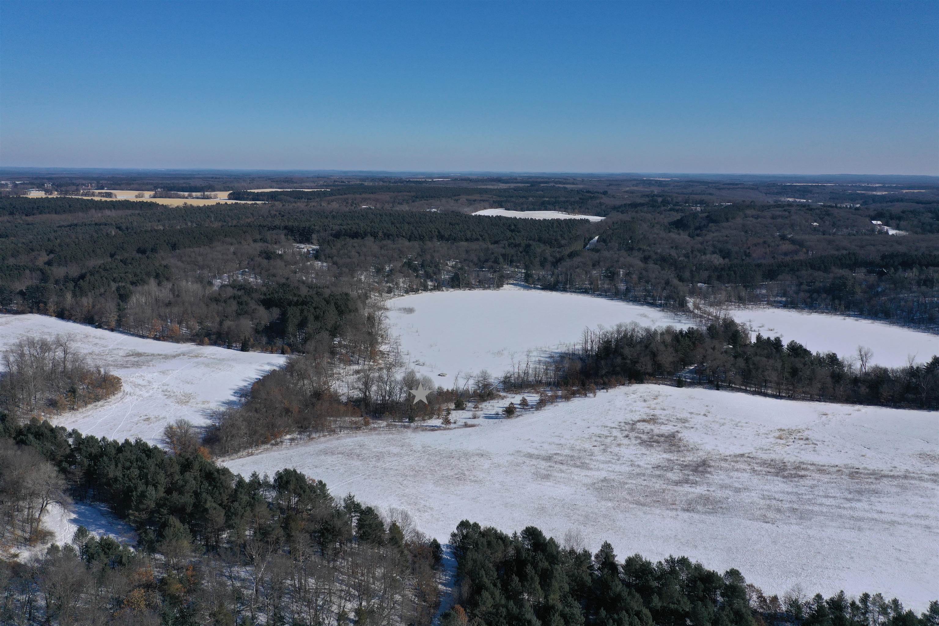 This 529± acre all-high-ground property in northern Waushara Cty, just west of Wild Rose, is an extremely rare opportunity to own a tract of this size and privacy in eastern Wisconsin. The property includes a well-appointed 3,496± SF half-log home featuring six BR, three baths, a finished basement, and warm rustic character, along with a large steel storage shed and an additional outbuilding. Thoughtfully managed and improved over time, the land has been professionally designed to support whitetail habitat and consistent wildlife use. Five bucks over 170" have been harvested in the last 10 years! Two ~13-acre lakes, rare four-sided access, expansive acreage, and exceptional recreational versatility make this property ideal as a recreational holding, or multi-generational legacy investment.
