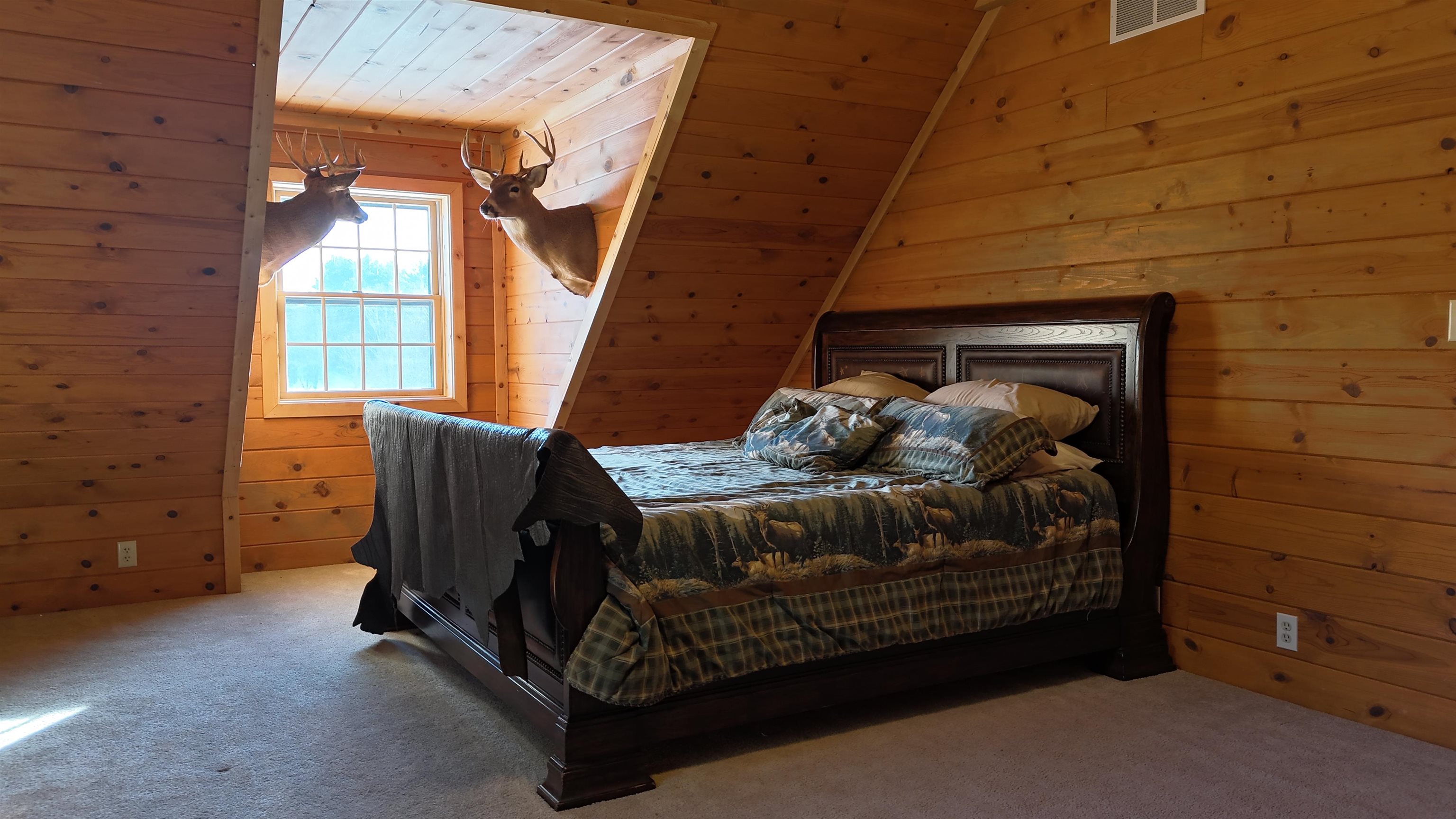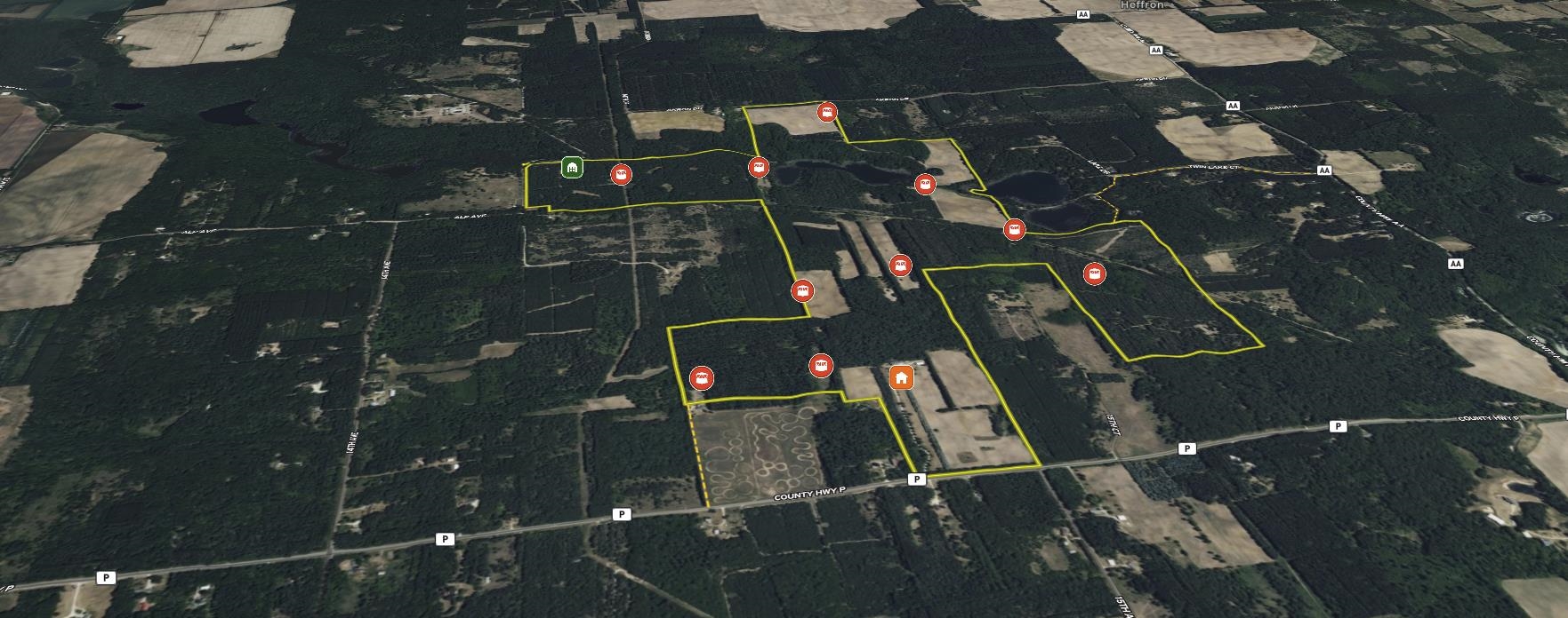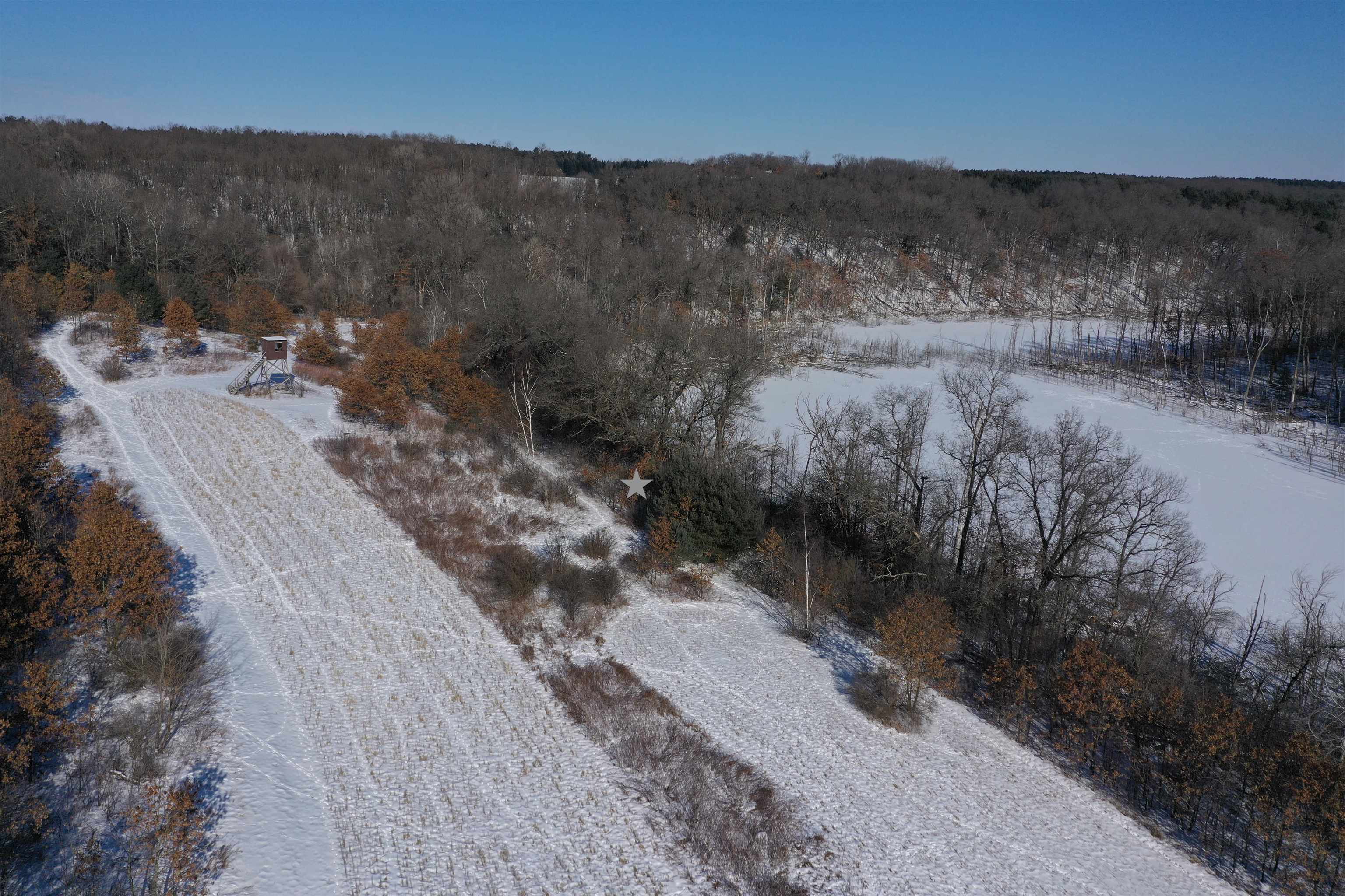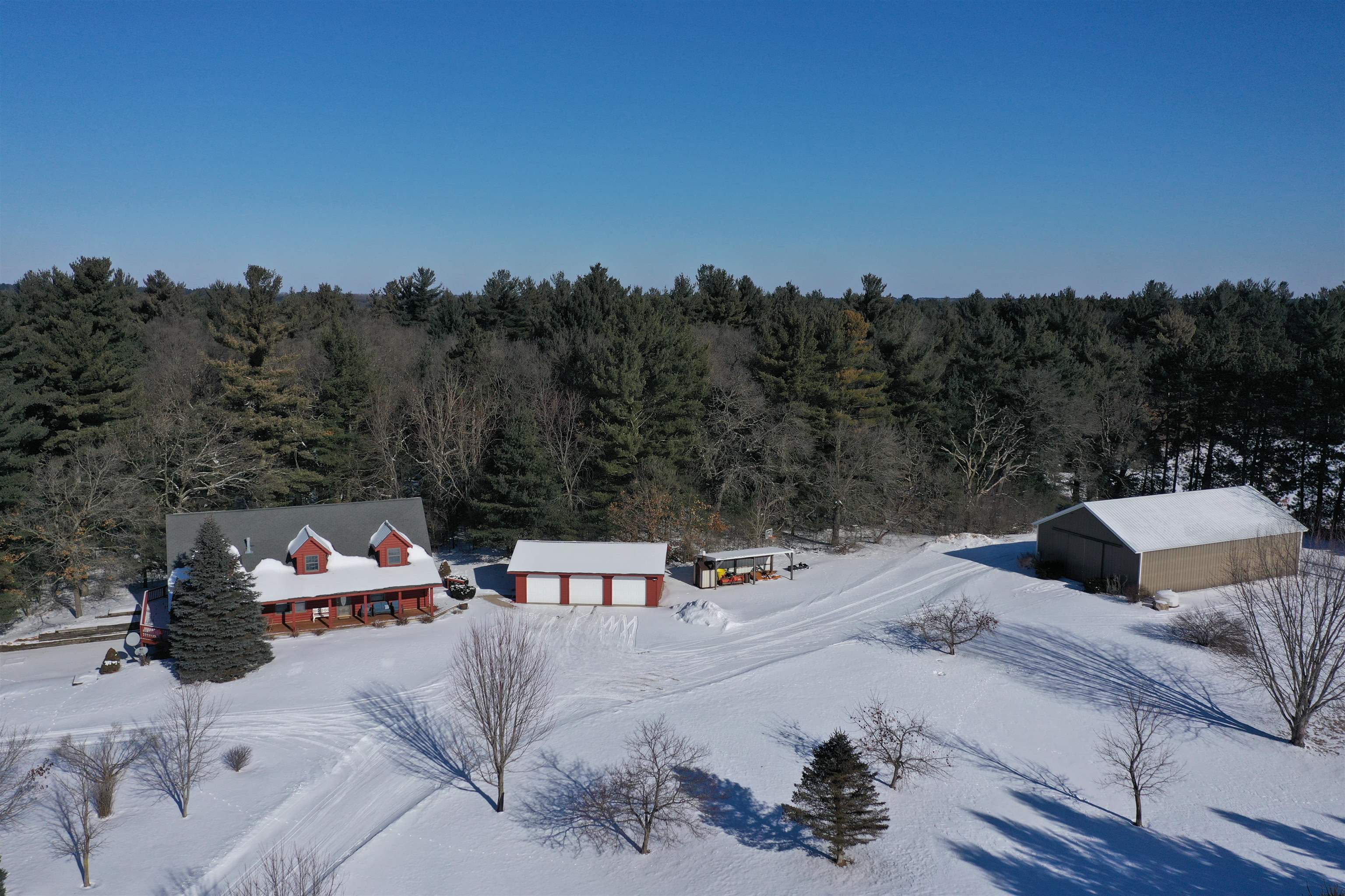 This 529± acre all-high-ground property in northern Waushara Cty, just west of Wild Rose, is an extremely rare opportunity to own a tract of this size and privacy in eastern Wisconsin. The property includes a well-appointed 3,496± SF half-log home featuring six BR, three baths, a finished basement, and warm rustic character, along with a large steel storage shed and an additional outbuilding. Thoughtfully managed and improved over time, the land has been professionally designed to support whitetail habitat and consistent wildlife use. Five bucks over 170" have been harvested in the last 10 years! Two ~13-acre lakes, rare four-sided access, expansive acreage, and exceptional recreational versatility make this property ideal as a recreational holding, or multi-generational legacy investment.