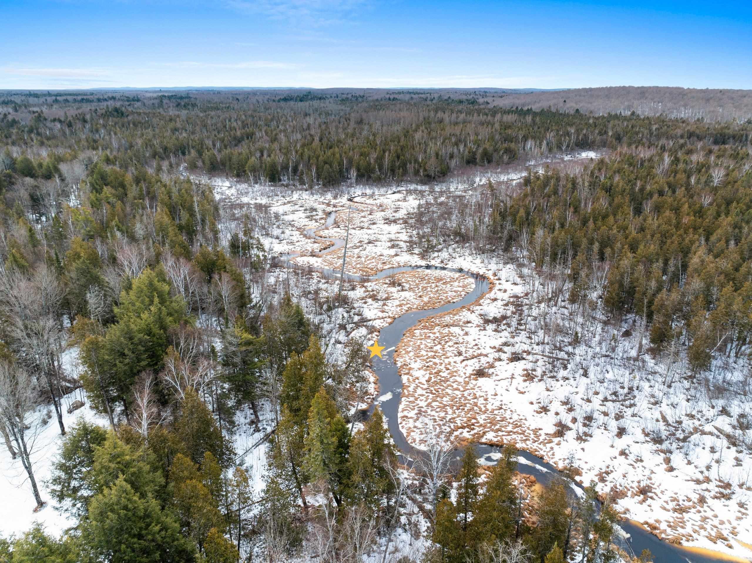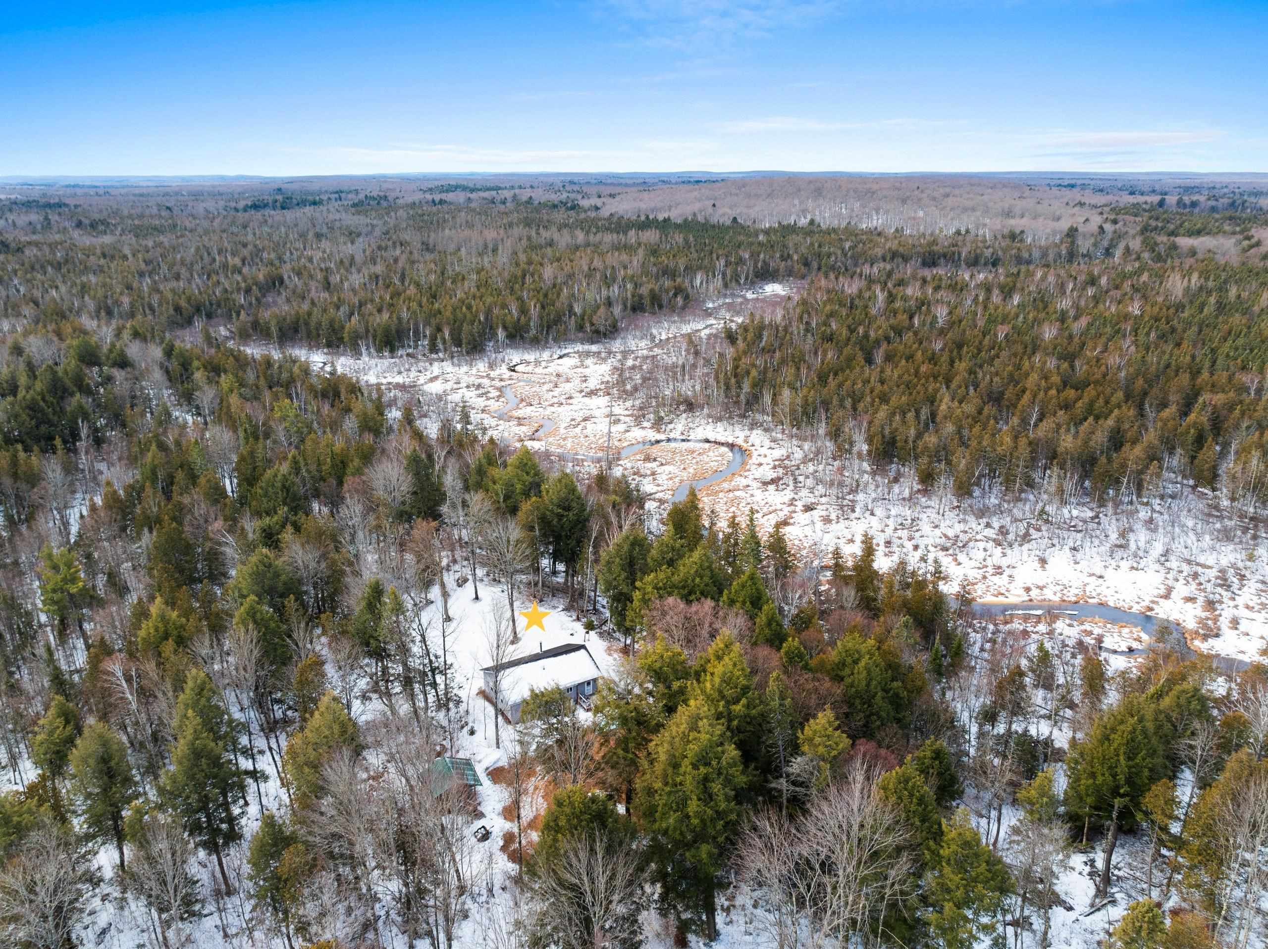 Escape to true Northwoods wilderness w/ this incredible property. Accessed by a well maintained 4 mile easement rd this secluded tract offers privacy & remoteness. At the heart of the property sits a rustic off-grid cabin along a beautiful stream providing a peaceful basecamp for hunting fishing & exploring the wilderness. Cabin is powered by a generator, heated by a wood burning fireplace, and supplied by a sand point well, everything you need for comfortable off grid living. Offering a mix of hardwood timber ridges, cedar swamps, and tamarack lowlands. The Little Popple River is known for its excellent brook trout fishing & Northwoods character. Nearly surrounded by thousands of acres of state land, offering unmatched access to additional hunting and recreational opportunities.