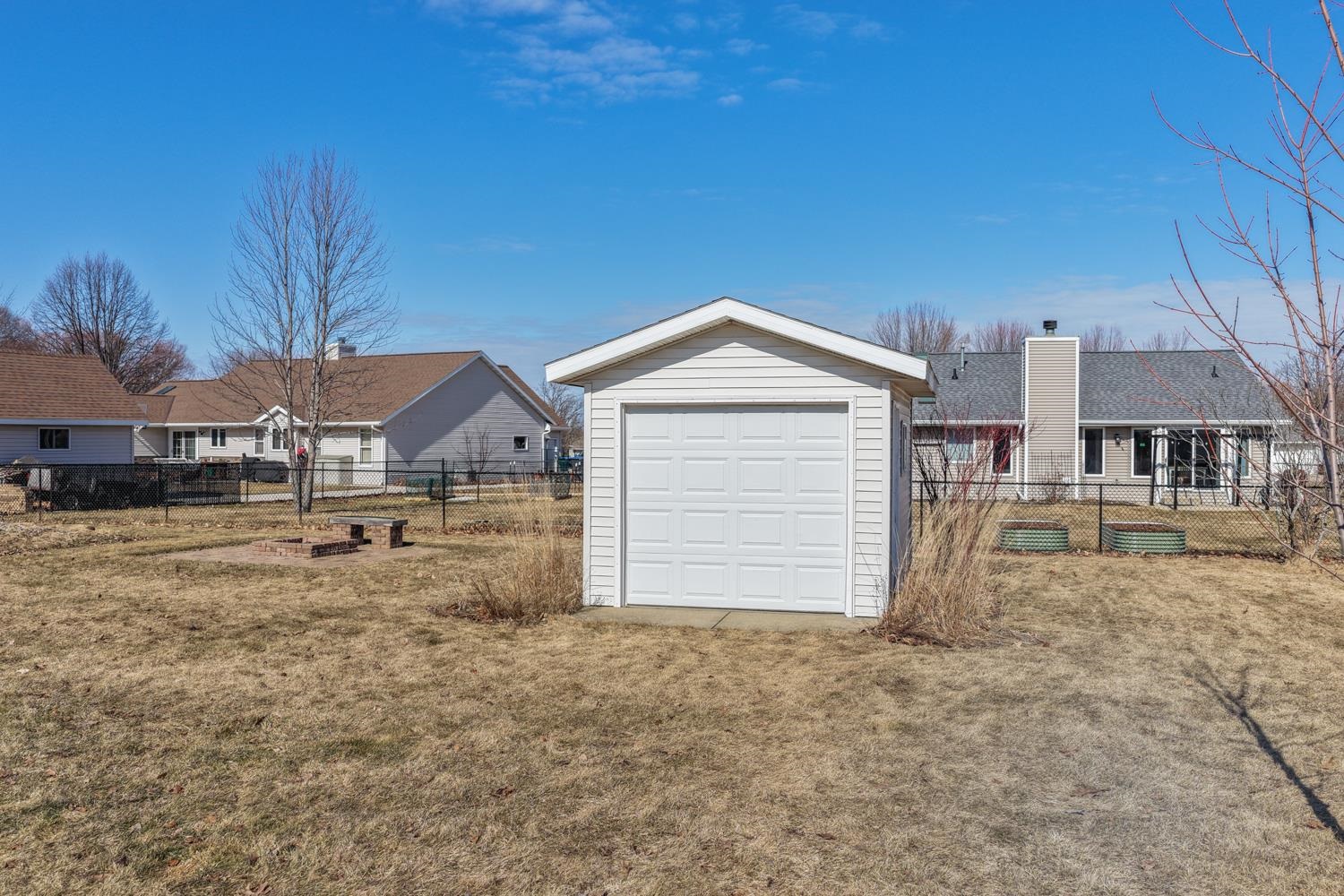 Charming 3BR/2BA ranch near Royal Scot GC greets w/ cathedral ceilings, popular split-bedroom floorplan, 1st floor laundry w/ included washer+dryer! LR w/ gas fireplace & chicago window, kitchen w/ mosaic backsplash, appliances & peninsula seating. Sliding door opens from dining area to paver patio & back-yard w/ matching firepit & shed w/ rolling O/H door. Primary bedroom w/ twin closets & full en-suite w/ shower. Opposite, bedrooms 2 & 3 share a 2nd full bath. LL boasts over 685 sqft composed of a large rec room & game room. 2.5 stall garage, very well-kept!