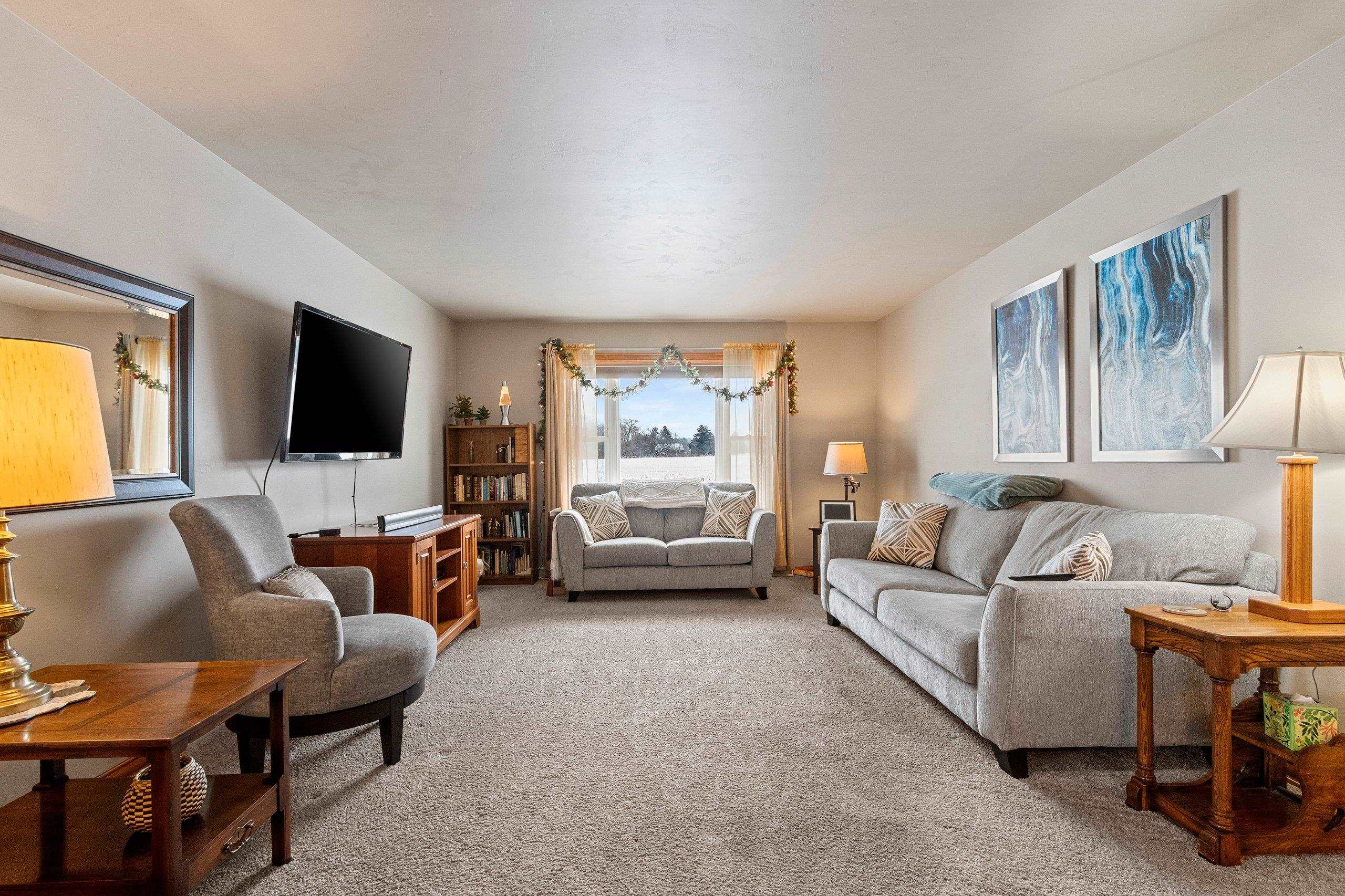 Check out this free-standing condo that features an open-concept main level with gleaming hardwood floors throughout the dining area and kitchen. The kitchen features an island, ample cabinets, kitchen appliances, and a walk-in pantry. The great room, located off the dining area, features a large picture window that looks out onto a private backyard setting. A versatile den also provides access to the rear patio. The master bedroom includes its own private bath and walk-in closet. Additionally, there is a first-floor laundry room and a second bedroom. The lower level is unfinished, featuring an egress window, is stubbed for a bathroom, and is ready for future expansion. Other highlights include a central vacuum and a walking path that leads around Scotland Meadows to a park.