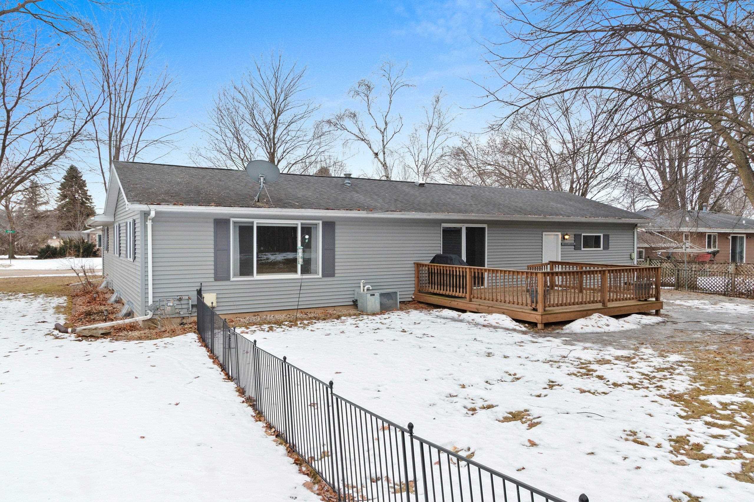 Nestled near Shawano’s schools & parks, this inviting ranch offers a comfortable layout designed for easy, everyday living. A bright, open kitchen & dining area serves as the centerpiece of the home, opening directly to the backyard deck, creating a great space for gathering or relaxing. The main level is thoughtfully arranged with first-floor laundry, 2 full bathrooms, & 3 well-sized bedrooms, including a primary bedroom with dual closets. A spacious living room provides a welcoming place to unwind at the end of the day. The lower level expands your living space with a warm, rustic-inspired family room featuring a bar & gas fireplace—great for entertaining! The outdoor space features a storage shed with an overhead door and removable fencing!Seller to give $1,500 credit to buyer at close.