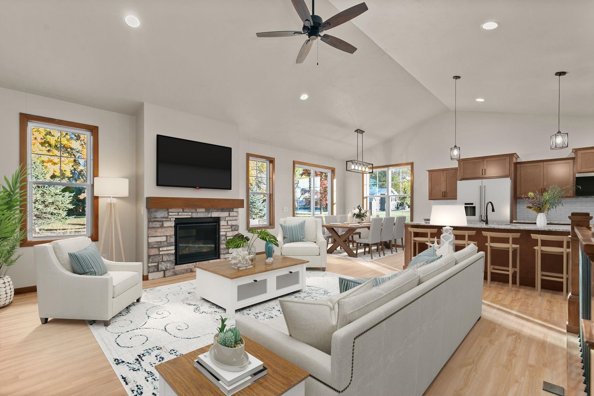 Welcome to The Cottages at High Cliff, where luxury and leisure meet in this vibrant 55+ community. Designed for comfortable living and effortless entertaining, this warm and sun-filled home features vaulted ceilings, solid-surface countertops, and a dedicated golf-cart garage for convenient, stylish commuting. $244 per month HOA fee covers lawn care, snow removal, trash/recycling, and two lifetime senior memberships to High Cliff Golf Course—with the course and clubhouse right at your front door. Enjoy the trails of High Cliff State Park and the shores of Lake Winnebago just moments away.