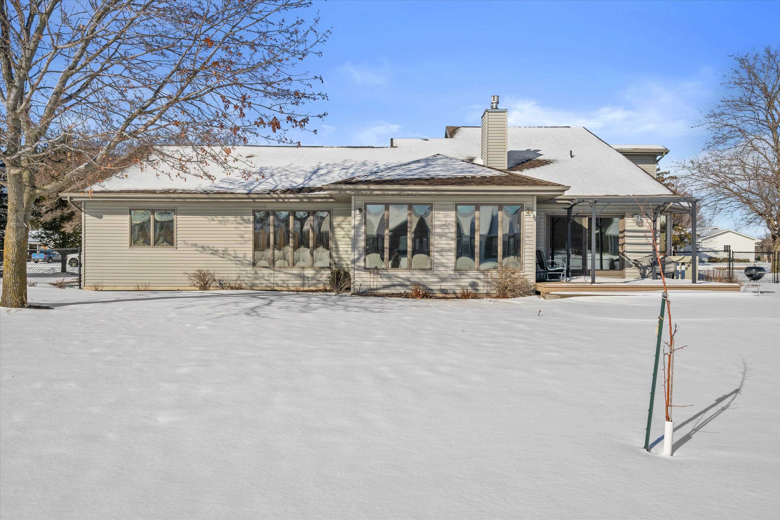 Nestled near High Cliff State Park and surrounded by walking paths and a golf course, this immaculate ranch shines with pride of ownership. Bright southern exposure floods the living room, dining room and four-season room beneath vaulted ceilings. An updated kitchen offers quartz counters, an island, and refreshed cabinetry. Step outside to a pergola-covered patio, fenced yard, tranquil stream and pond backdrop, an ideal blend of comfort and scenery.