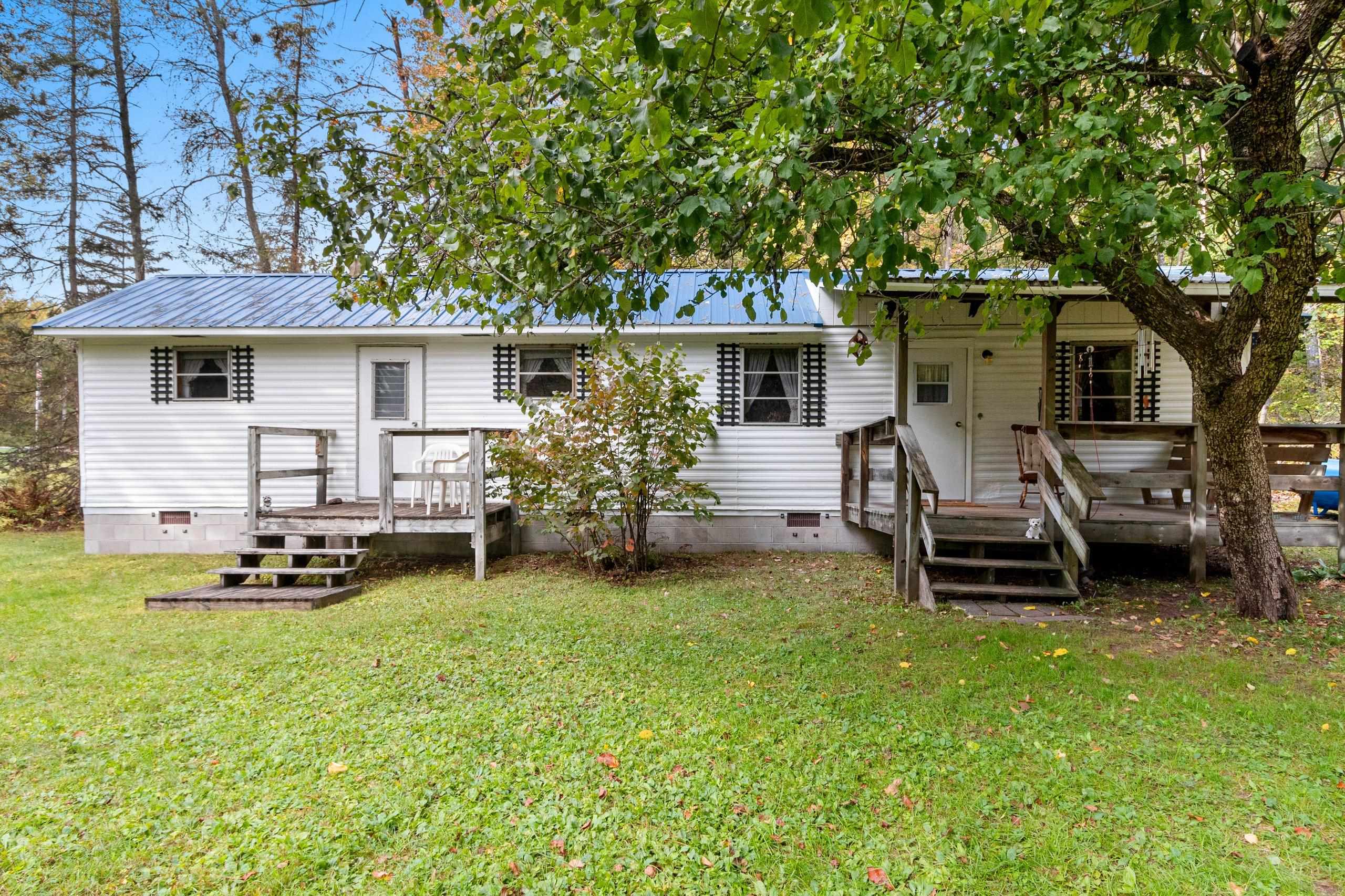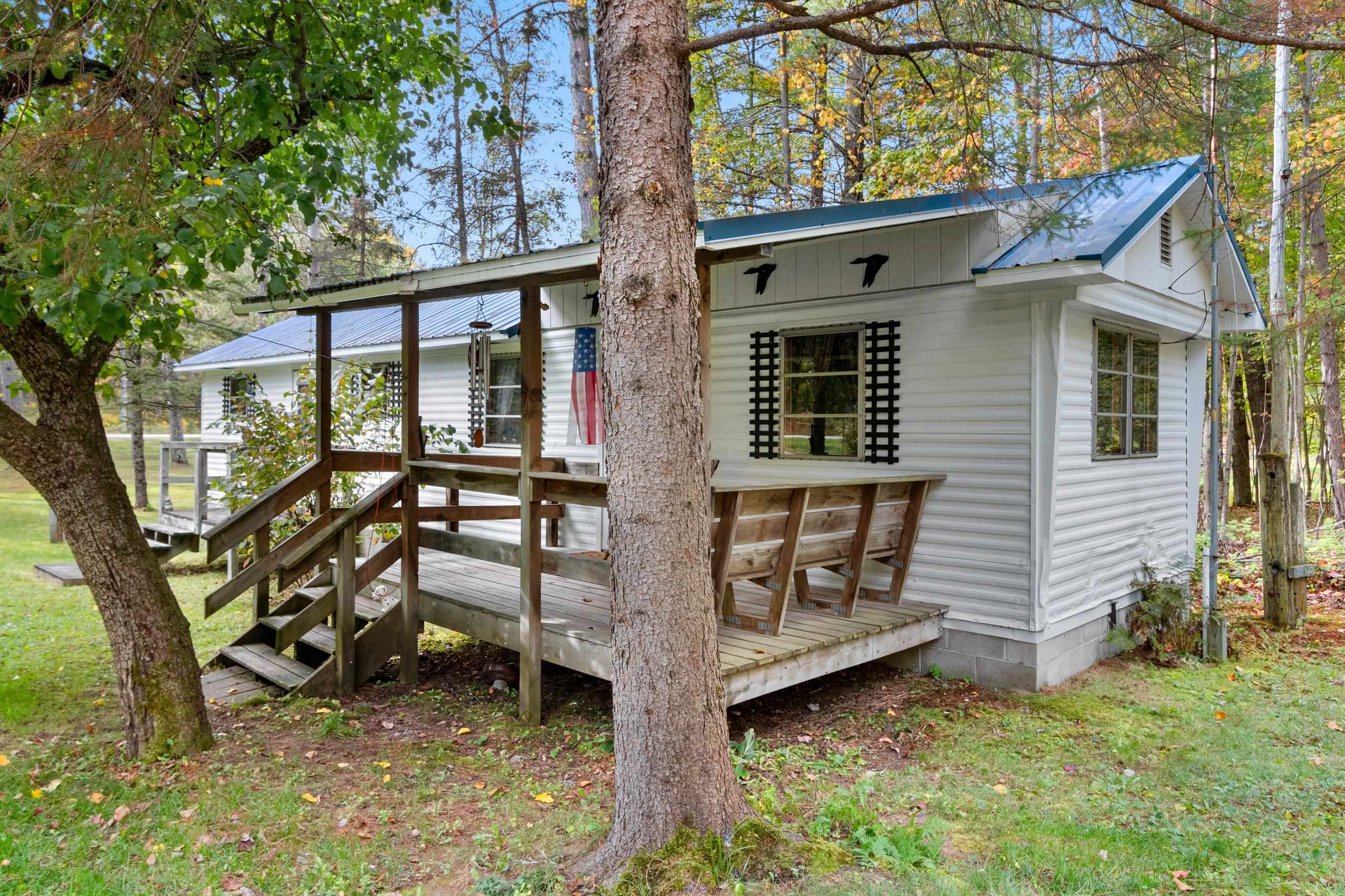Great 2 bedroom, 1 bath mobile home! Make this your home, up north getaway or hunting cabin! Enjoy many nights under your covered front porch or sitting by your bonfire! Close to many lakes, rivers, public hunting land, ATV & snowmobile trails. New metal roof 2015, water heater 2023 and block foundation 2013. Most everything is included, nothing to do but sit back and enjoy!
